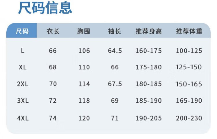China (cm) 165 / 88-90 170 / 96-98 175 / 108-110 180 / 118-122 185 / 126-130