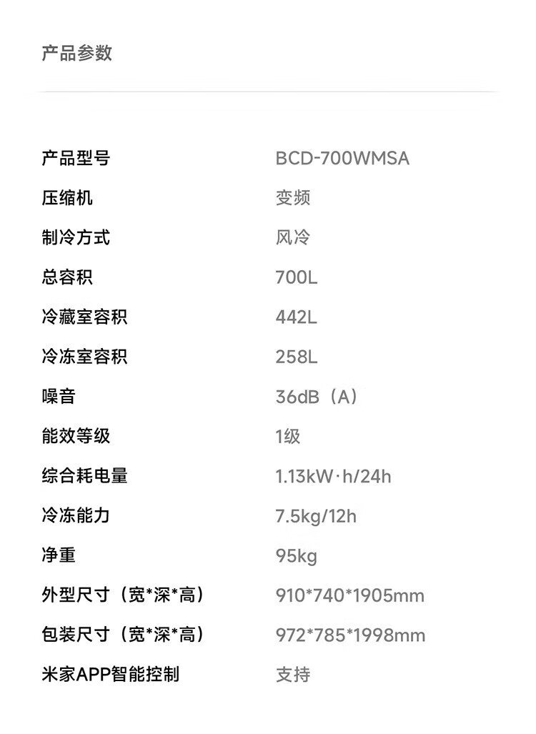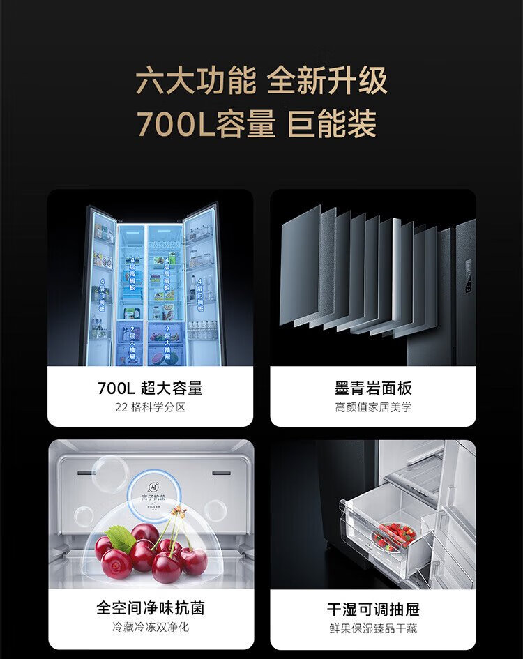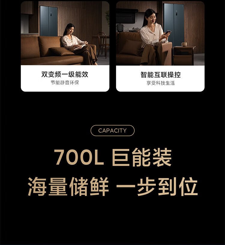 Mijia Xiaomi 700L double-door door-to-door first-class frequency conversion household large-capacity sterilization and deodorization trade-in state-subsidized official genuine refrigerator BCD-700WMSA