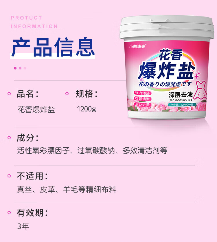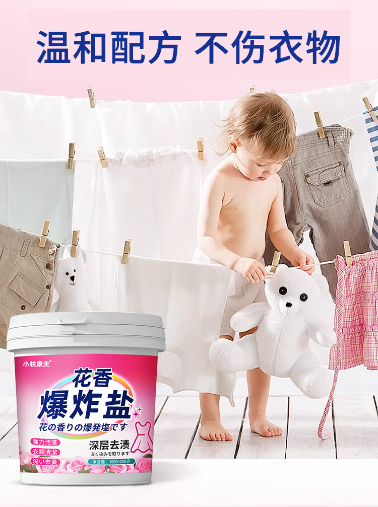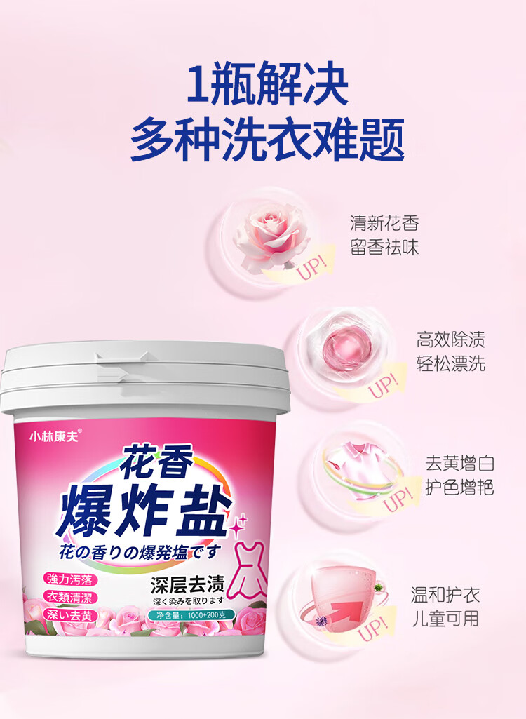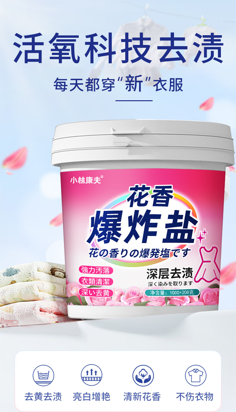 Kobayashi Yasuo floral explosive salt 1200g stain removal, whitening and yellowing bleach, whitening clothes artifact, school uniform color cleaning powder