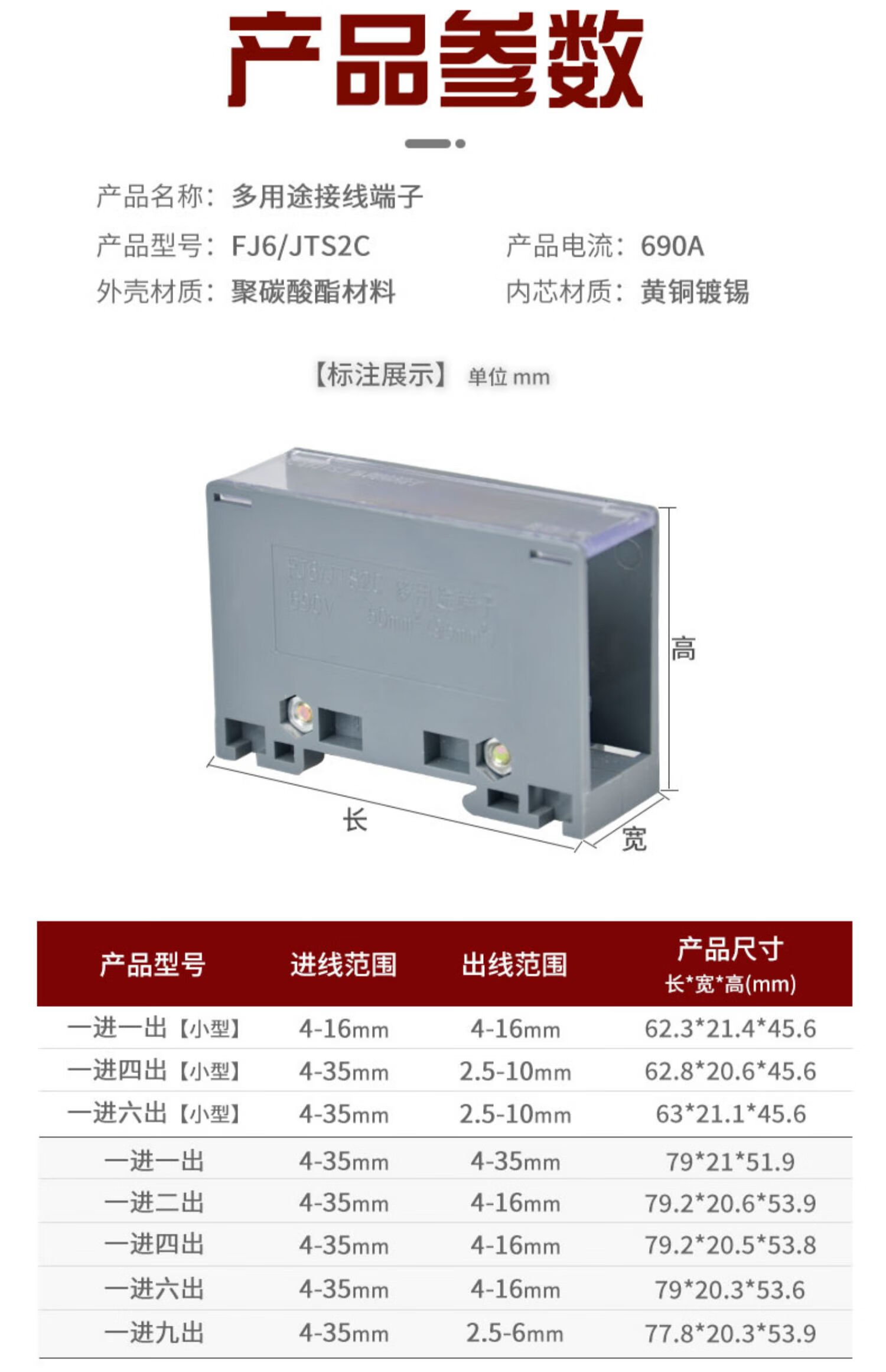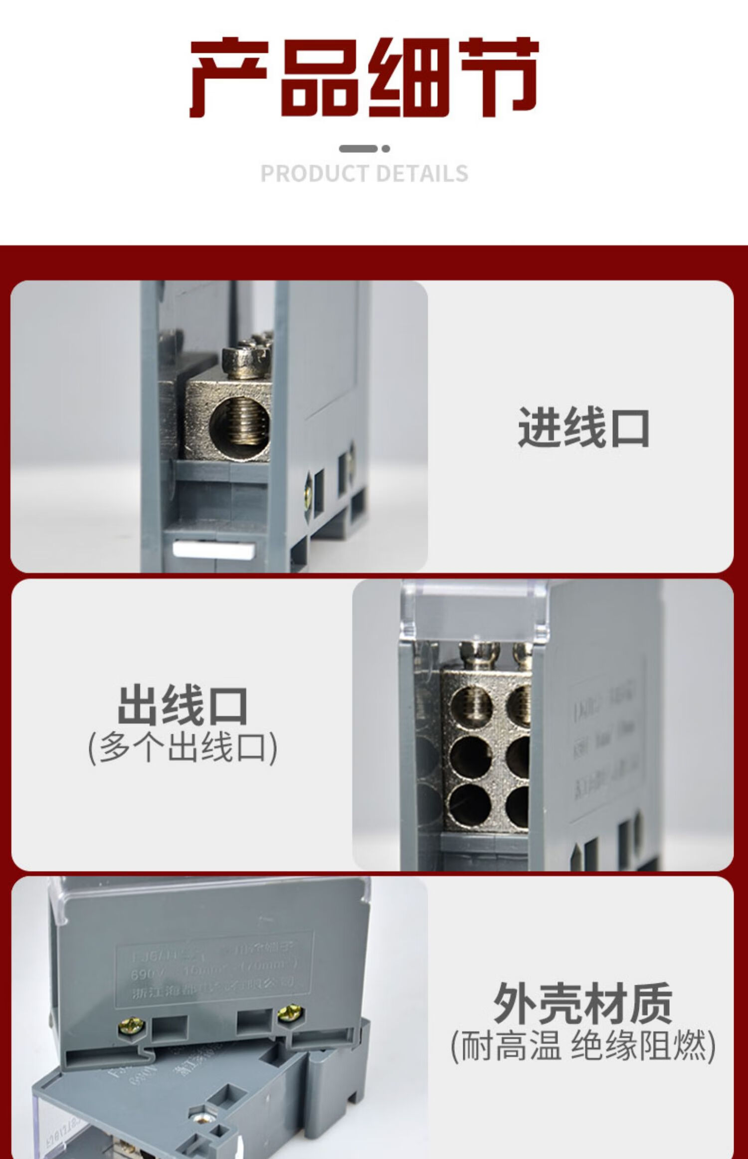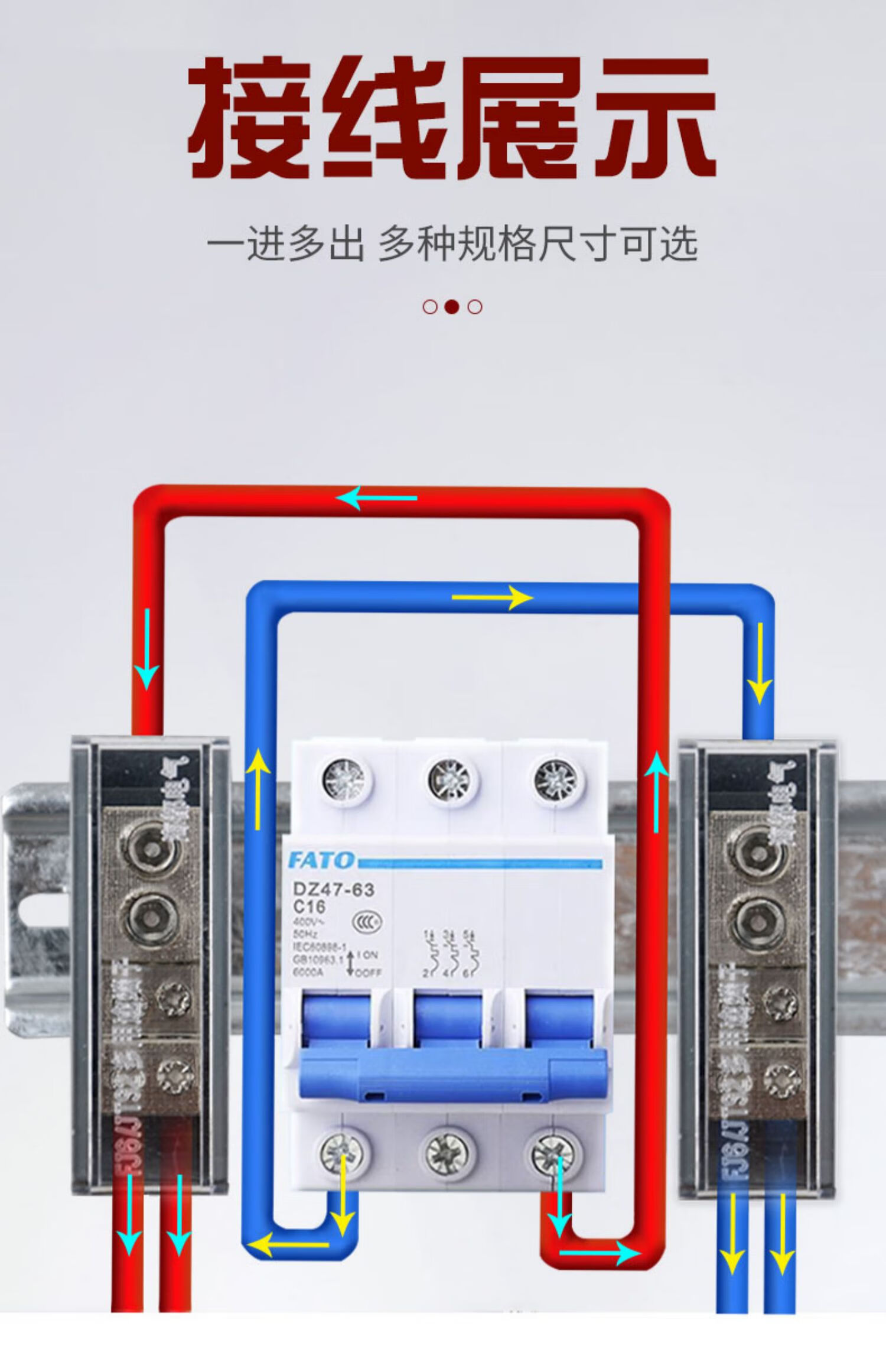 Andatong multi-purpose junction box FJ6/JTS2 one-in and multiple-out rail-type wire connector, one-in and two-out (output 4-16mm)