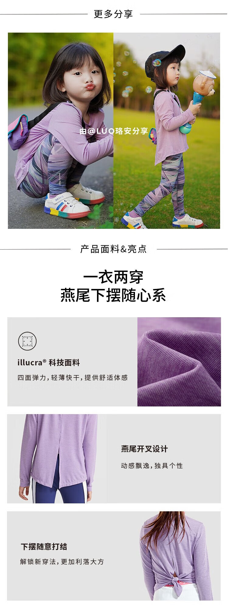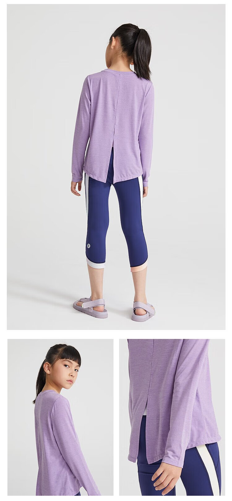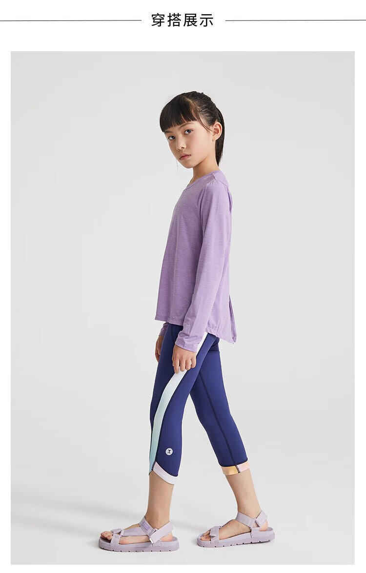 Moodytiger girls' long-sleeved T-shirt cool and quick-drying summer children's top spring and autumn bottoming shirt stretch swallowtail slit sportswear