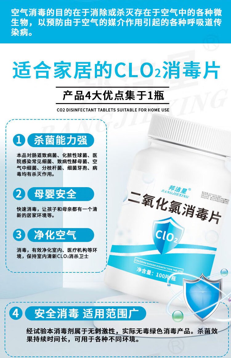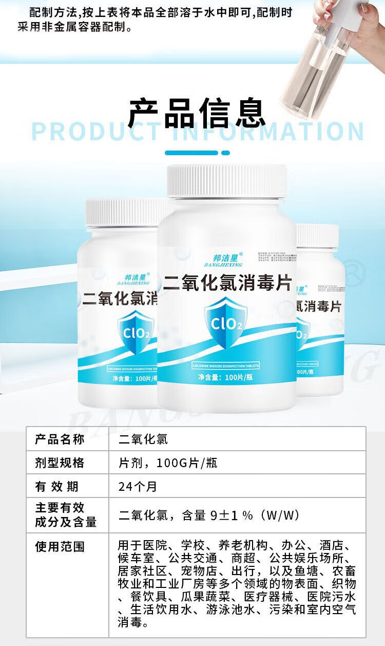 Bangjiexing chlorine dioxide disinfection tablets to kill influenza A, food factory drinking water disinfection, fruit and vegetable environment chlorine-containing disinfection food grade