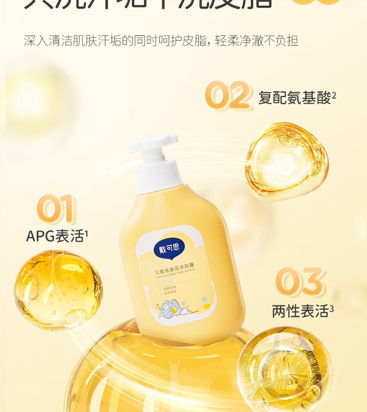 Dexter Children's Calendula Shower Gel, 3-12 year old baby shower gel, amino acid formula trial pack 60ml