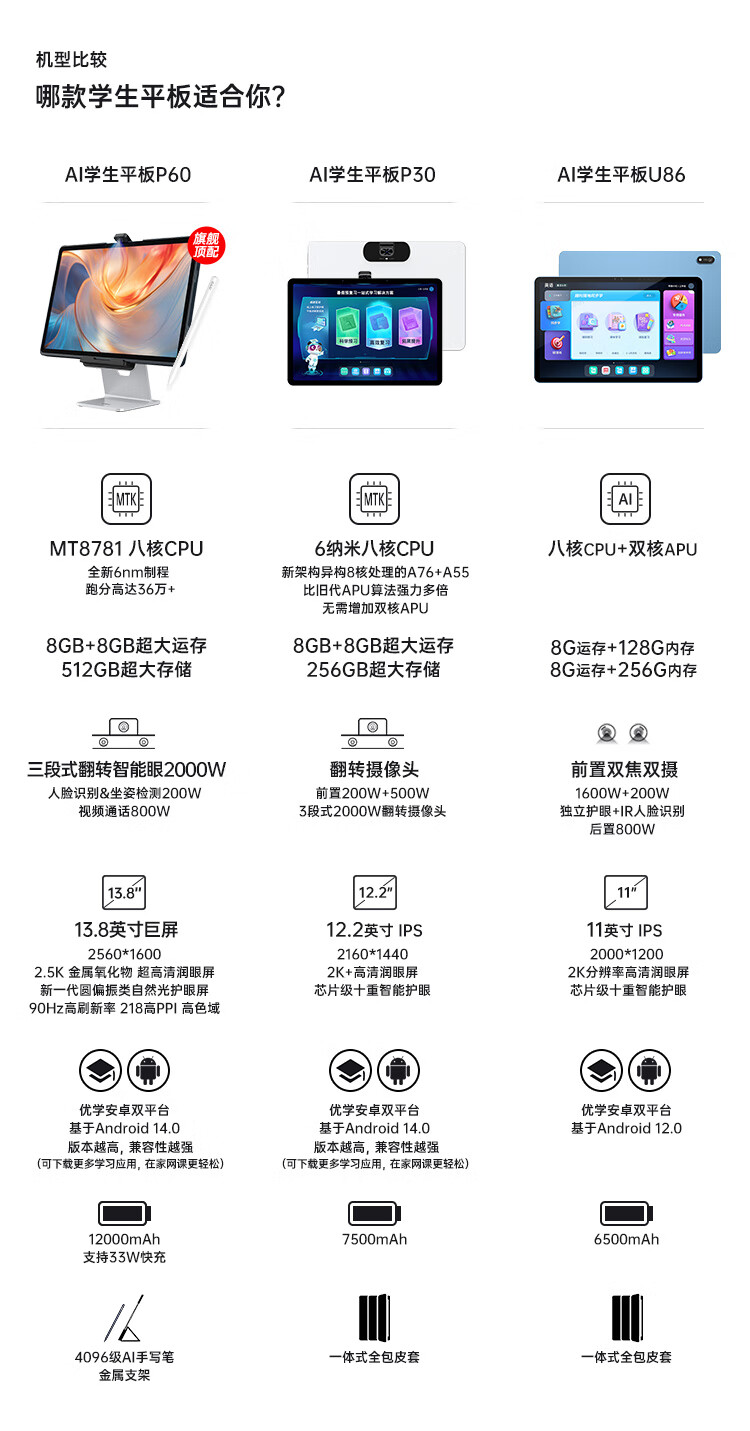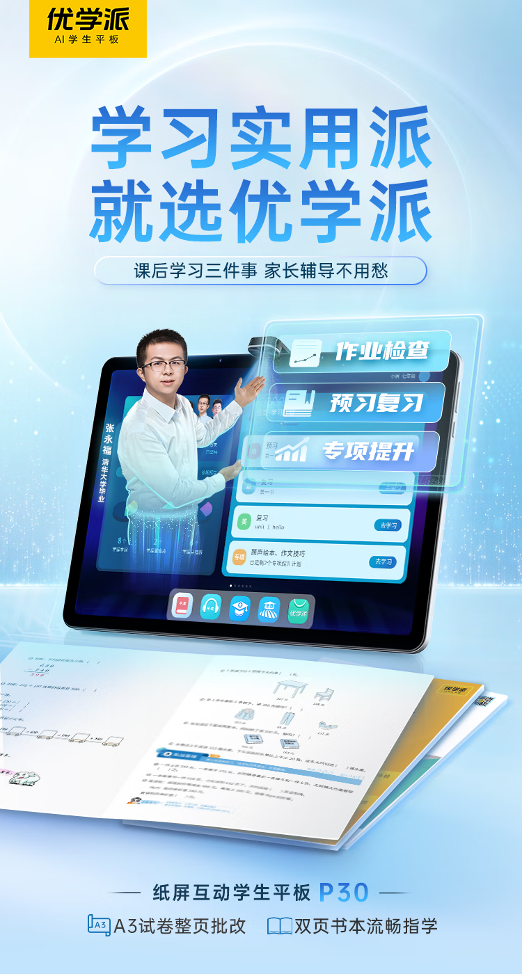 Youxuepai AI learning machine P30 8+256G 12.2-inch large-screen eye-protecting student tablet PC primary and secondary school English learning tutoring machine for all ages