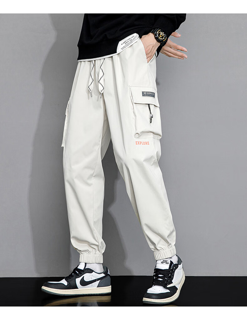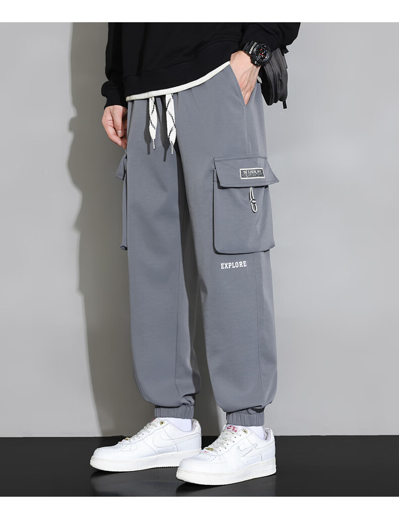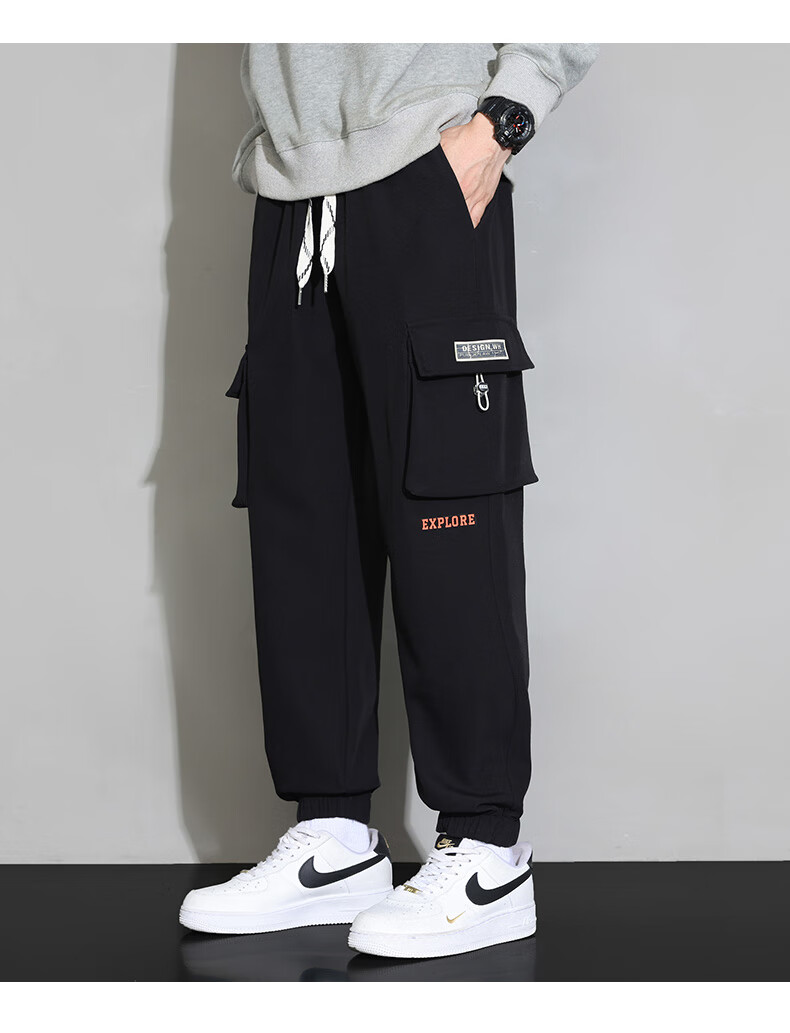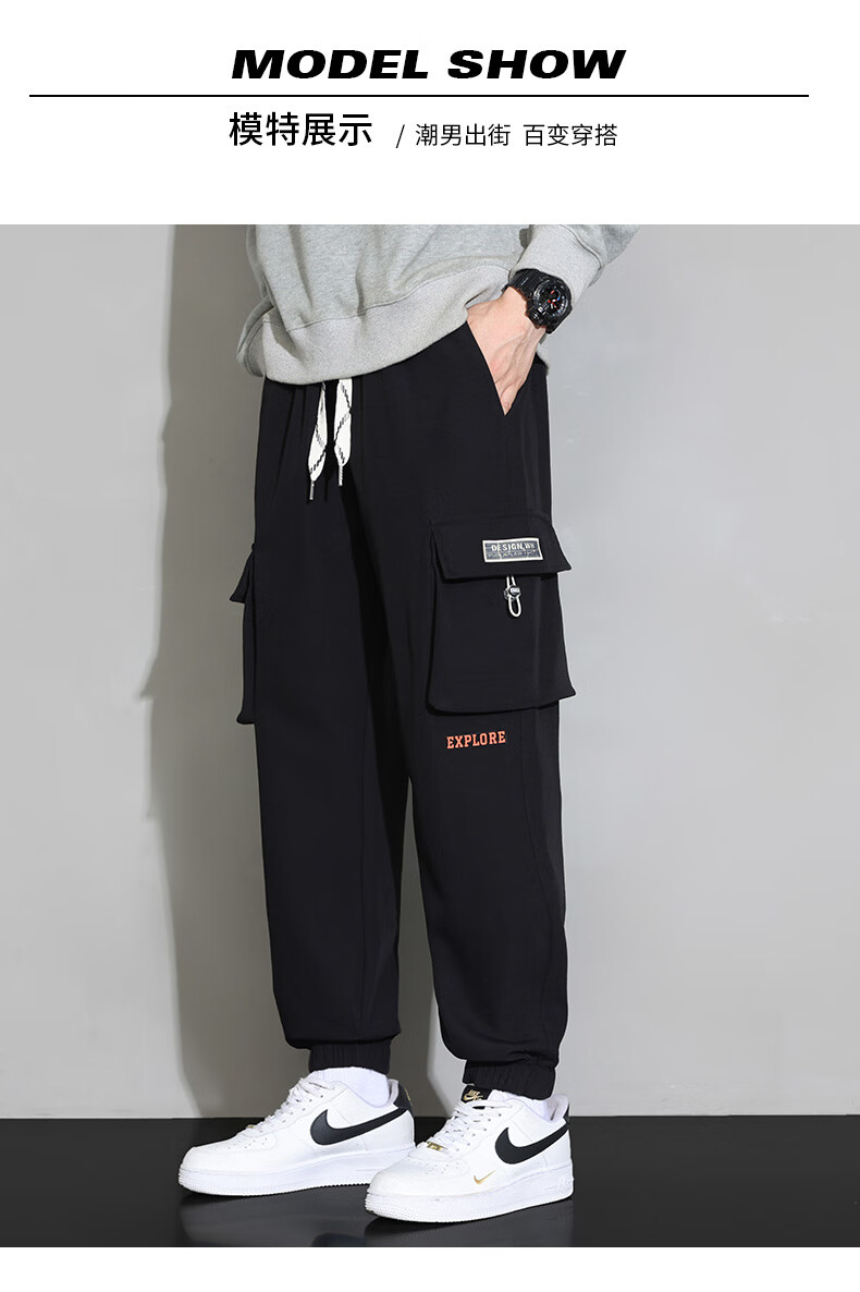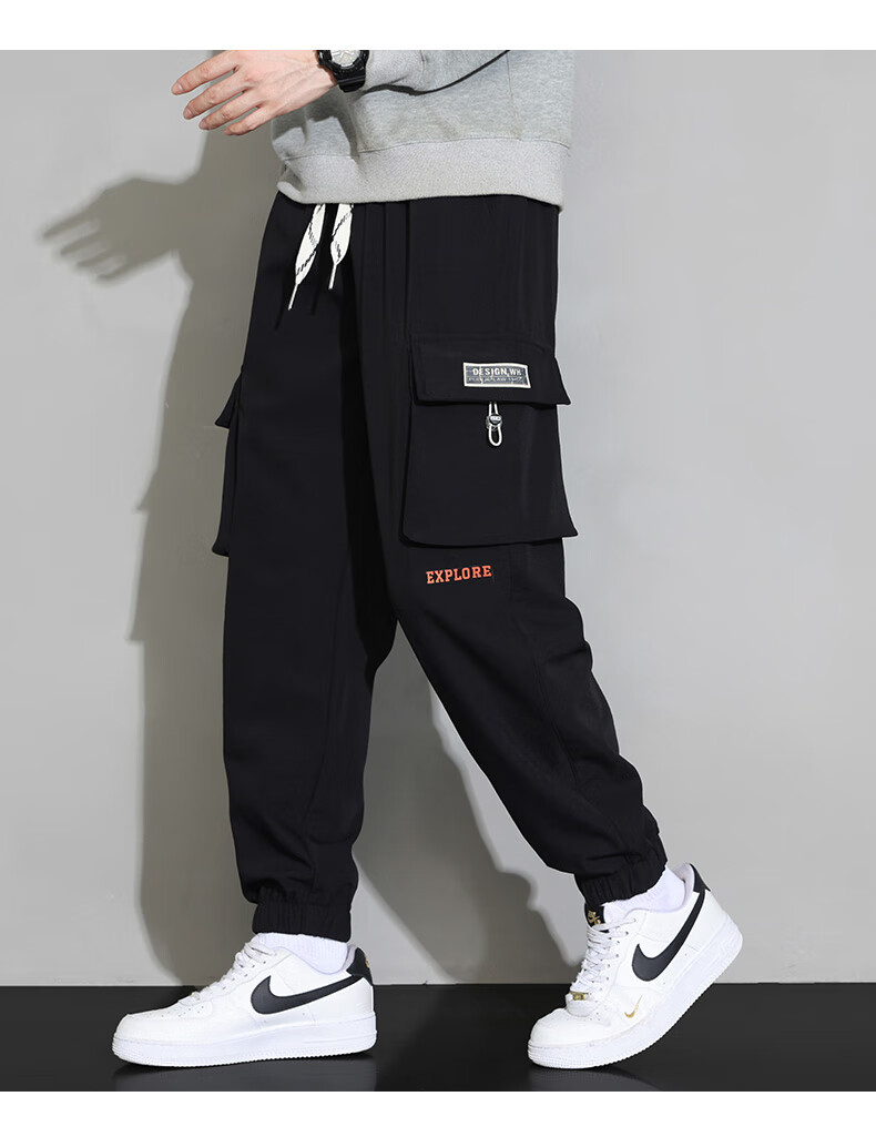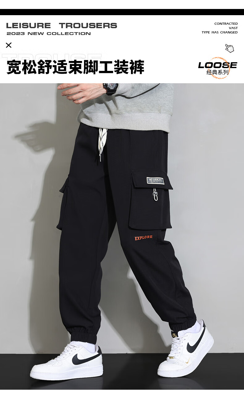 Number one youth overalls men's autumn and winter trendy brand loose fat sports plus fat plus size men's casual pants men black 5XL