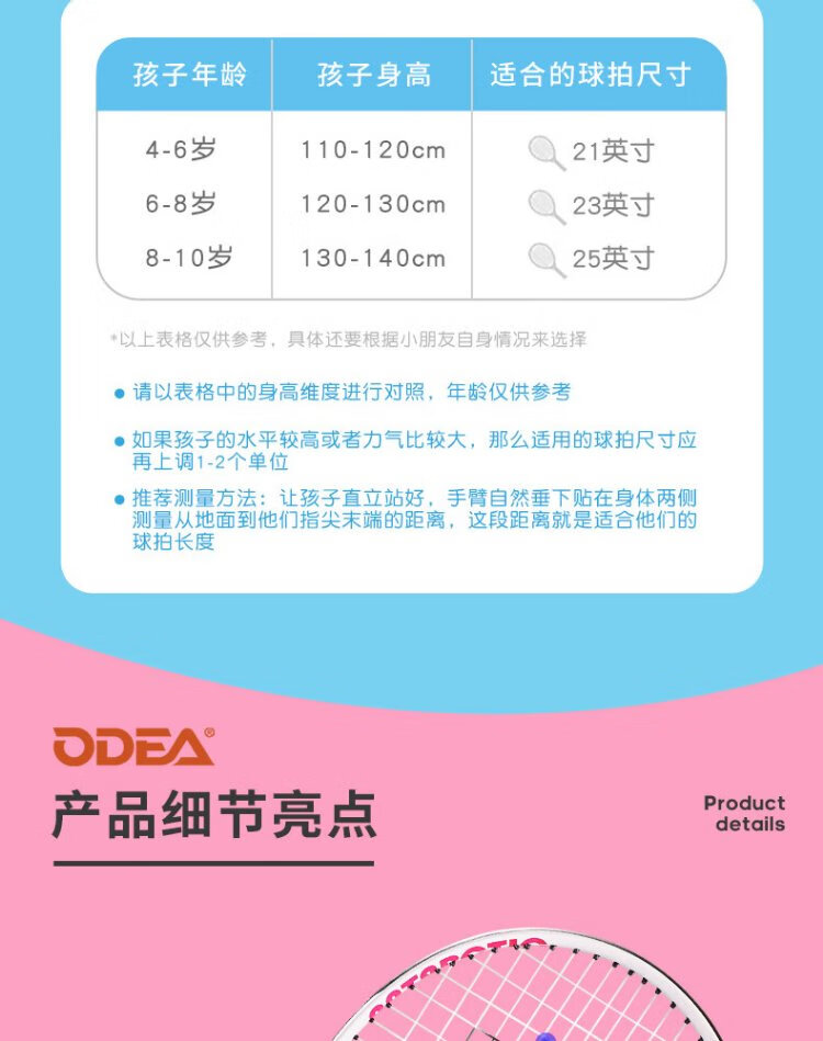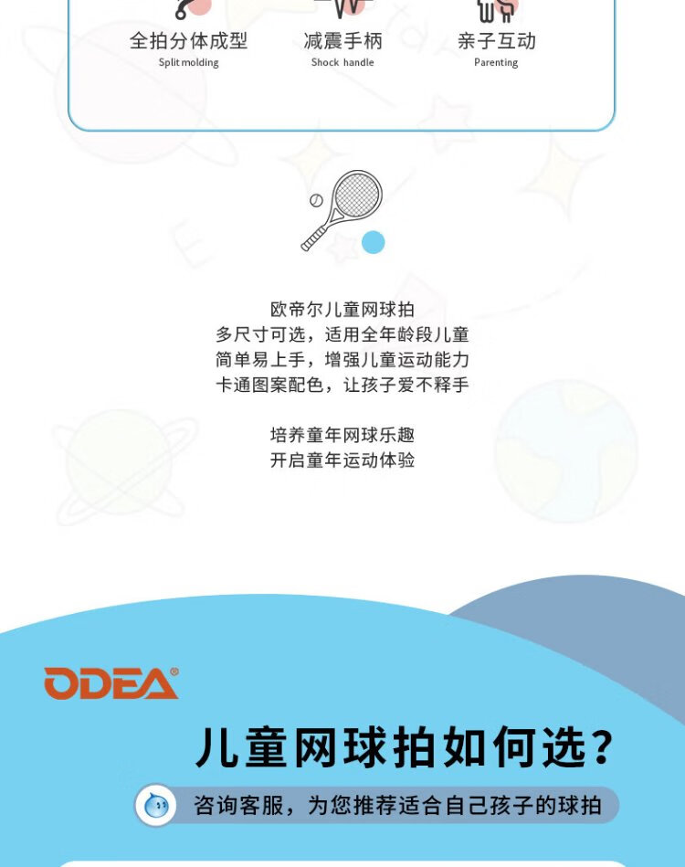 Odear children's tennis racket tennis rebound trainer beginner 23-inch tennis racket