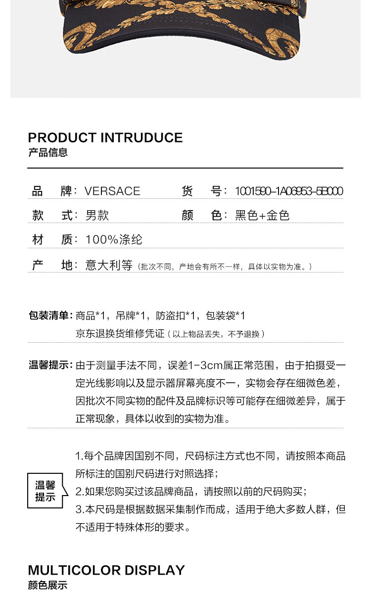 Versace men's baseball cap black + gold 60