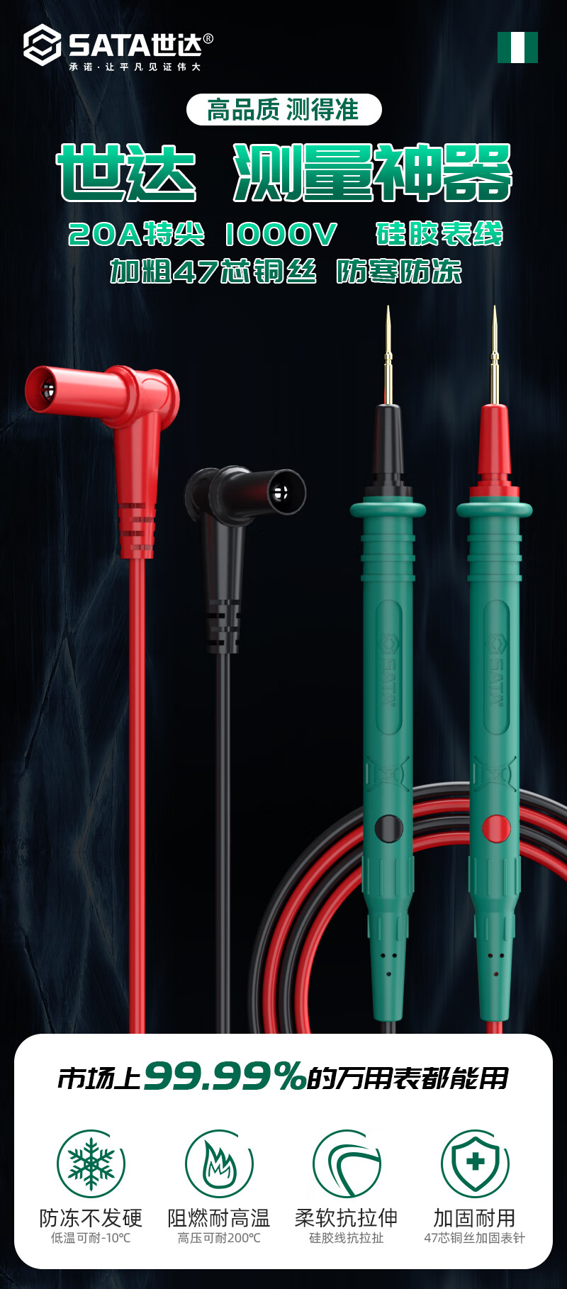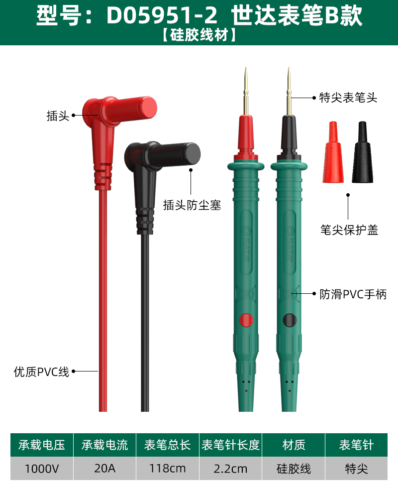 Shida SATA multimeter special tip pen gold-plated steel needle antifreeze silicone wire multimeter high-precision pen D05951-2
