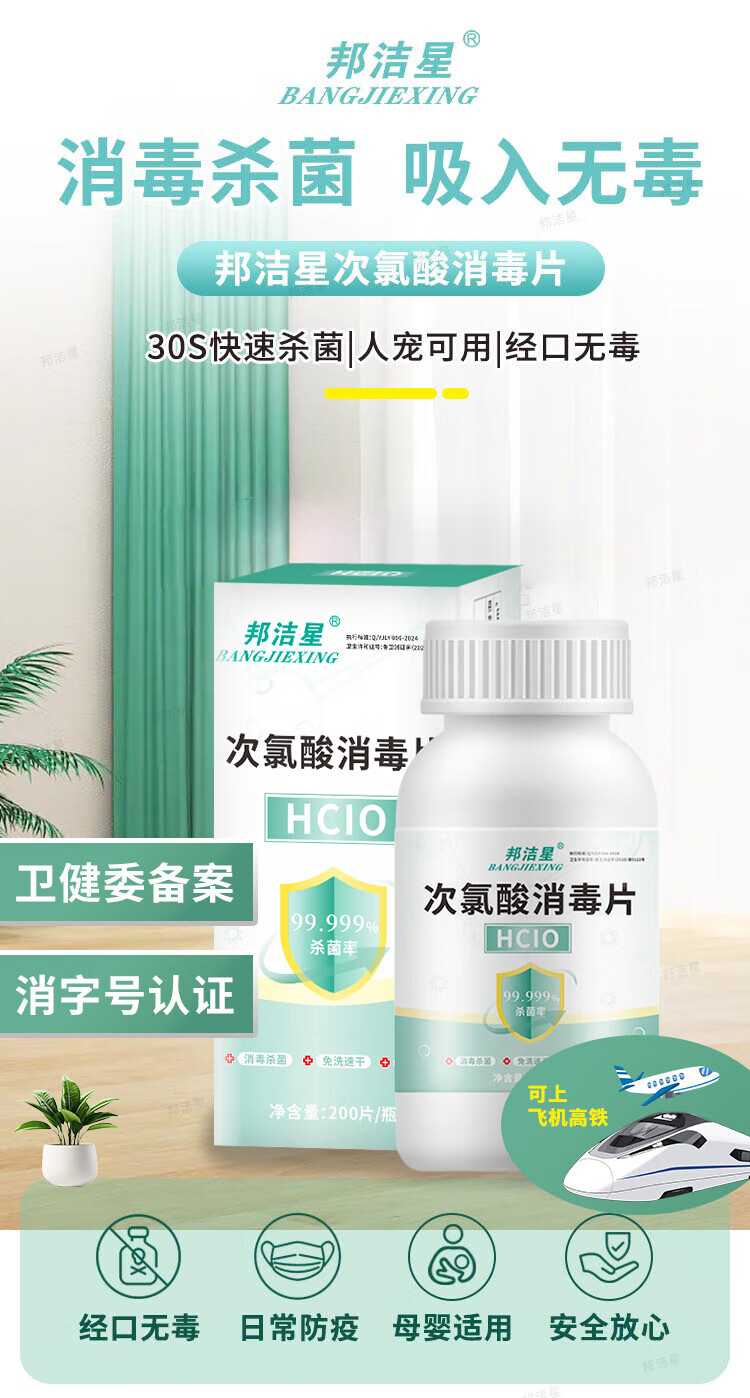 Bangjiexing hypochlorous acid disinfection effervescent tablets air hand surface clothing public washing machine disinfection tablets to kill influenza A