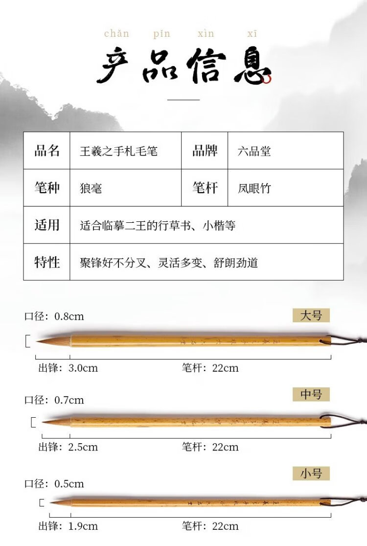 Liupintang calligraphy brush Langhao Wang Xizhi's handwritten calligraphy special running script running cursive professional grade ancient Chinese regular script small regular script hook line pen small purple hair really does not split or shed hair