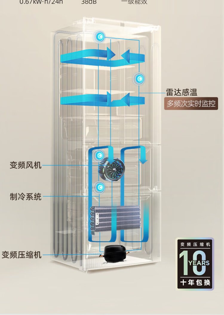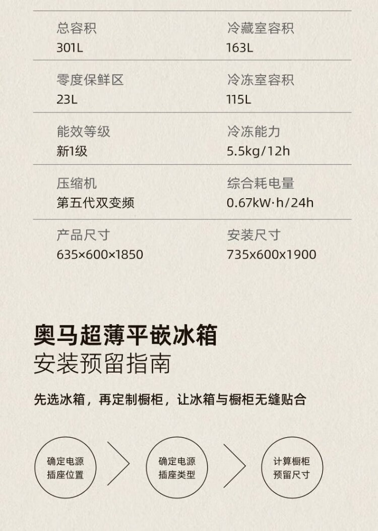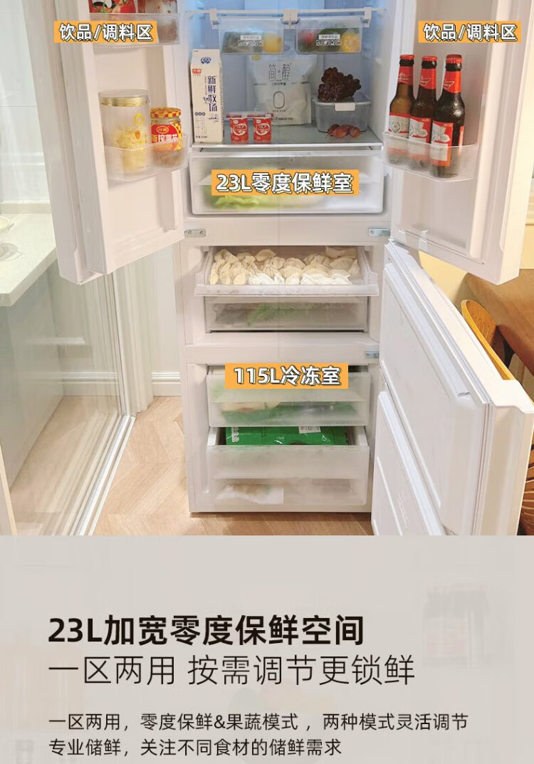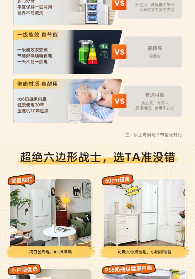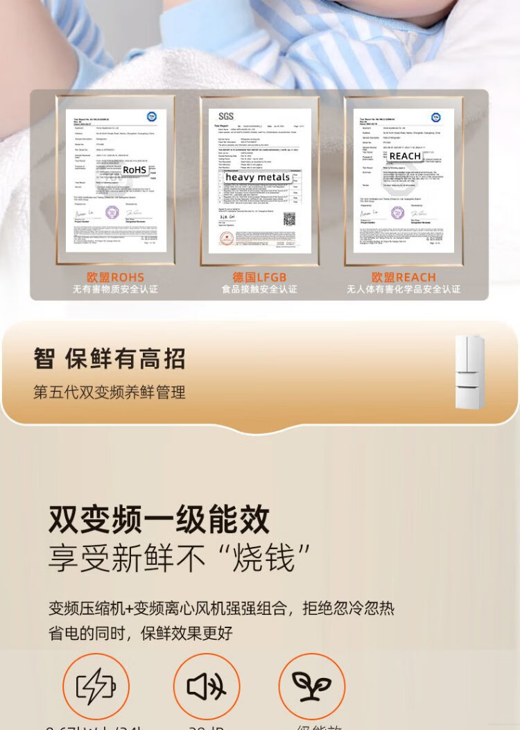 Homa 60cm ultra-thin 301 liter inverter energy-saving first-class energy efficiency air-cooled frost-free double-door three-door French multi-door small household white refrigerator national subsidy 301WF/B