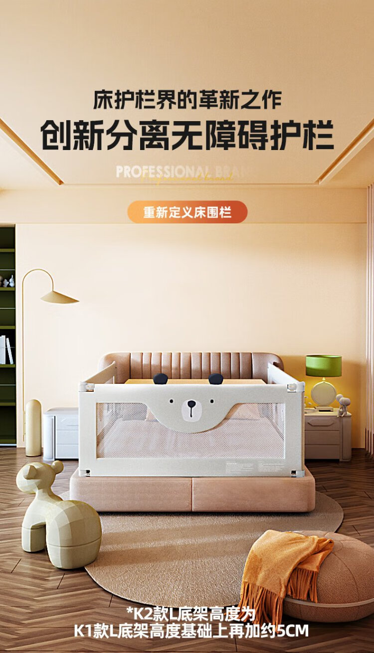 Maruya crib fence baby anti-fall bed guardrail bedside anti-fall bezel guardrail heighten 2.0m baby bear side