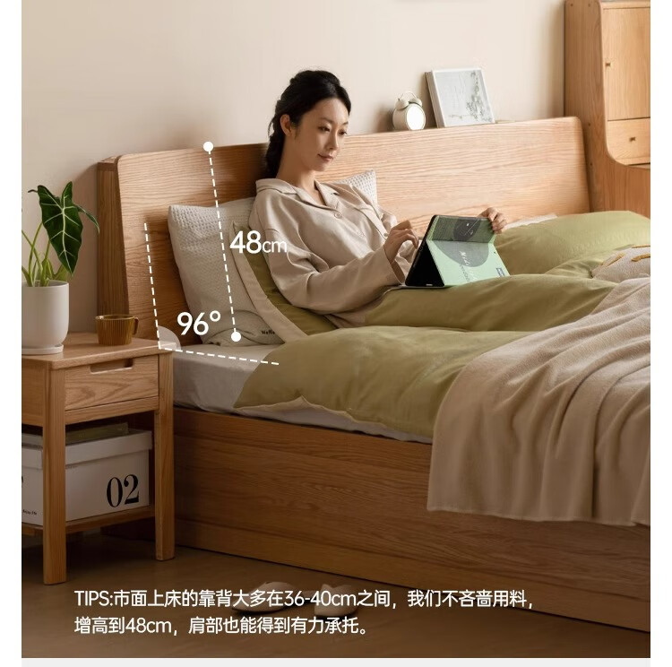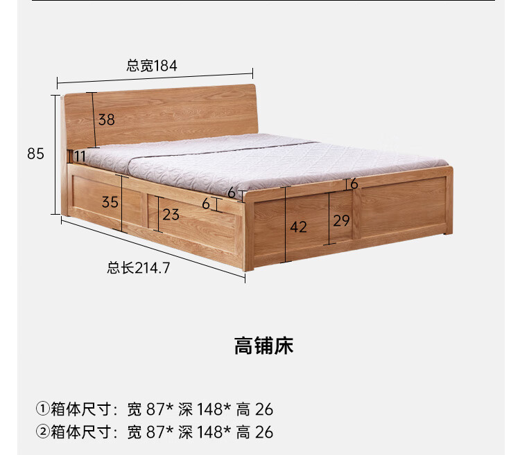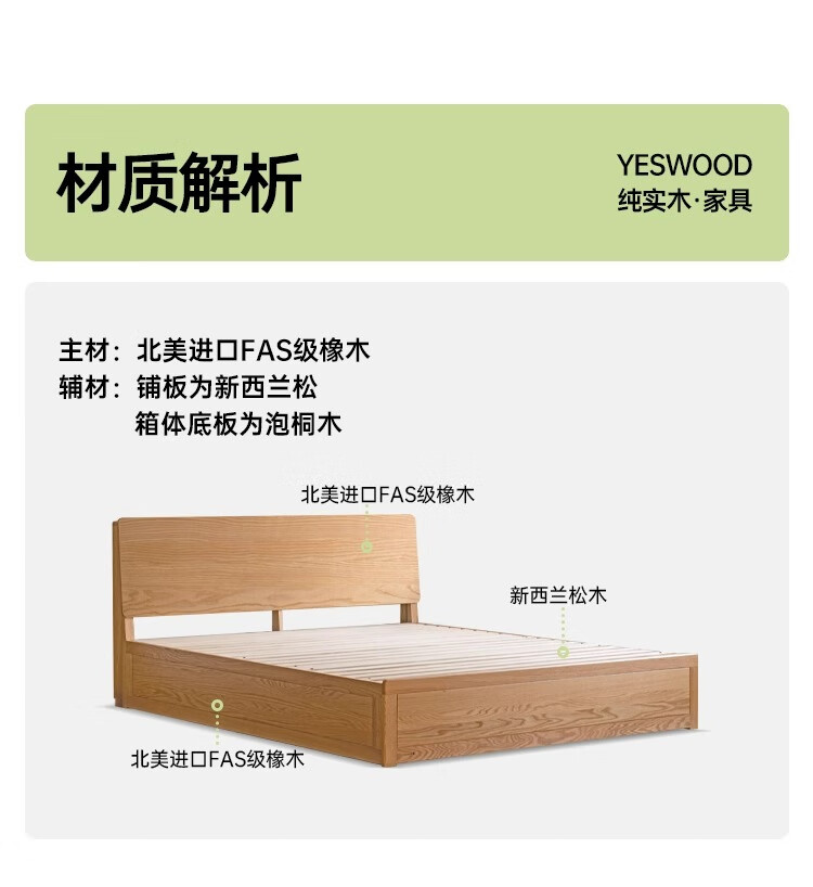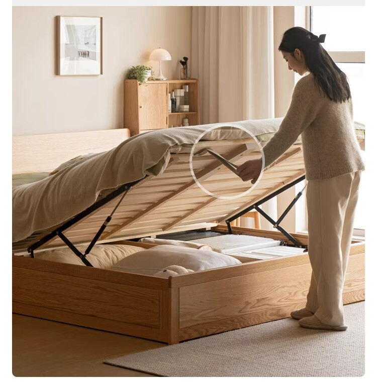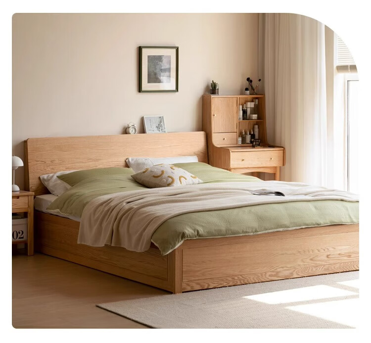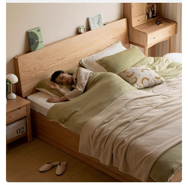 Genji Wood Language Solid Wood Double Bed Simple Modern Log Style Oak Box Bed Nordic Bedroom High Box Storage Bed