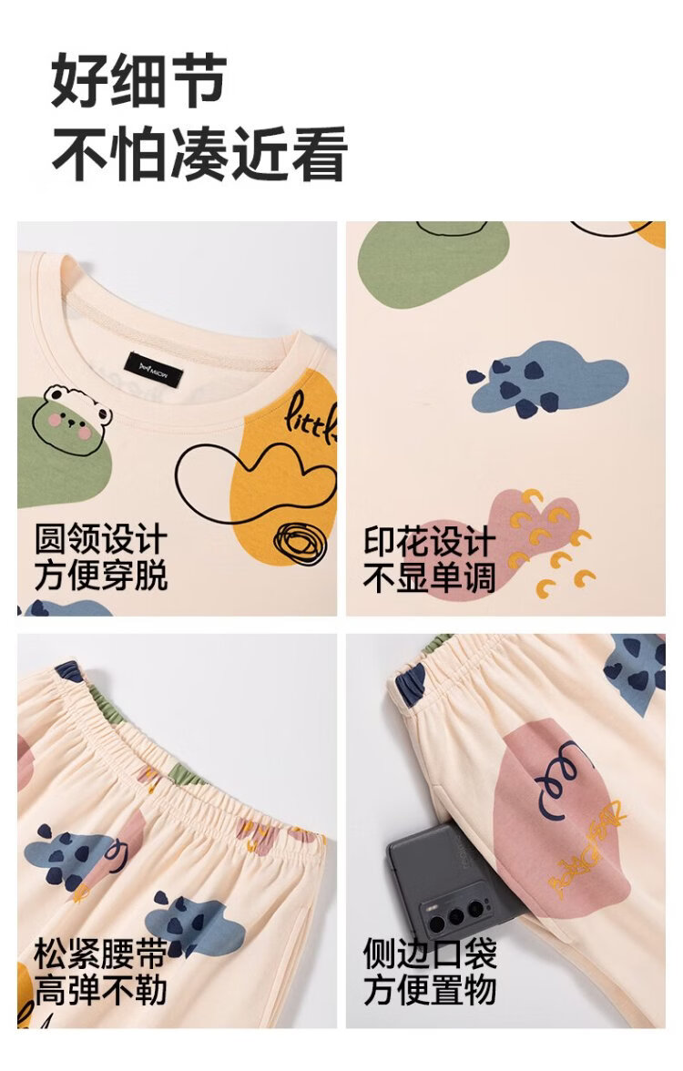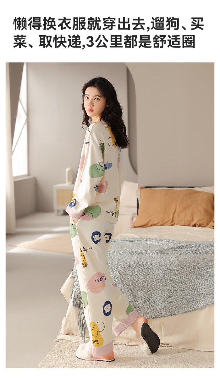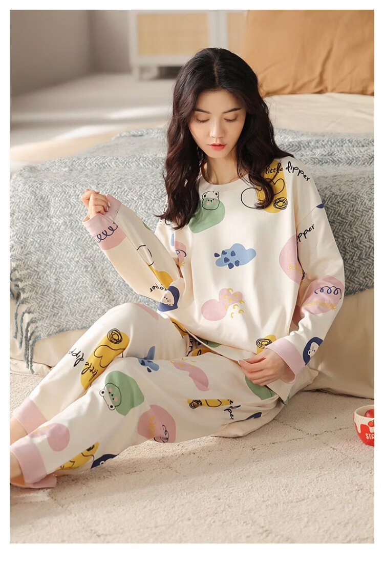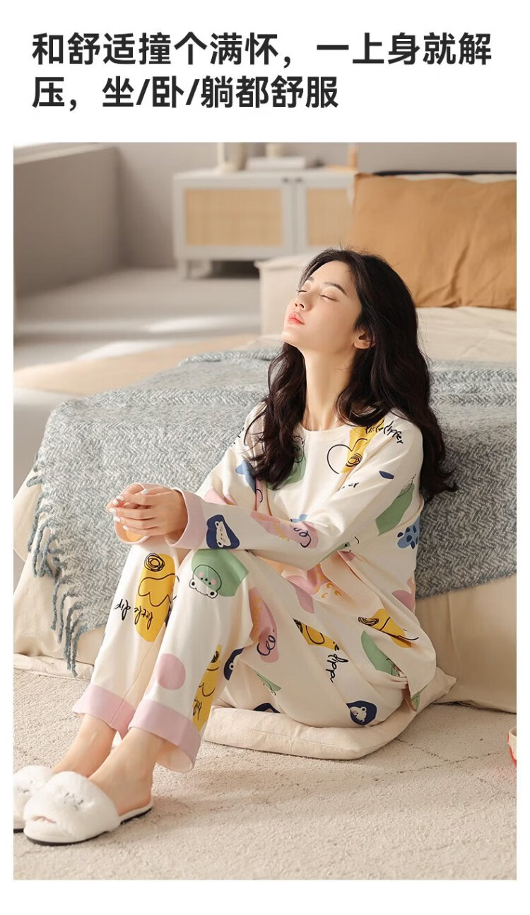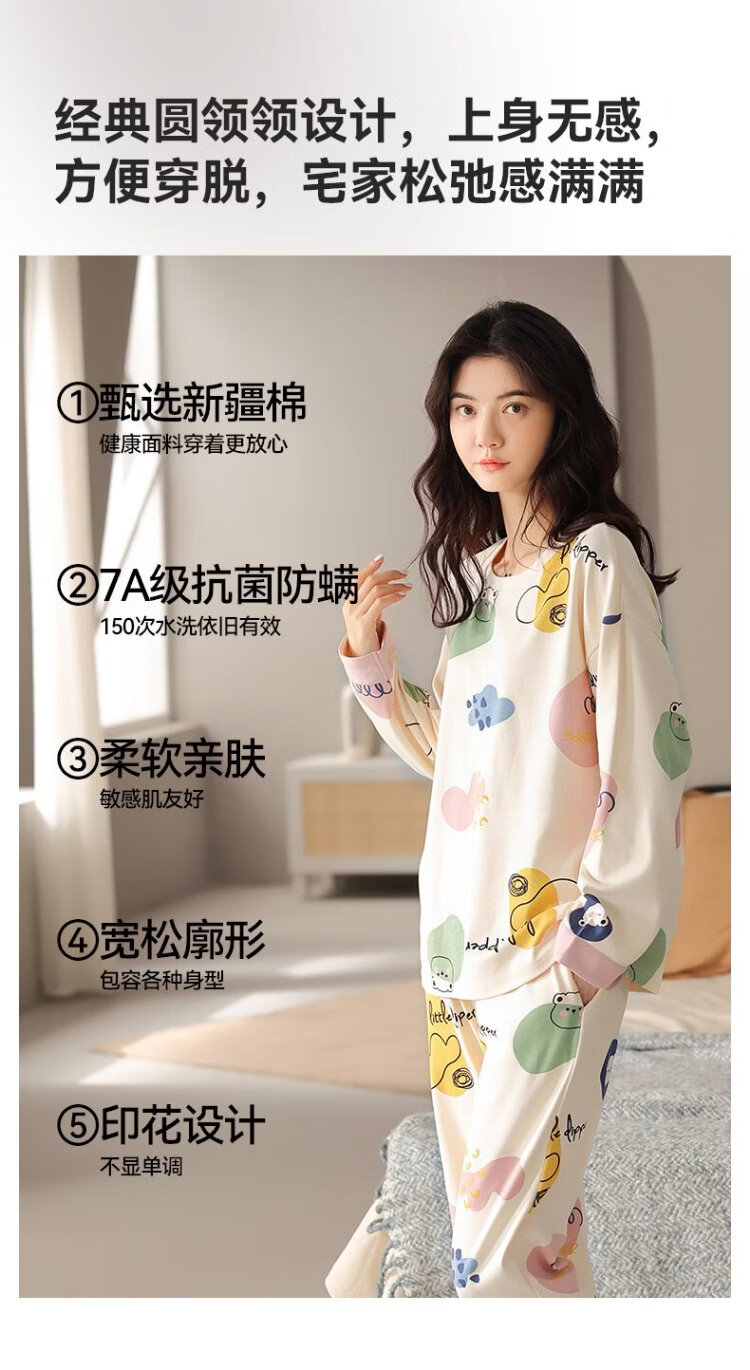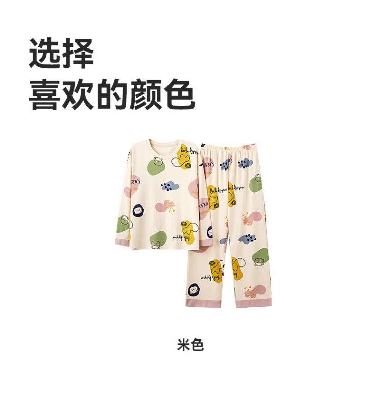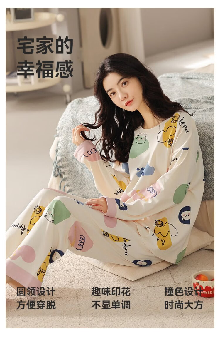 MiiOW Women's Pajamas Spring and Autumn 100% Cotton/7A Antibacterial Skin Friendly Round Neck Pullover Long Sleeve Four Seasons Home Clothes