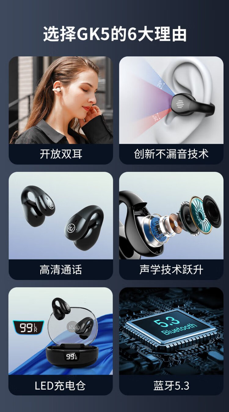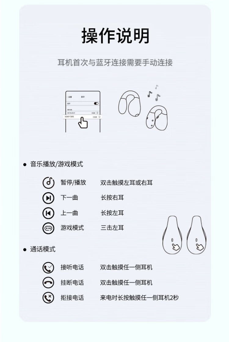 Sony Ericsson GK5 Air Conduction Concept Headphones True Wireless Bluetooth In-Ear Mini Ear Clip Sports Running Open Noise Reduction Suitable for Apple Huawei Xiaomi Vivo White