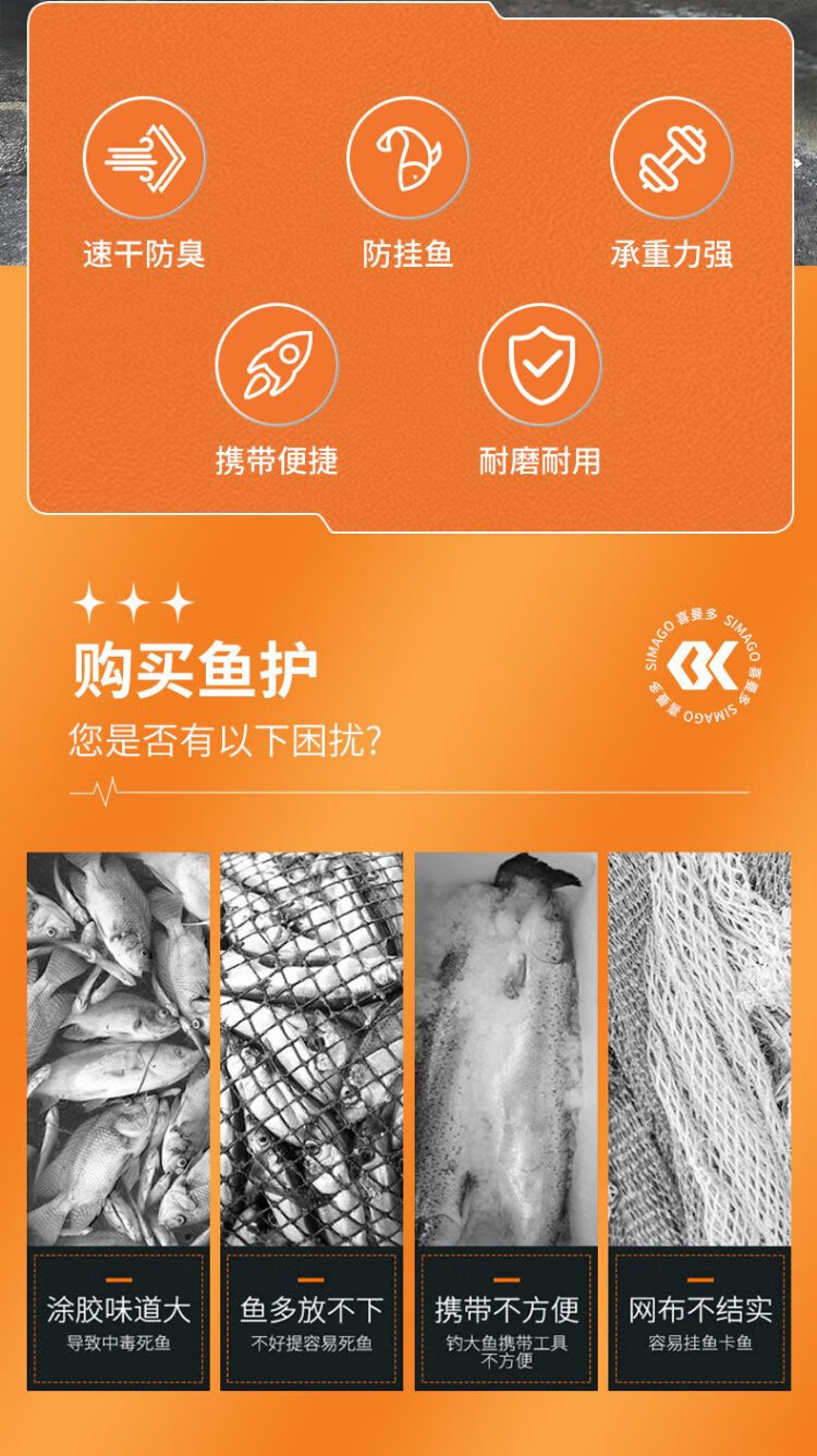 SIMAGO Ximanduo Fish Protective Net Pocket Fishing Net Thickened Anti-hanging Quick-drying Fishing Net Pocket Fish Protective Bag Fishing Gear 30cm*1.7m