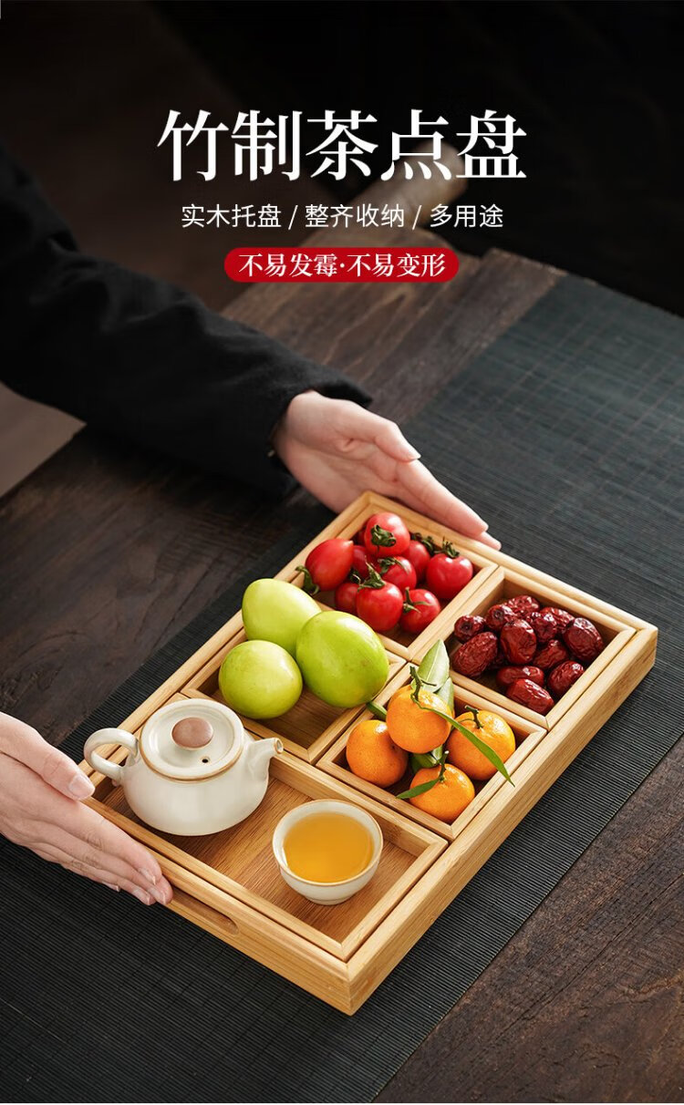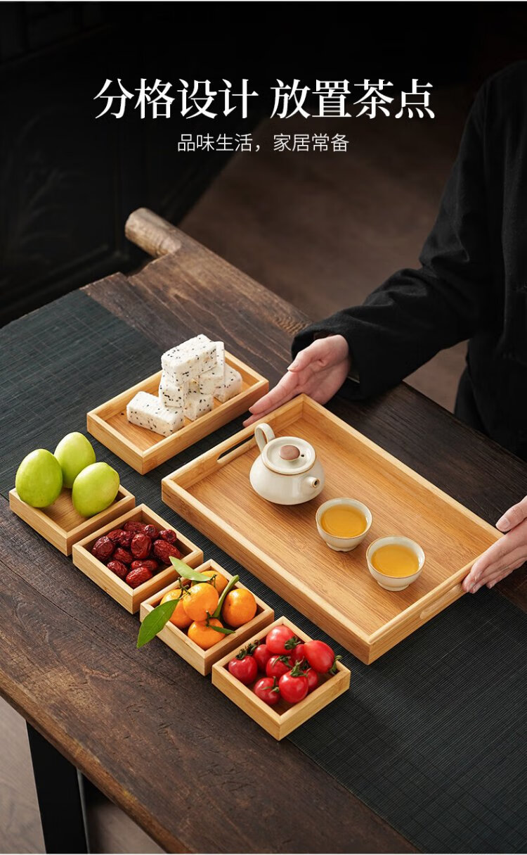 Qixuanyuan stove tea making tools bamboo tea set tray simple home office tea tray compartment storage snack snack tray