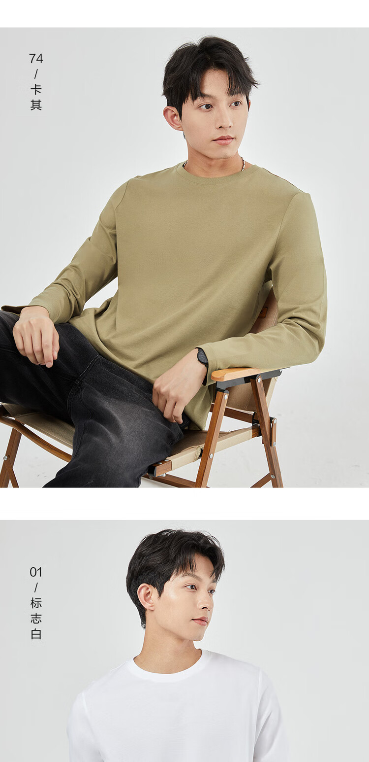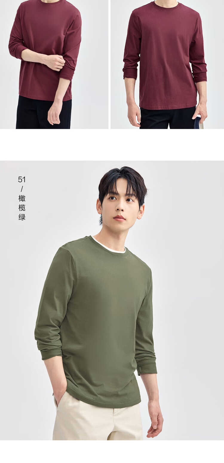 Giordano long-sleeved T-shirt men's pure cotton top basic solid color round neck bottoming shirt 01023820