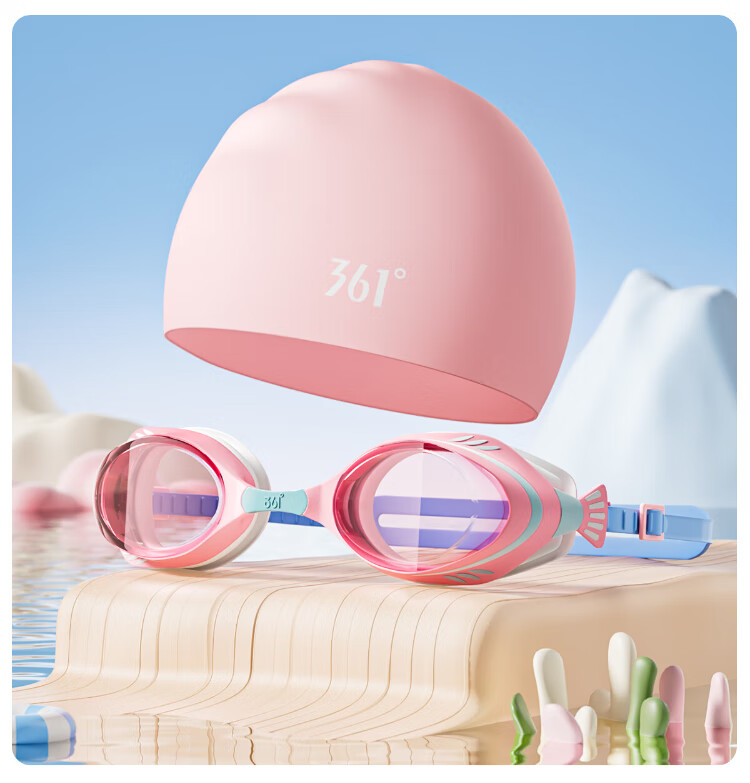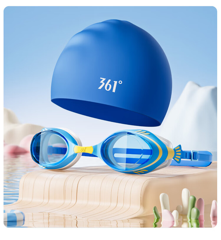 361 children's swimming goggles and swimming cap set, professional training for boys and girls, high-definition waterproof and anti-fog swimming goggles, learning diving equipment