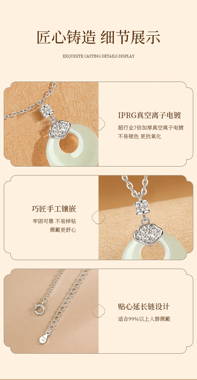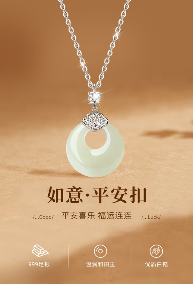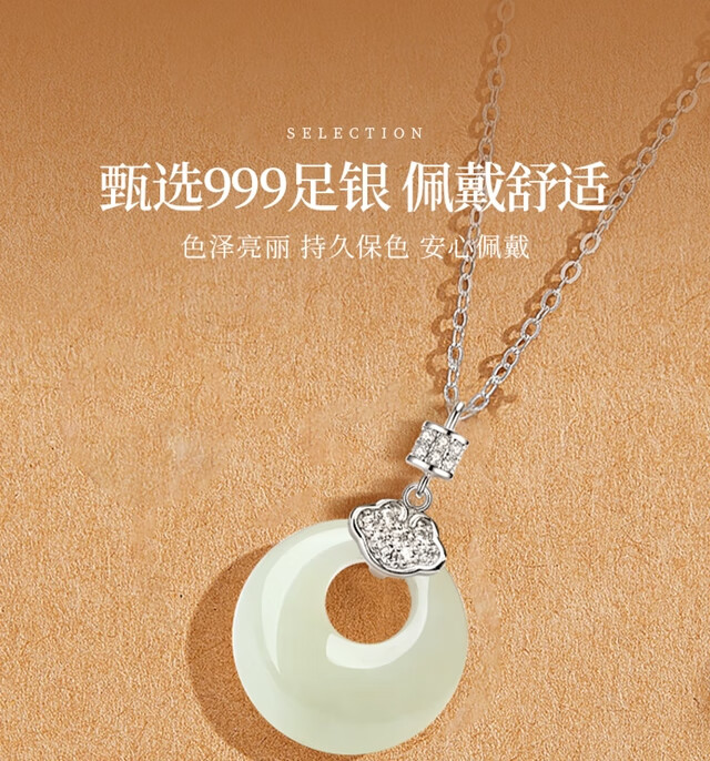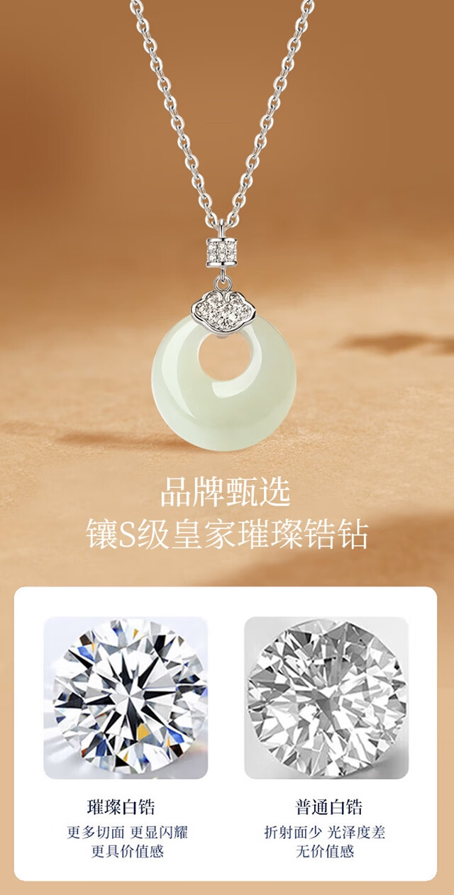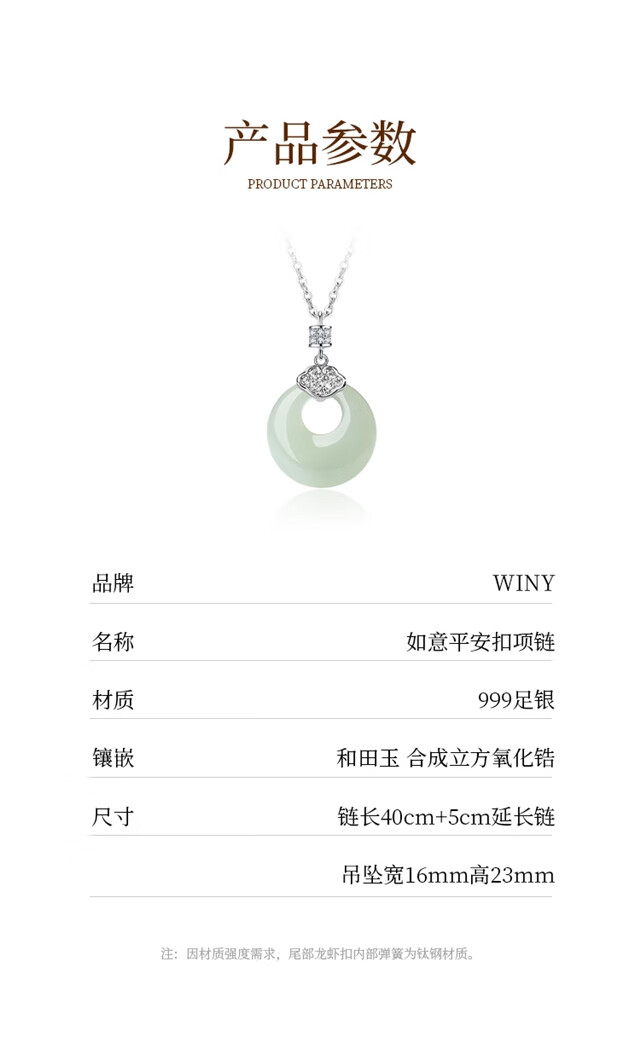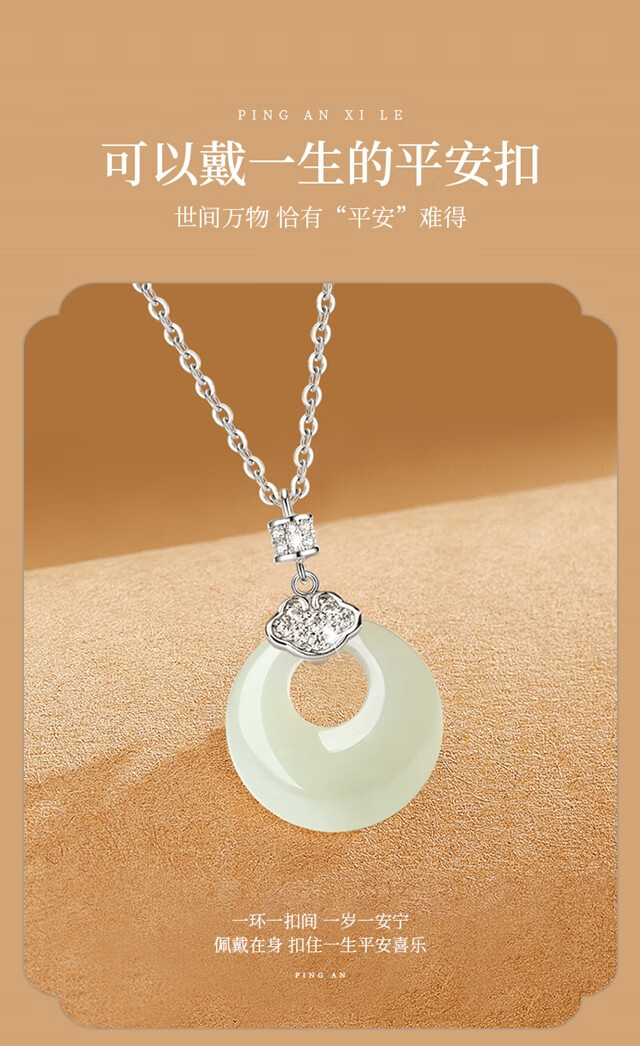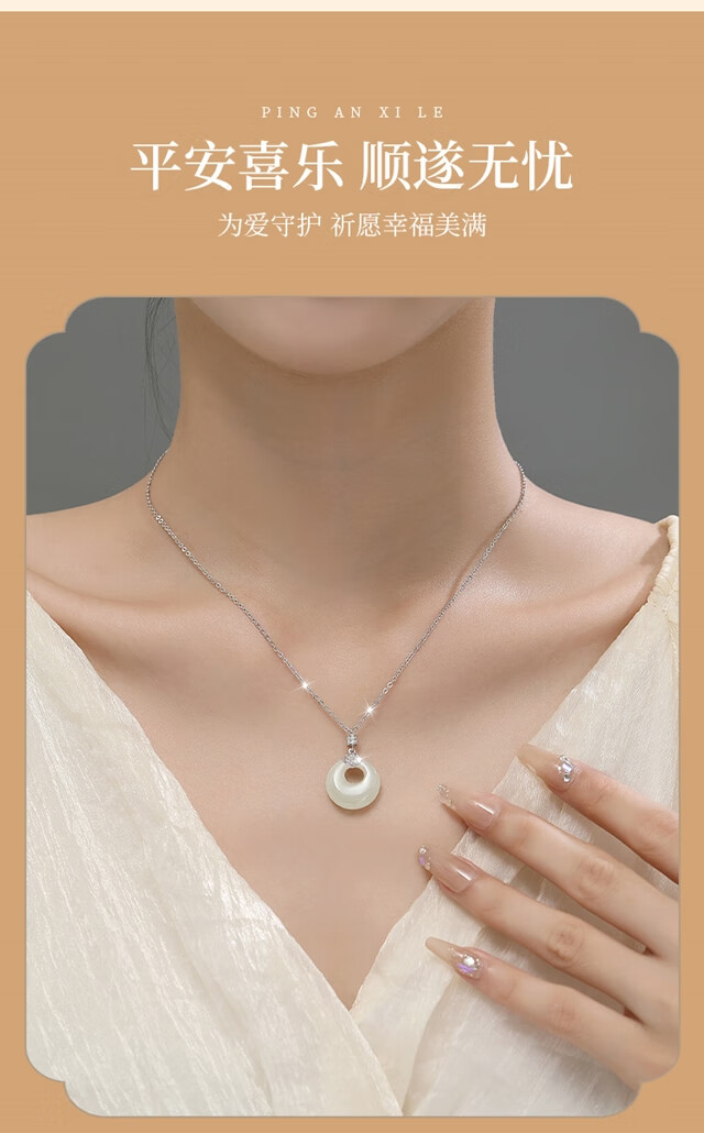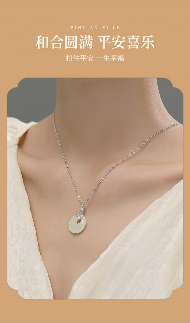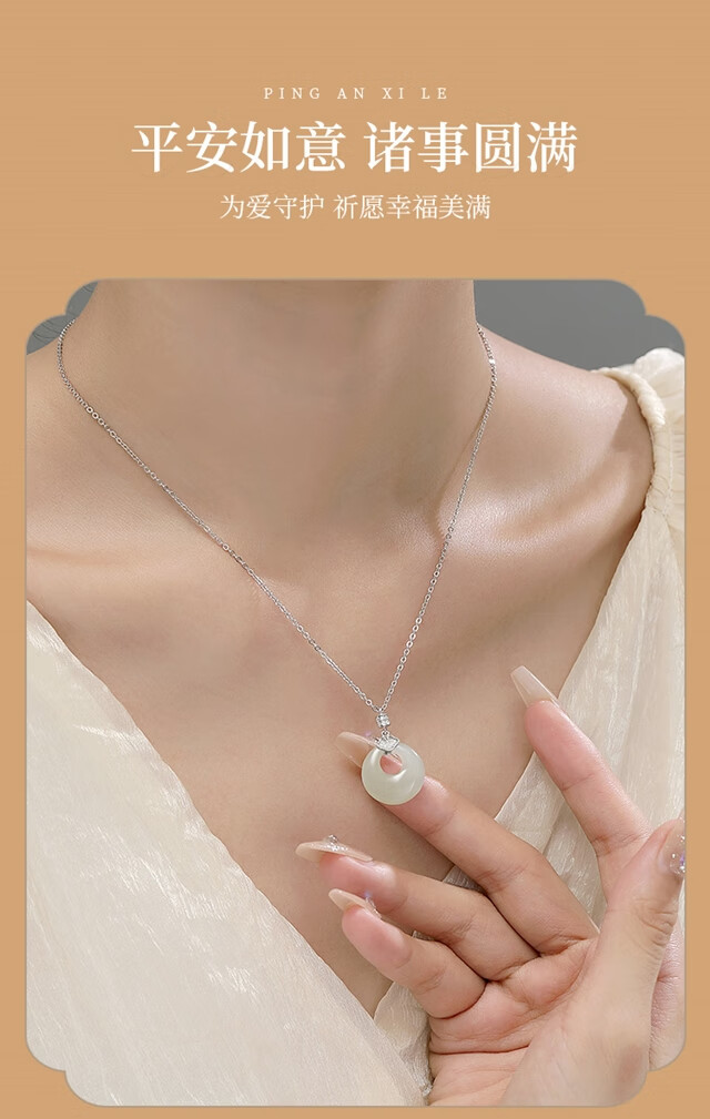The only (Winy) Hetian jade safety buckle sterling silver necklace women's pendant birthday gift for girlfriend and wife silver jewelry