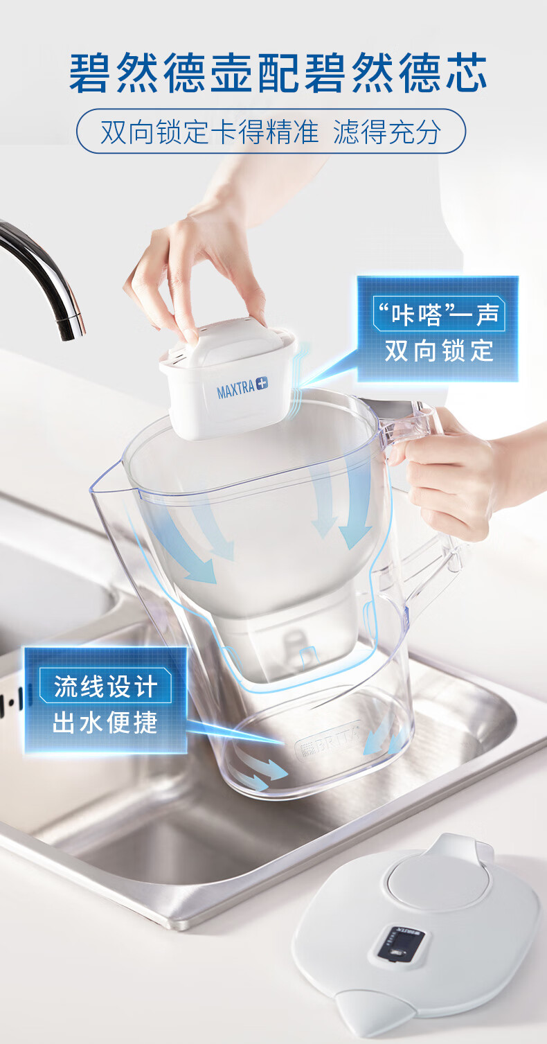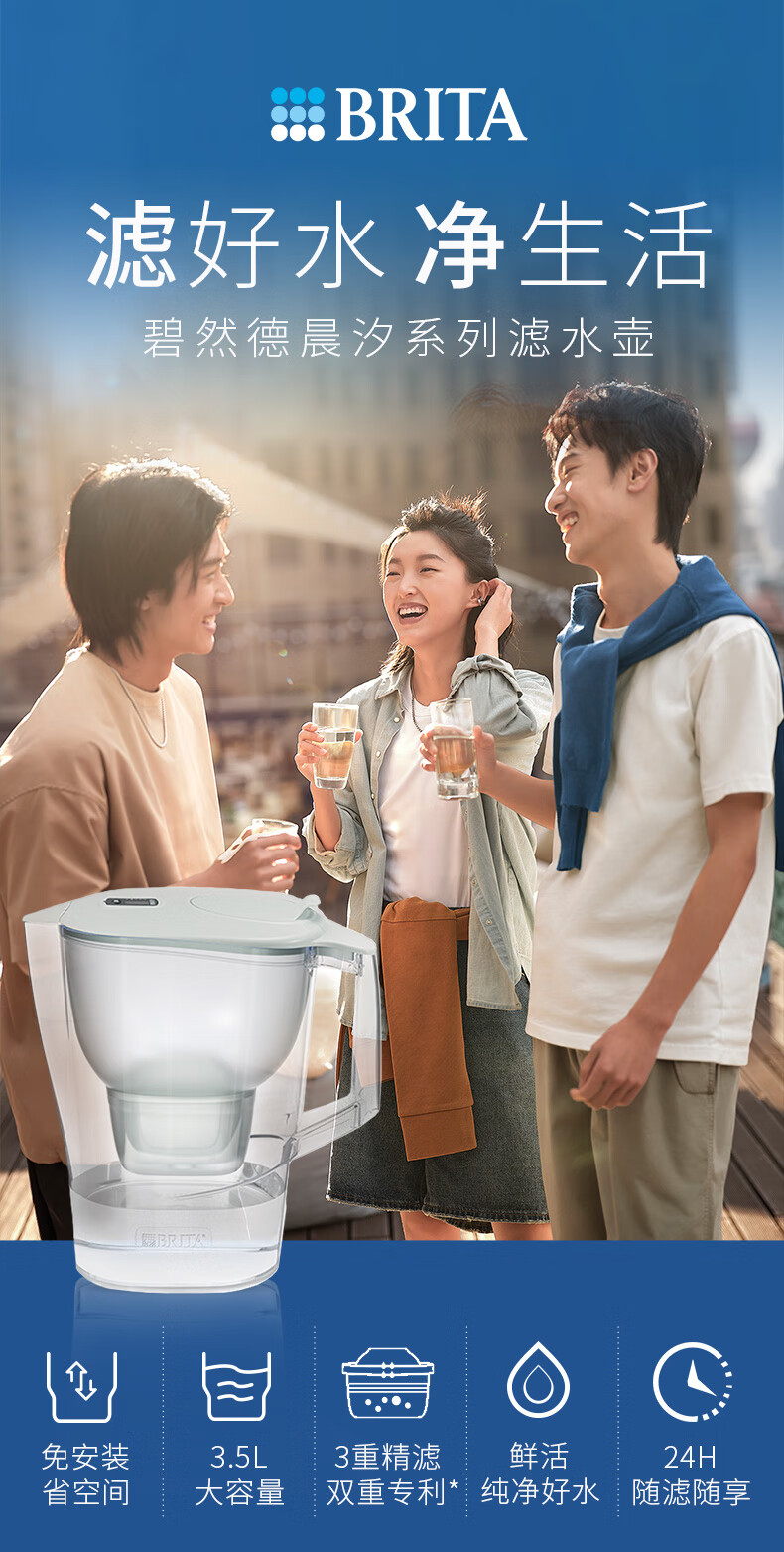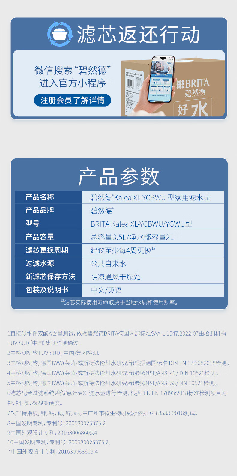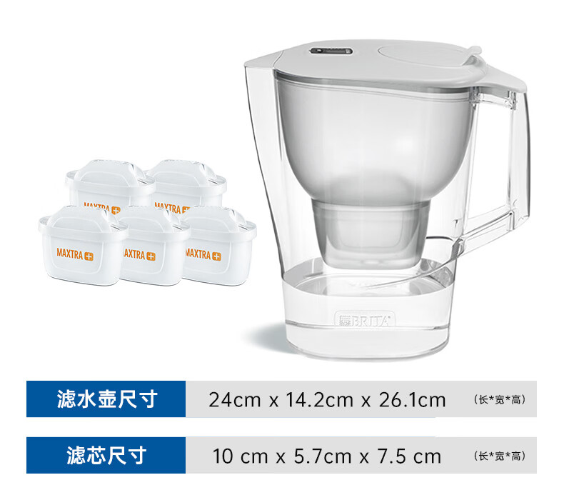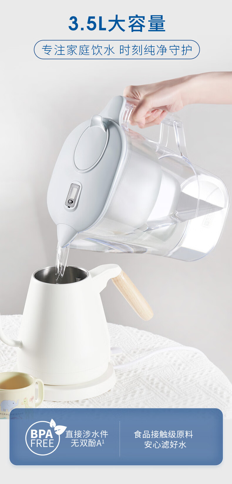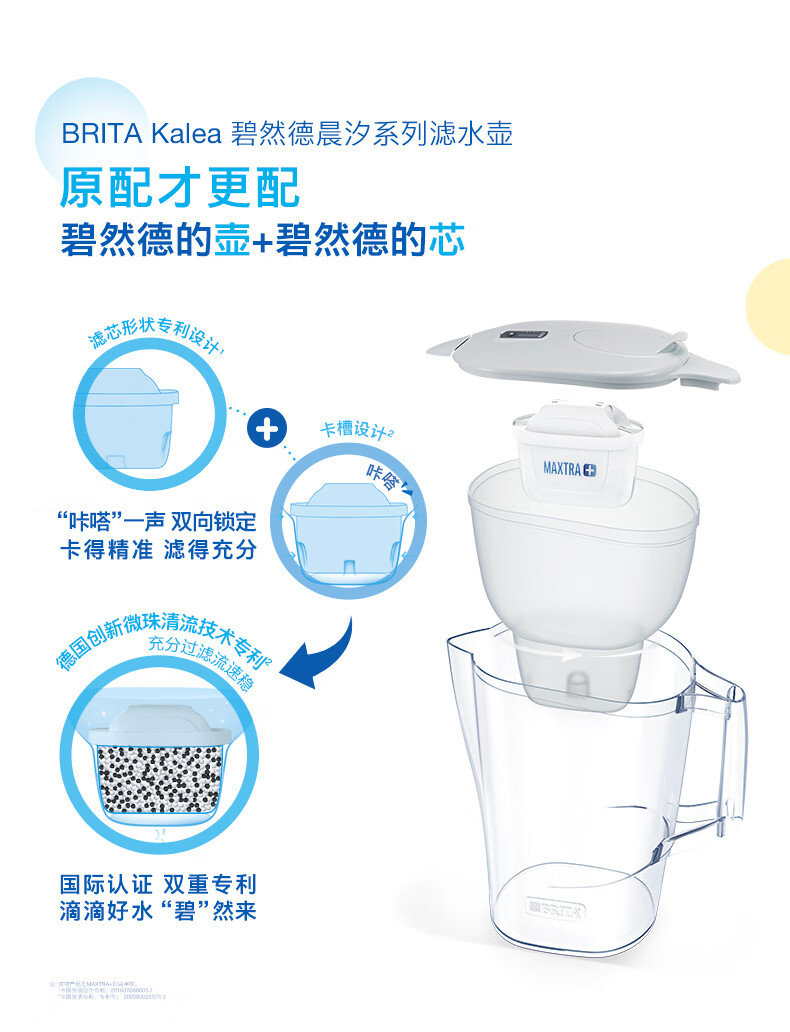 BRITA filter water purifier, household water filter kettle, Kalea Chenxi series XL 3.5L (grey) + 5 expert version filter elements, environmentally friendly reinforced packaging