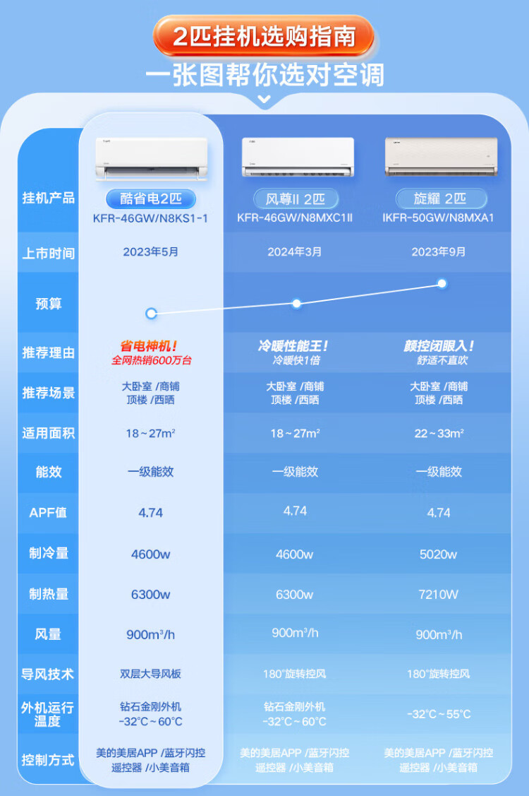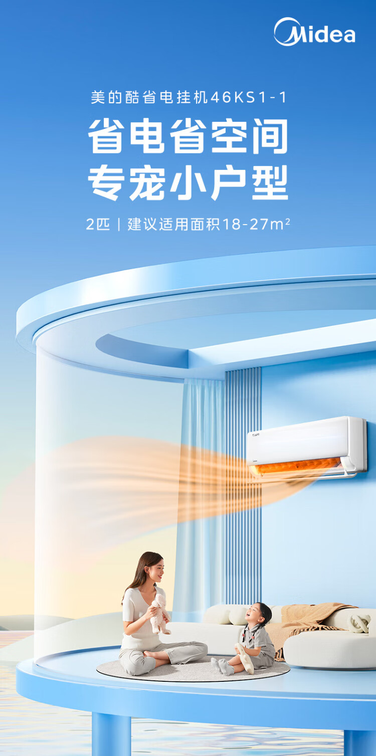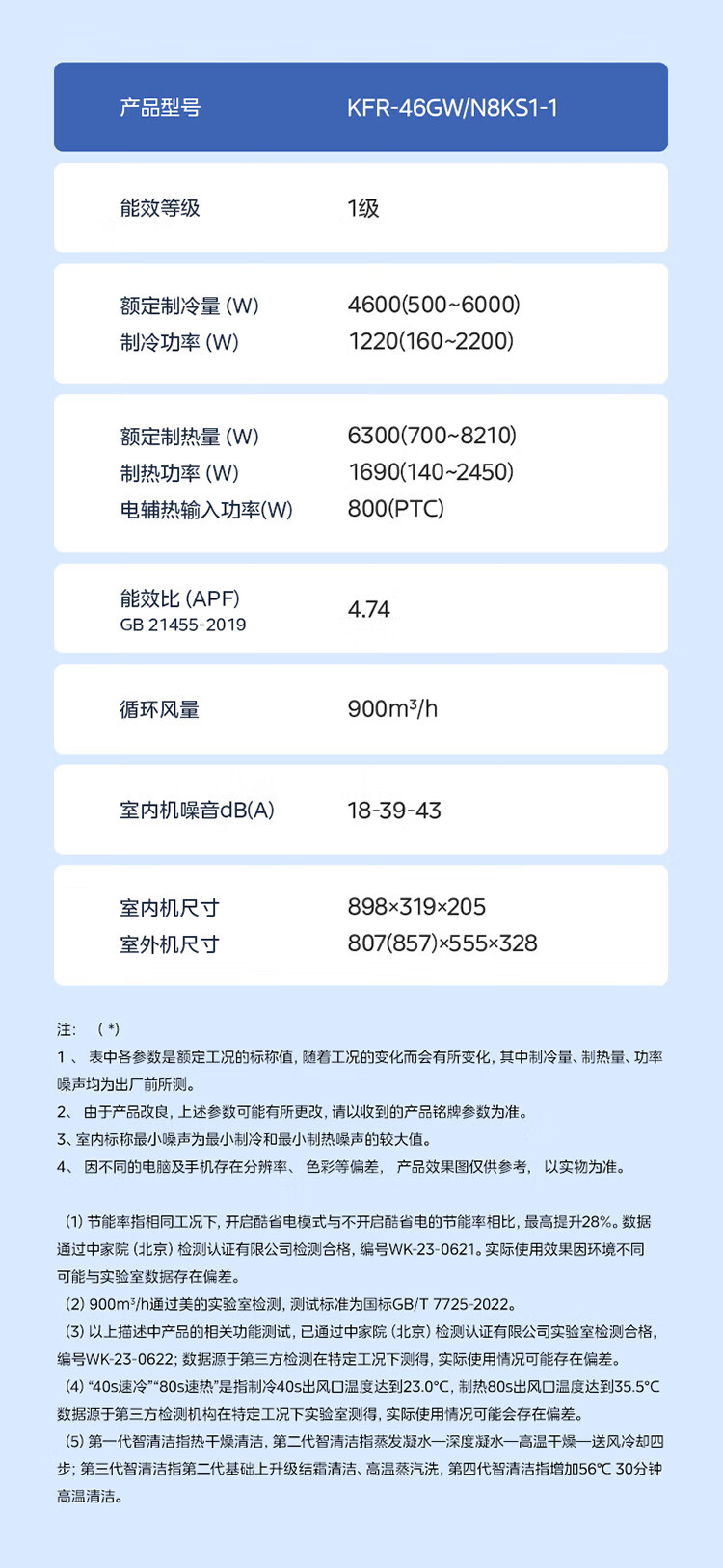 Midea Air Conditioner Cool Energy Saving 2 HP New Level Energy Efficiency Frequency Converter Cooling and Heating Large Bedroom 27 Quick Cooling and Heating Energy Saving Air Conditioner Hang-up State Subsidy KFR-46GW/N8KS1-1