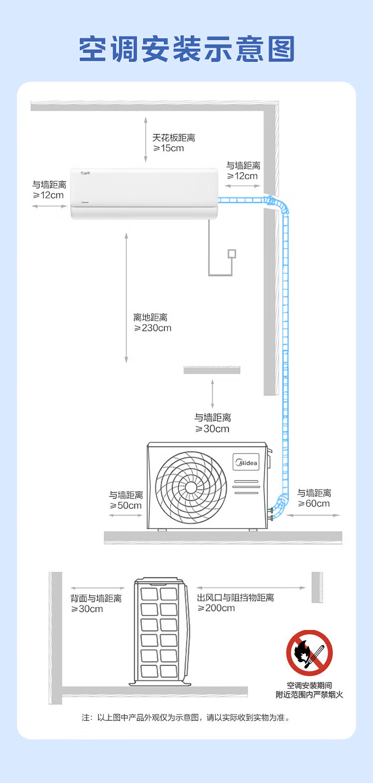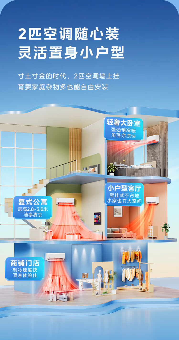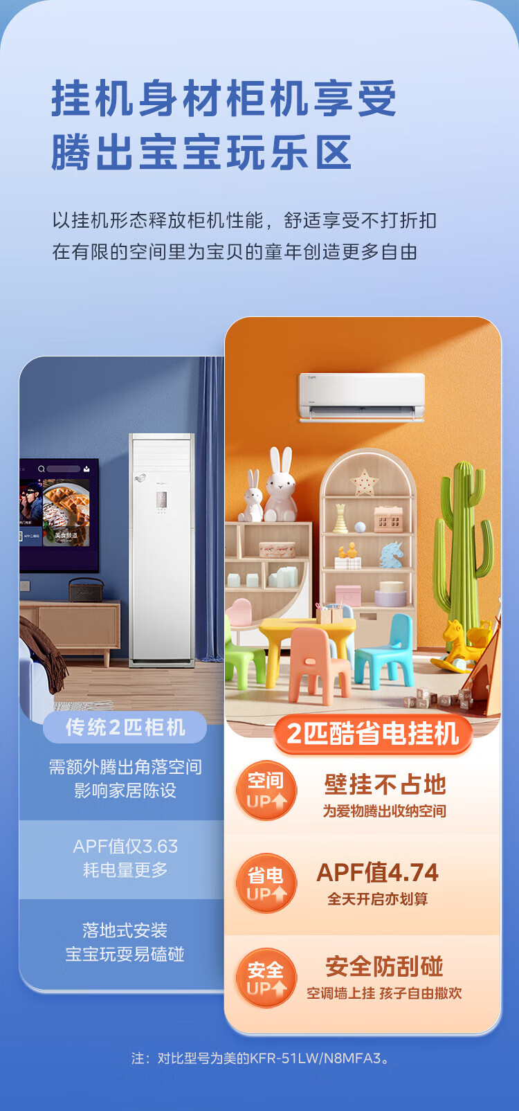 Midea Air Conditioner Cool Energy Saving 2 HP New Level Energy Efficiency Frequency Converter Cooling and Heating Large Bedroom 27 Quick Cooling and Heating Energy Saving Air Conditioner Hang-up State Subsidy KFR-46GW/N8KS1-1