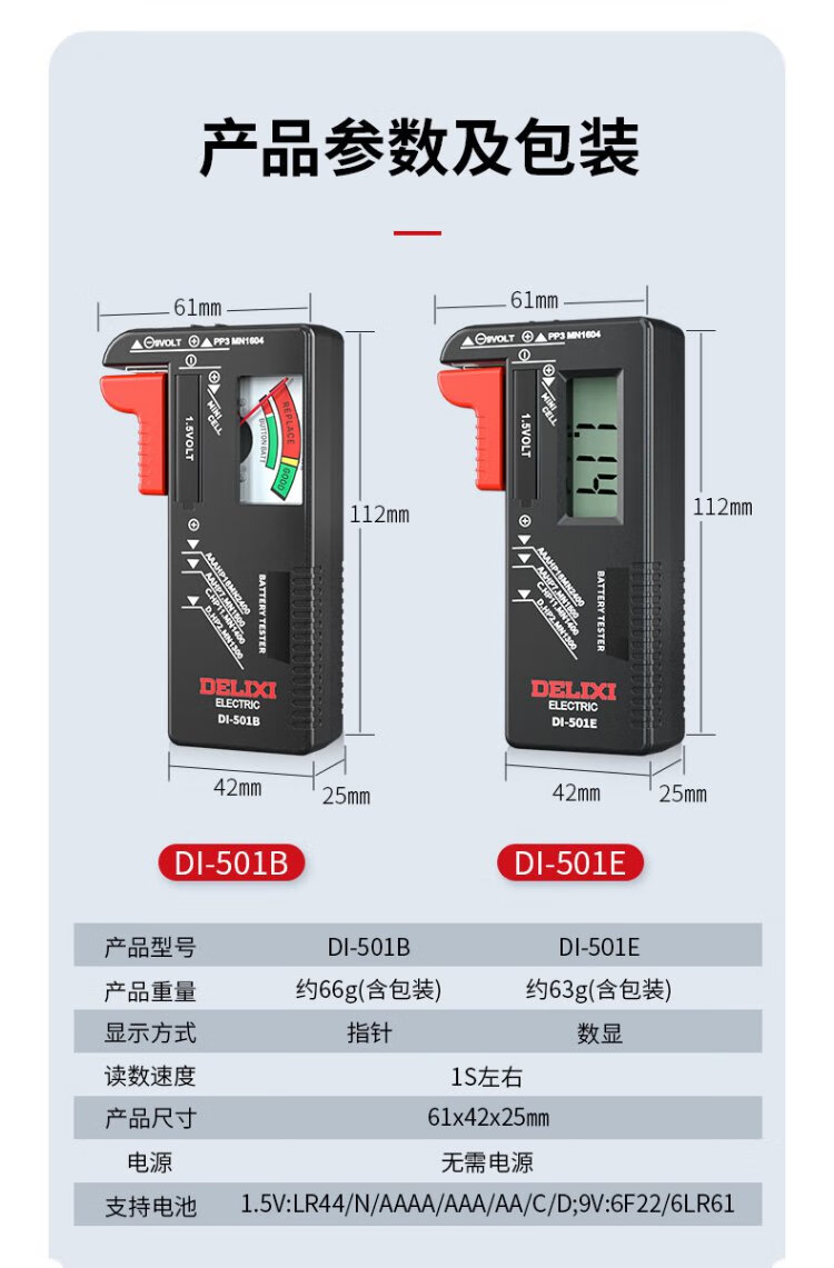 Delixi Electrical Battery Tester Battery Power Measurement Display Power Measurement Digital Display