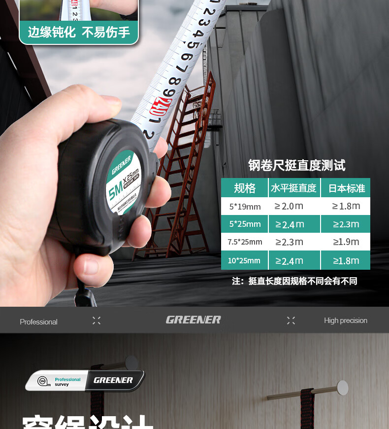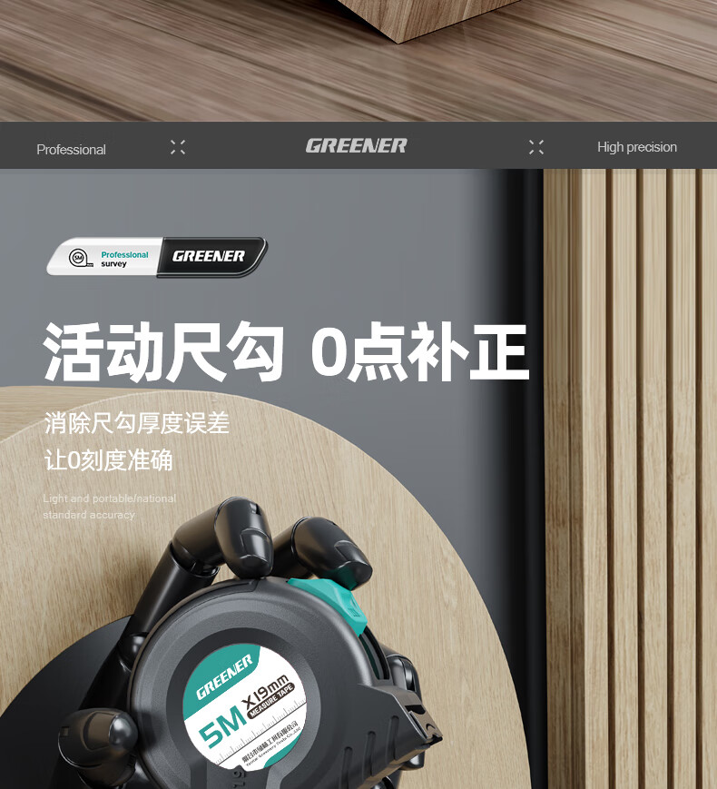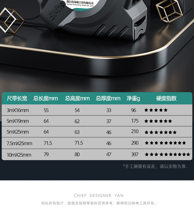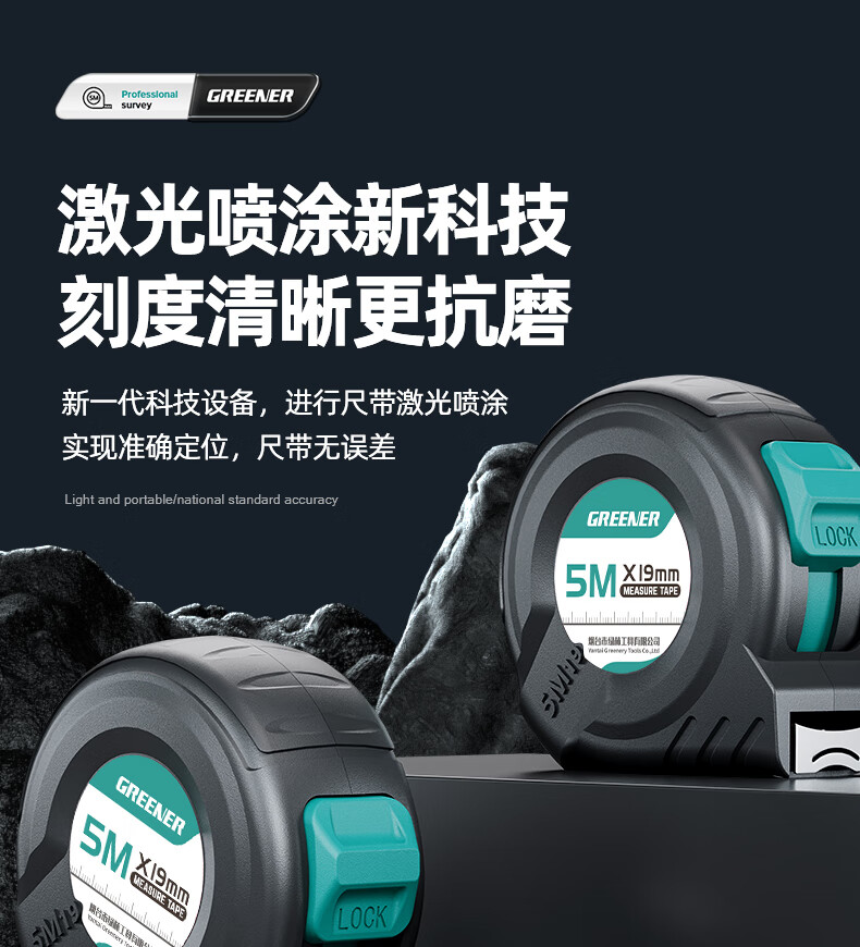Green forest steel tape measure thickened household tape measure meter box ruler high-precision ruler national standard II level accuracy 5 meters * 19mm