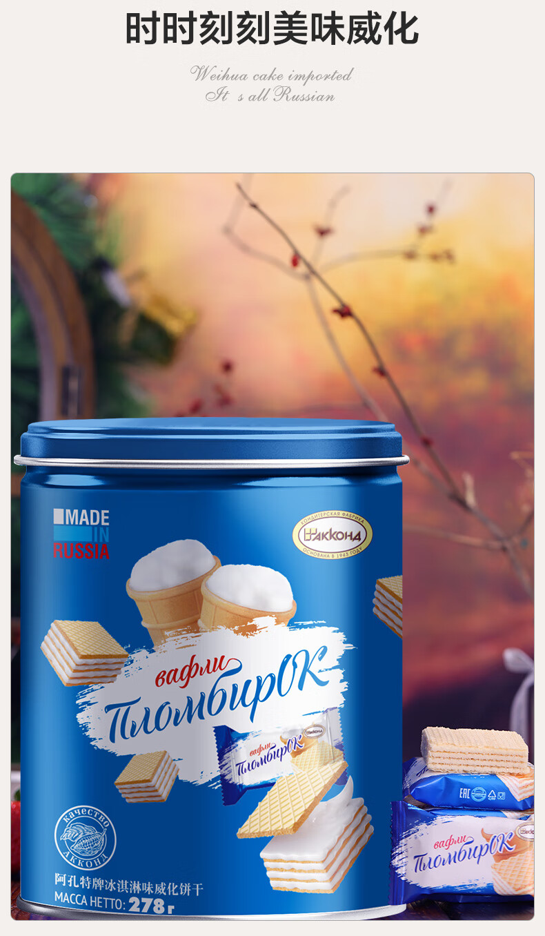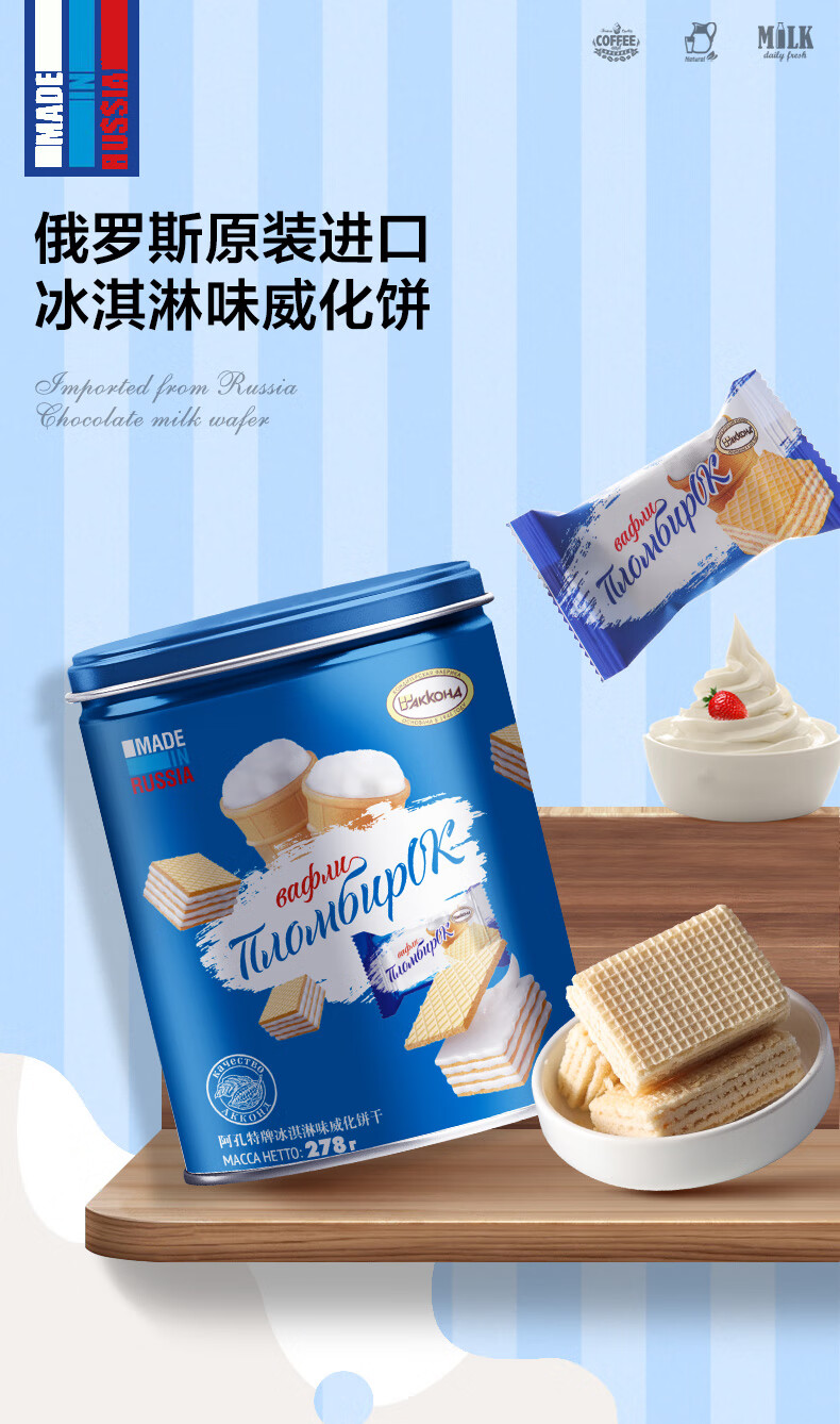 Akonte Russian ice cream wafer biscuits original imported snack food can 278g