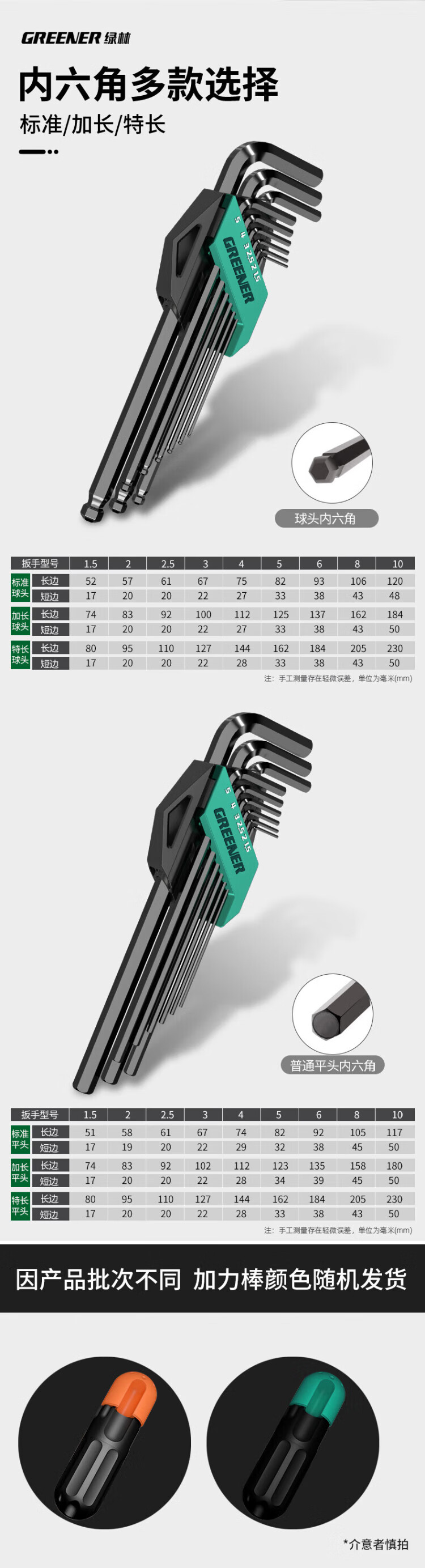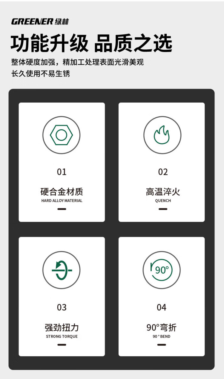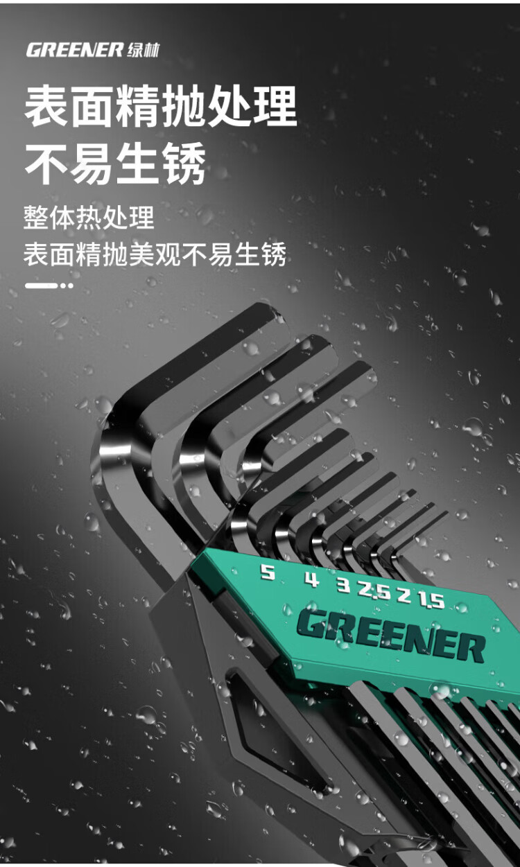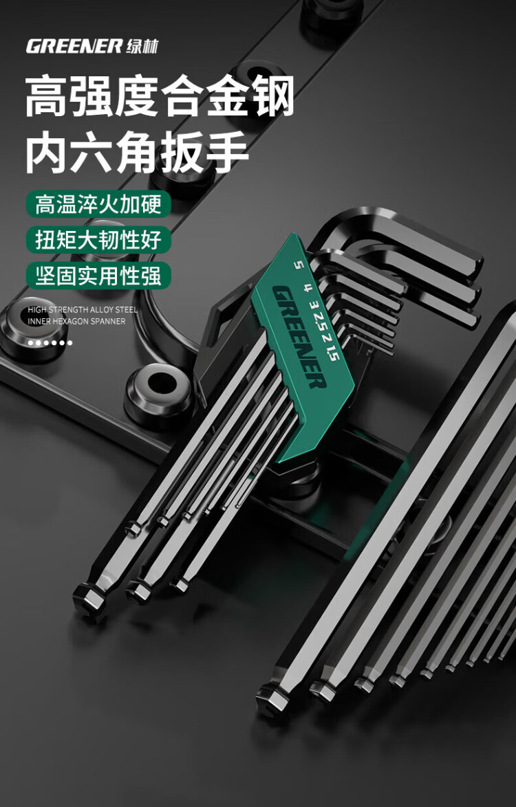 GREENER Hexagonal Wrench Household Set Automatic Combination Hexagonal Battleship Style 9-piece Set Blackened Extended-Ball