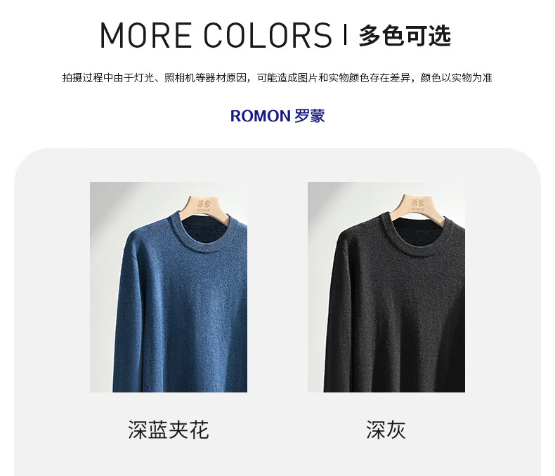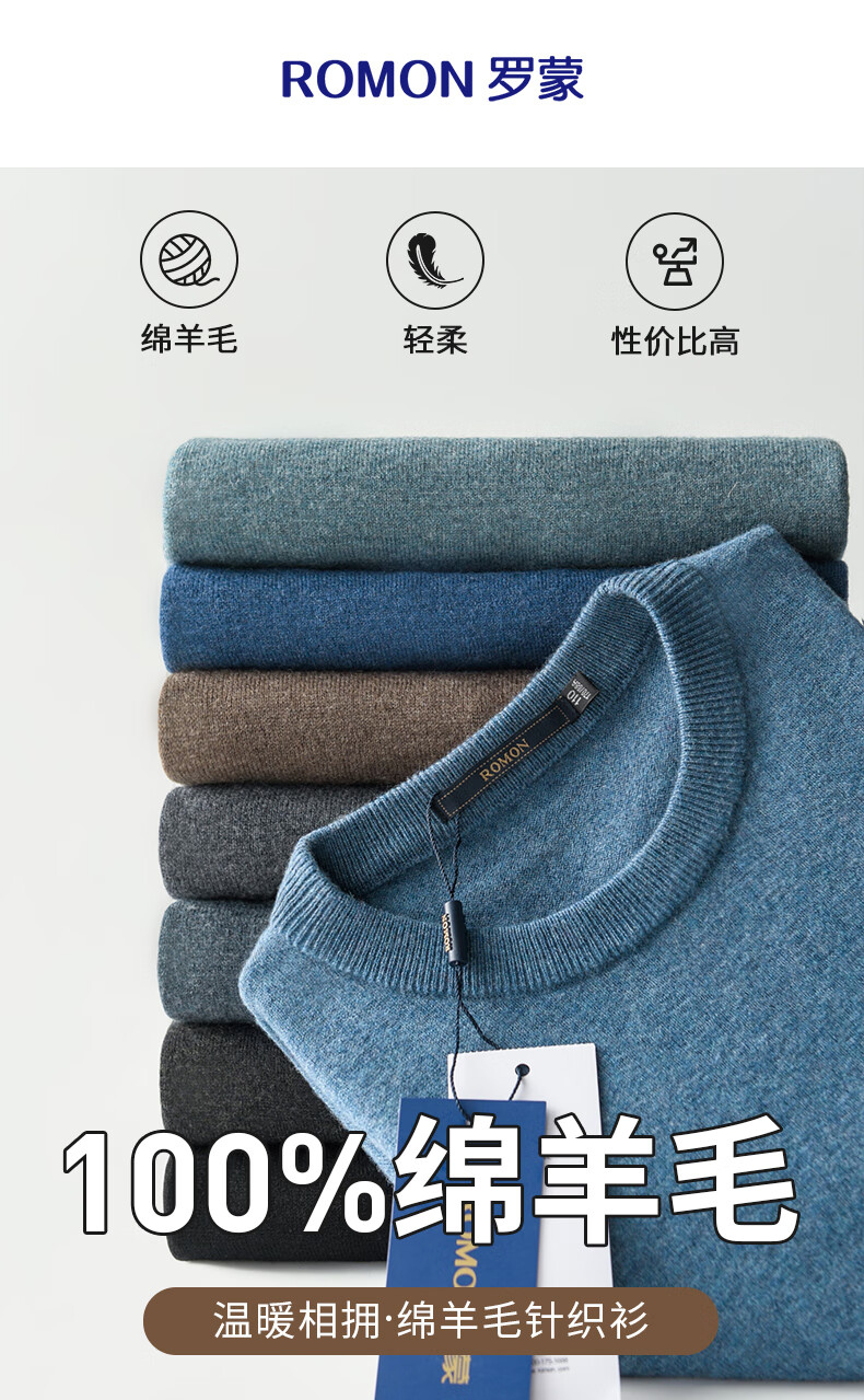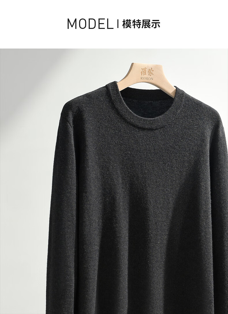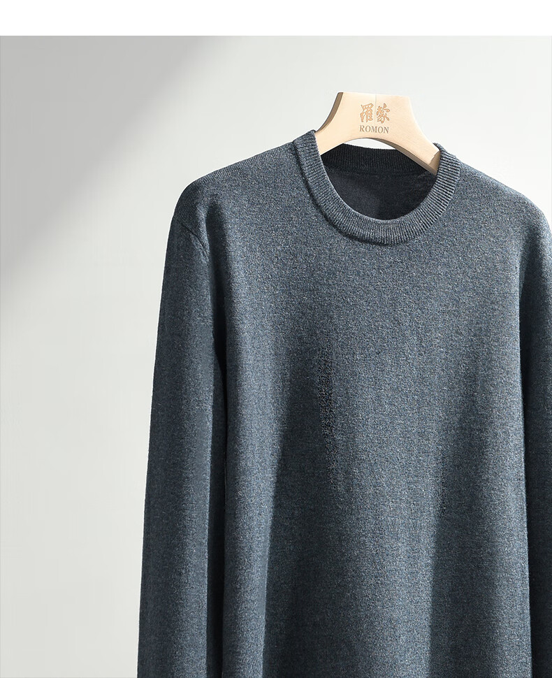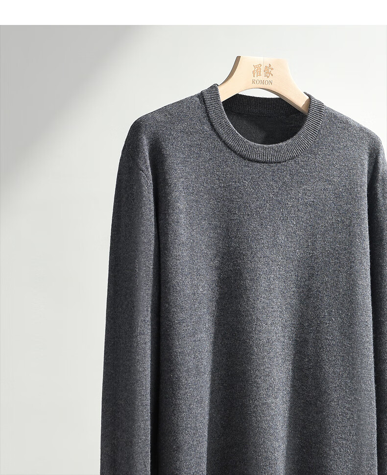 Romon 100 % Wolle reiner Wollpullover Herren Herbst und Winter Rundhalspullover Herren dünner Pullover Bottoming Pullover Herrenbekleidung