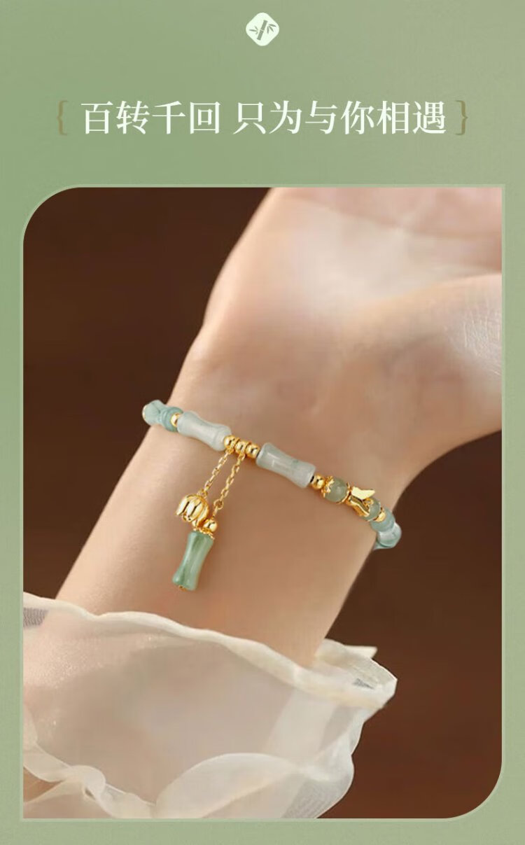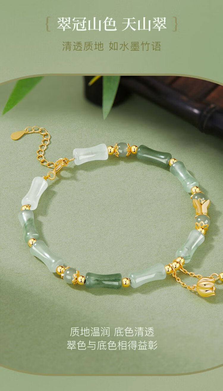 Zhen Shang Silver Chinese Gold Bamboo Hetian Jade S925 Silver Bracelet Women's Bracelet Birthday Gift Practical Jewelry for Girlfriend and Wife