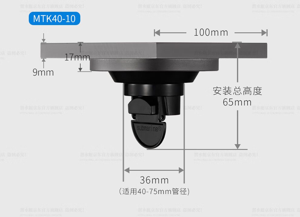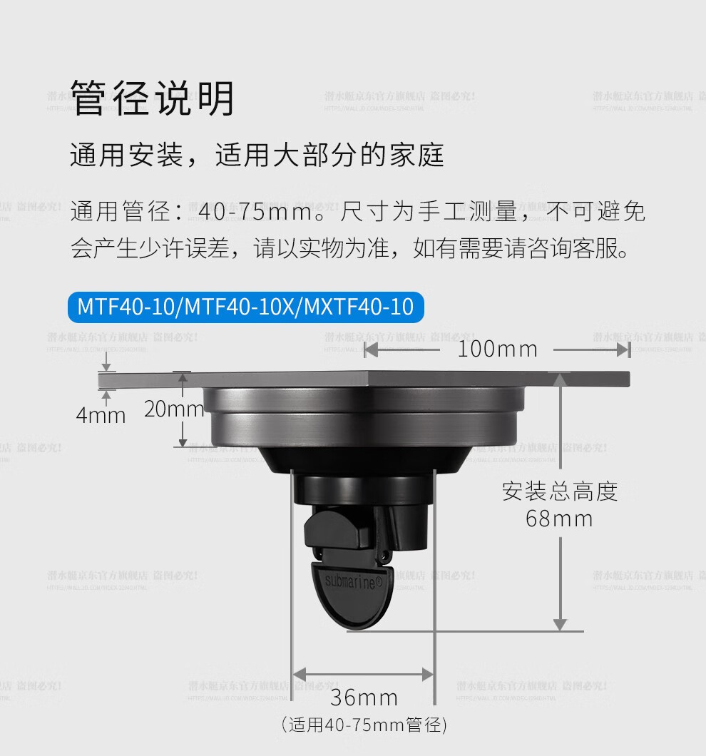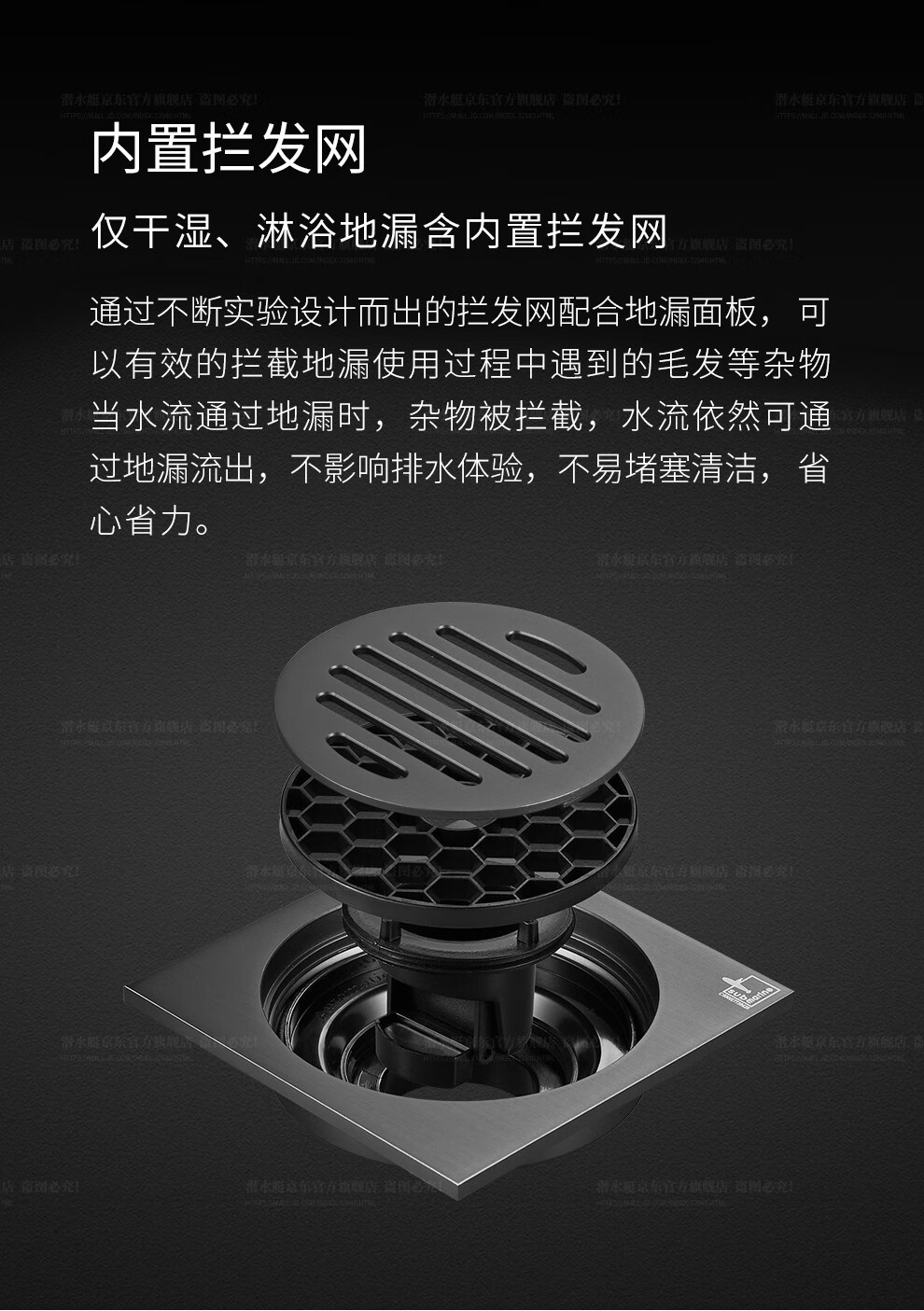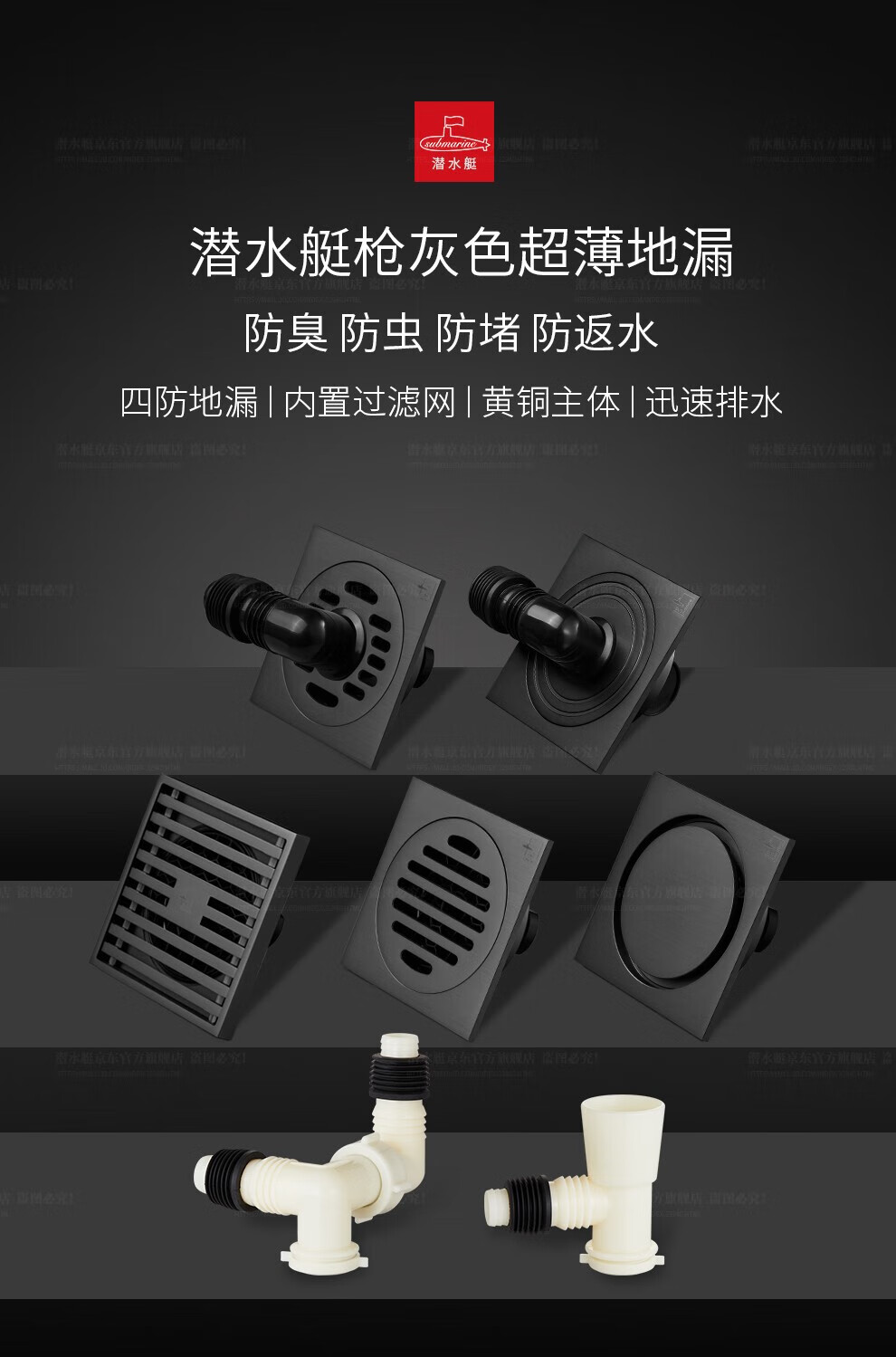 Submarine ultra-thin floor drain set gun gray anti-odor anti-return water floor drain 40 caliber 2 shower 2 dry