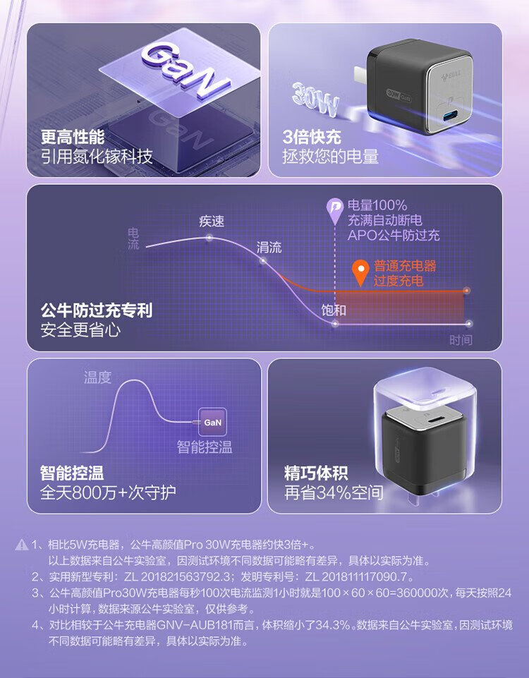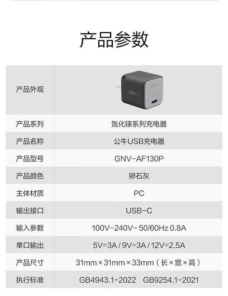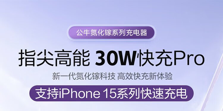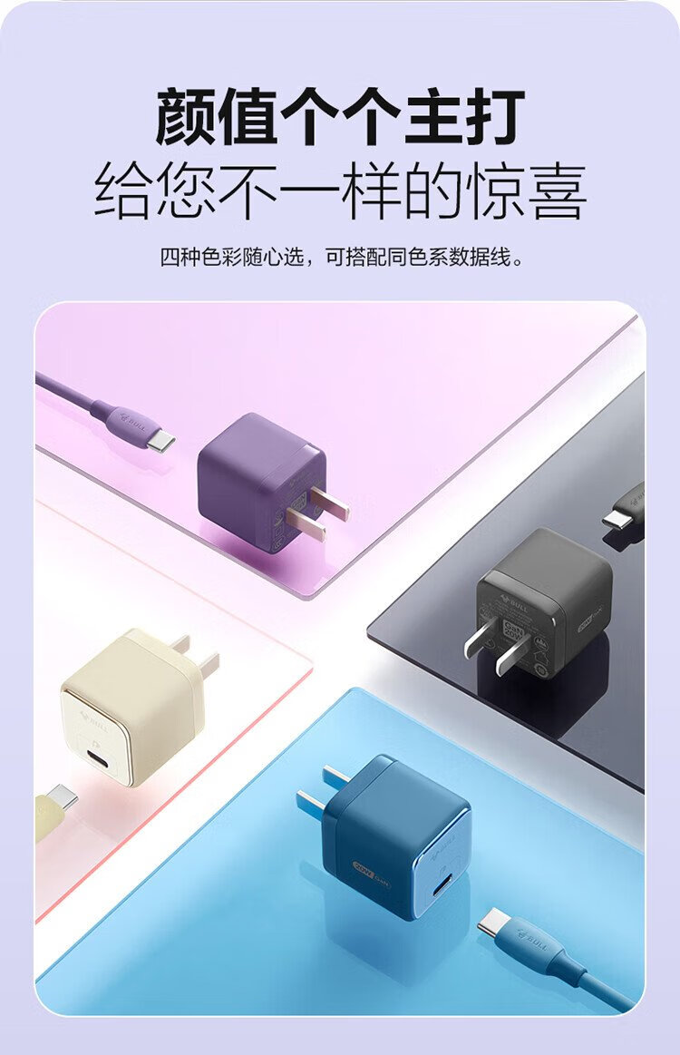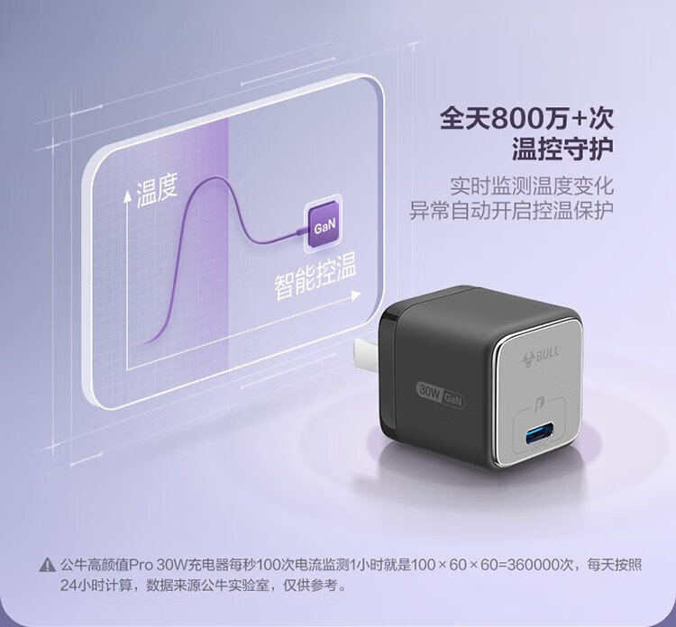 BULL gallium nitride 30W charger is compatible with 20W Apple 16PD fast charge, automatically powers off when fully charged, suitable for iPhone15-14/Huawei/Xiaomi and other mobile phones, pebble gray