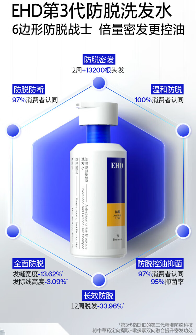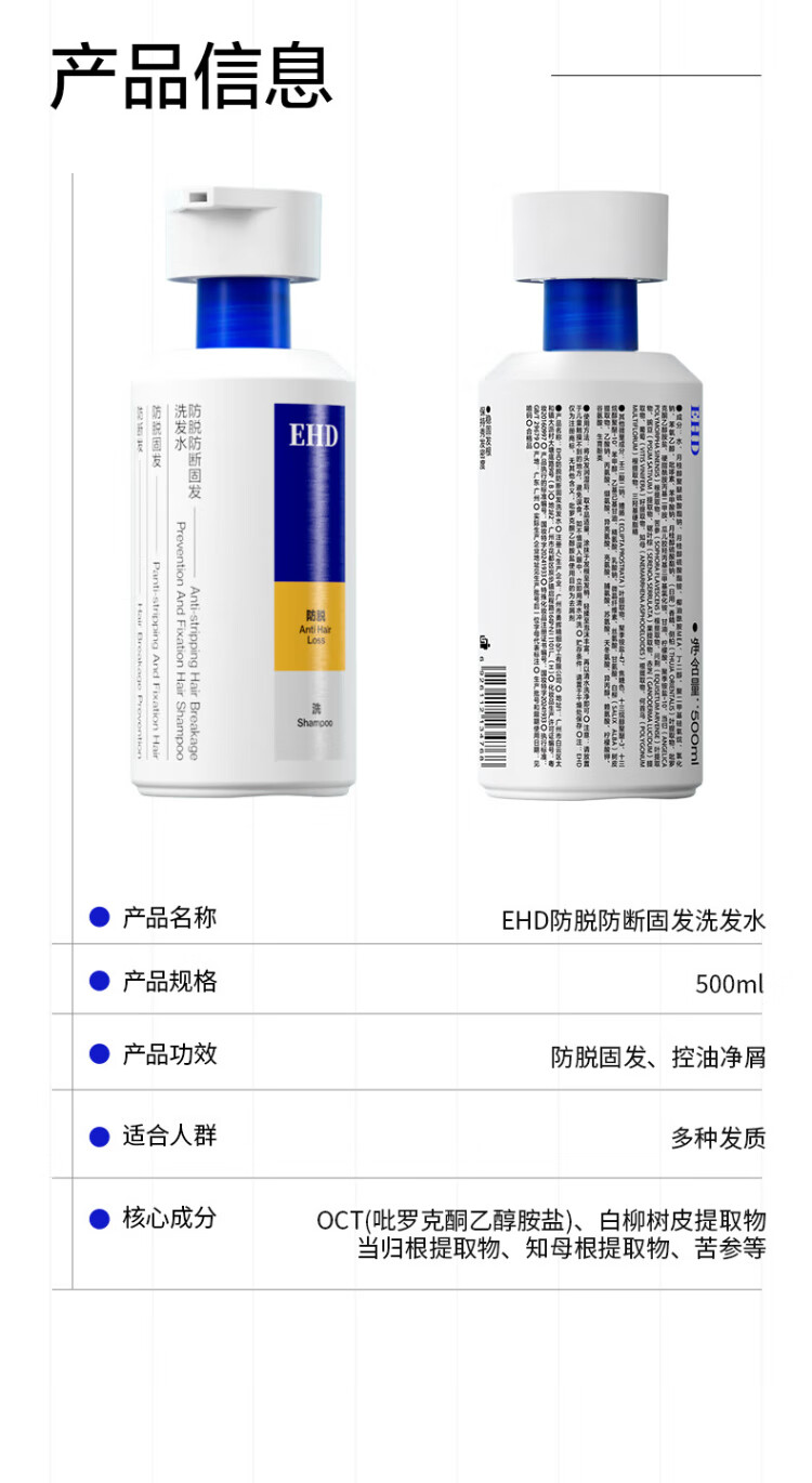 EHD anti-hair loss shampoo solid hair shampoo cream oil control fluffy anti-breakage shampoo firming shampoo anti-hair loss 500ml