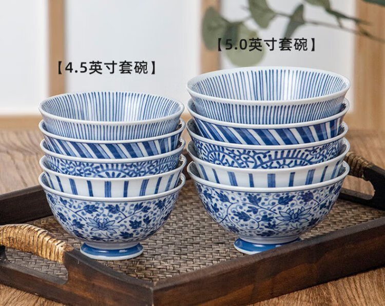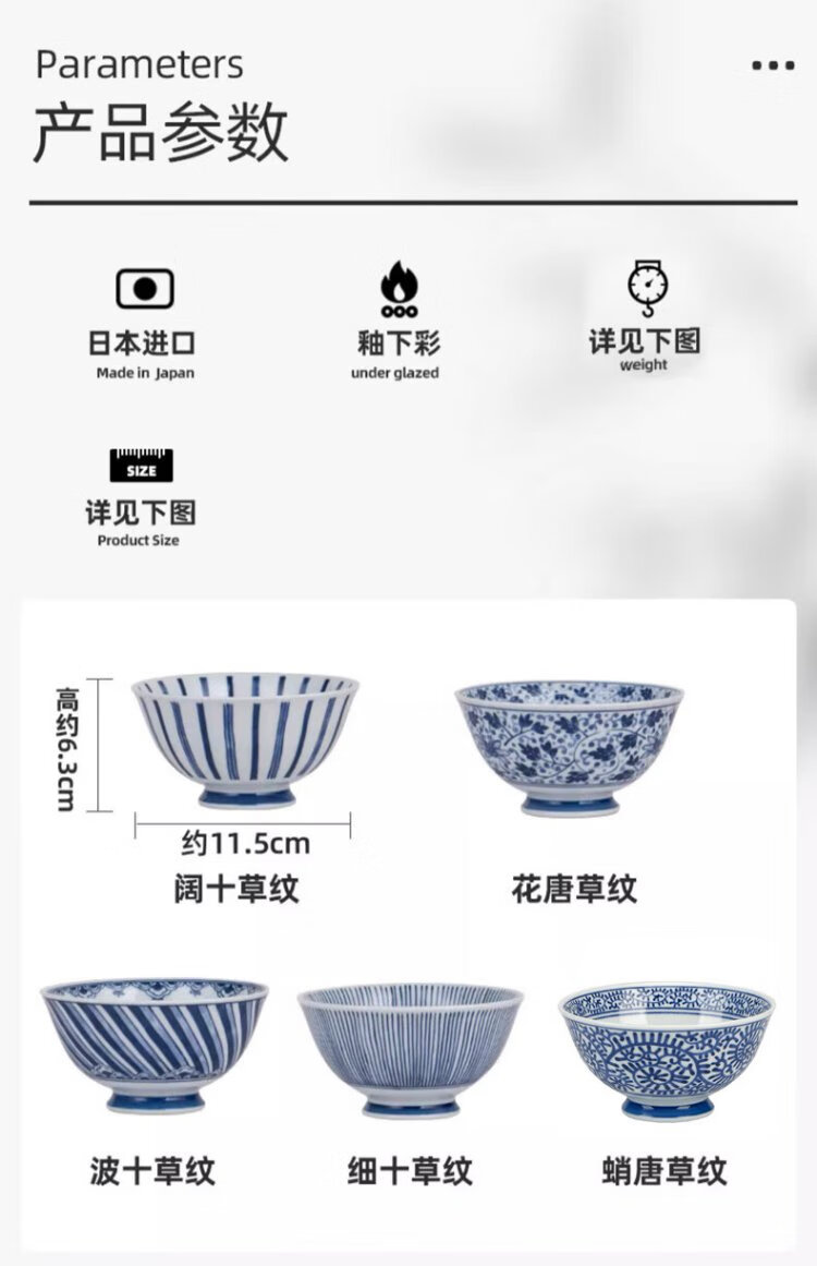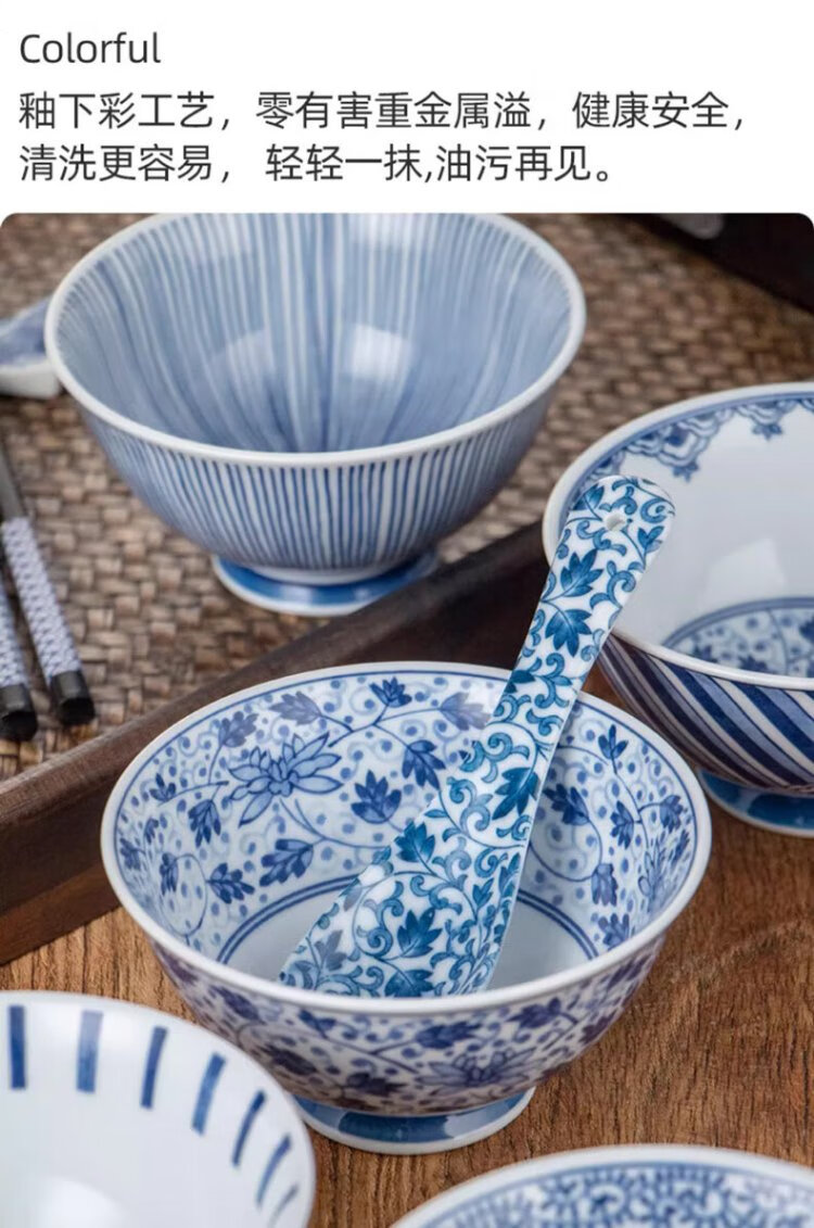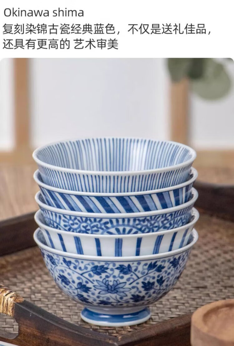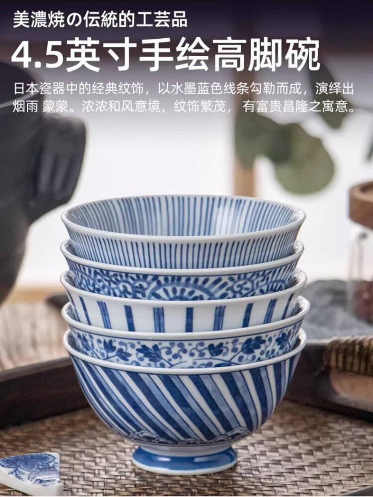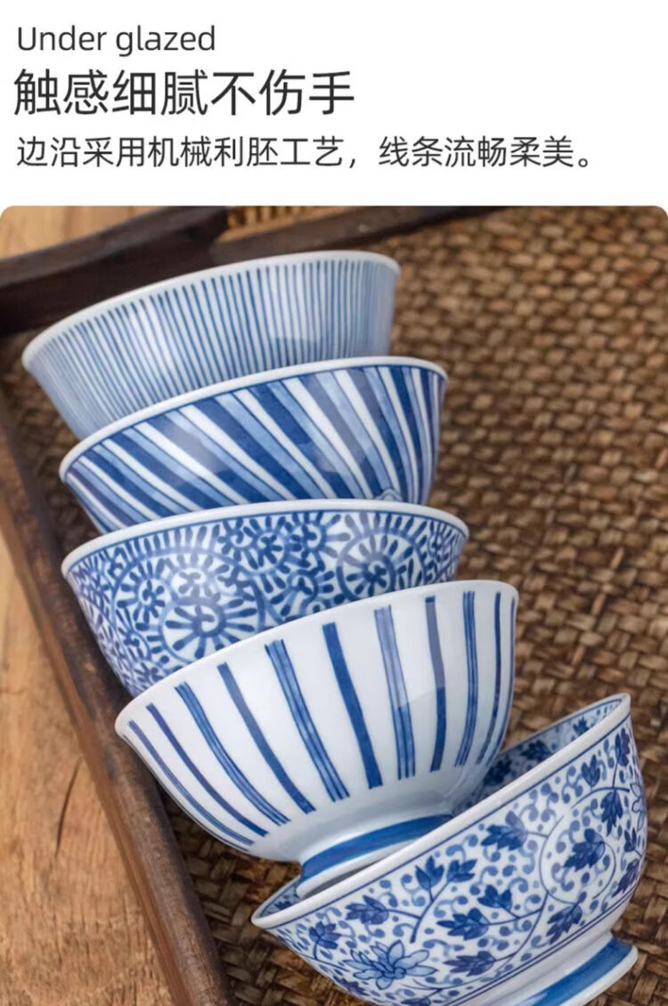 Mino Yaki Japan imported old original tableware ceramic bowl Japanese rice bowl household bowl set 4.5 inches 5-piece gift box