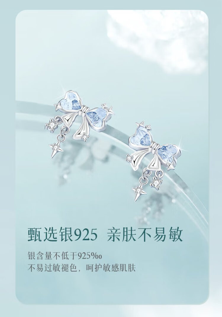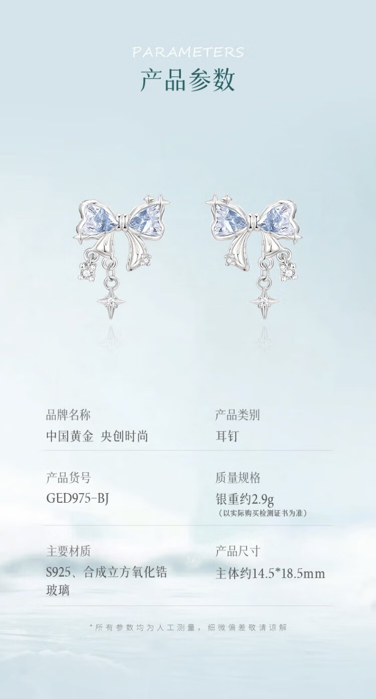 Central Chuang Fashion China Gold Authorized Silver Earrings for Women Earrings Birthday Gifts for Girls Light Luxury Niche High-end Girlfriends and Best Friends