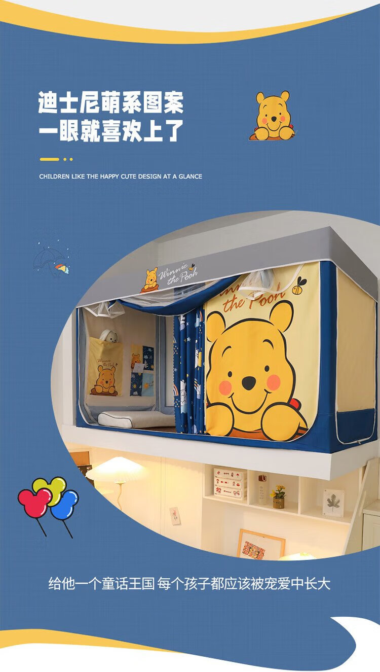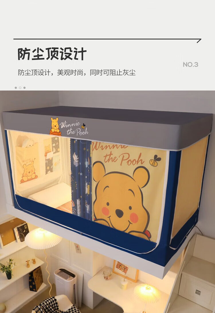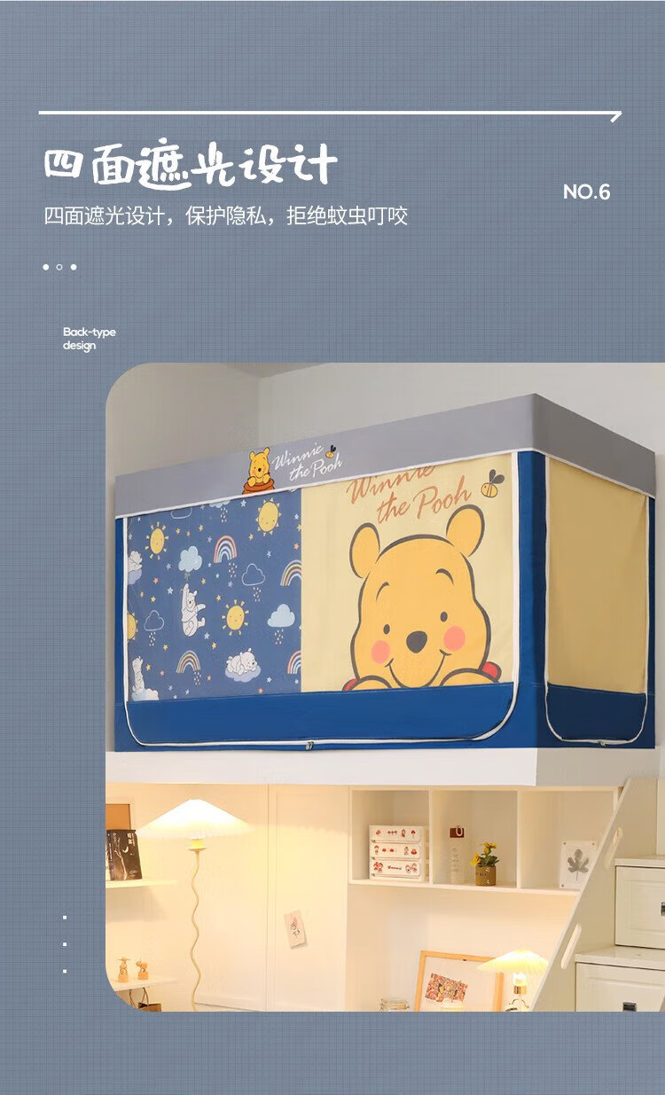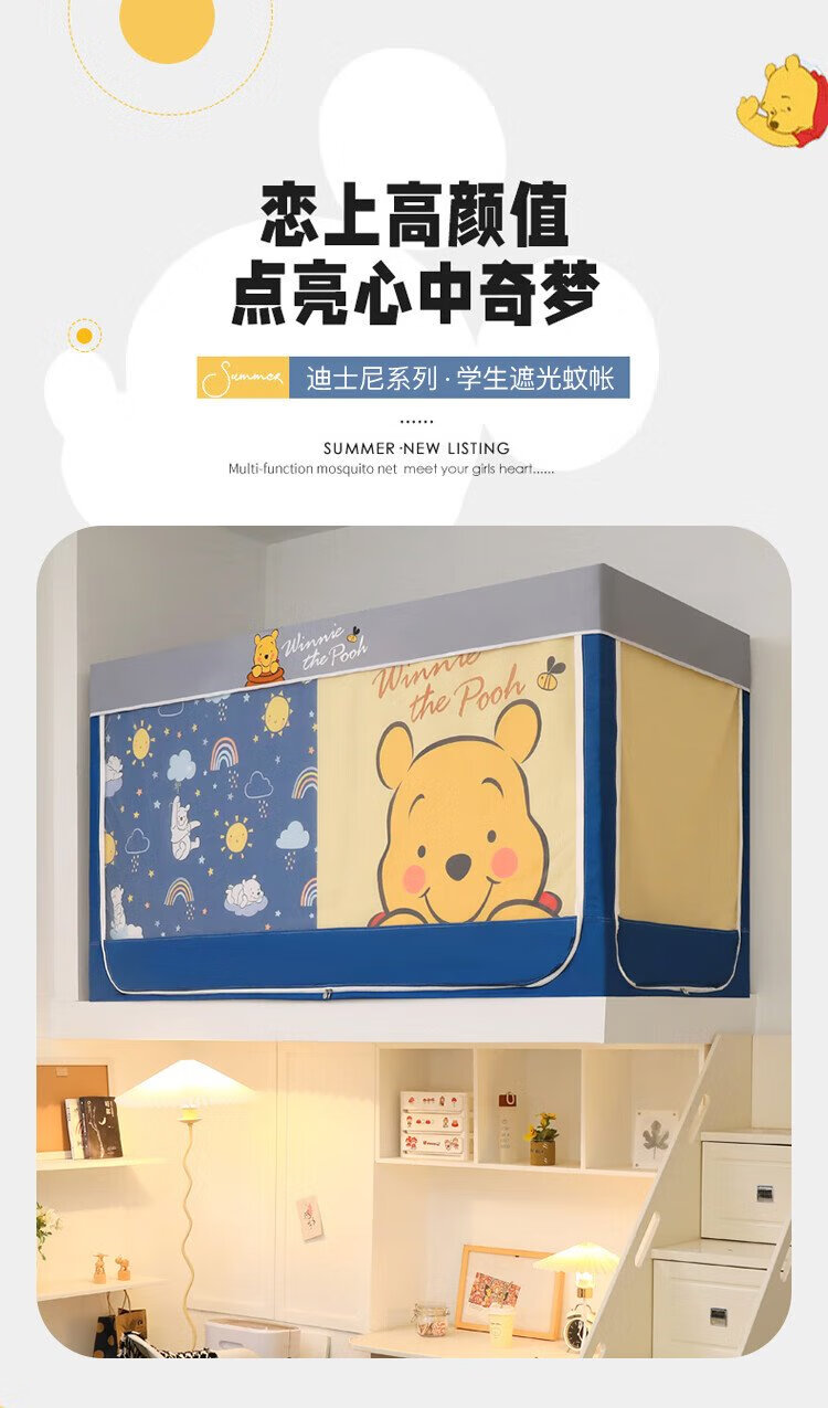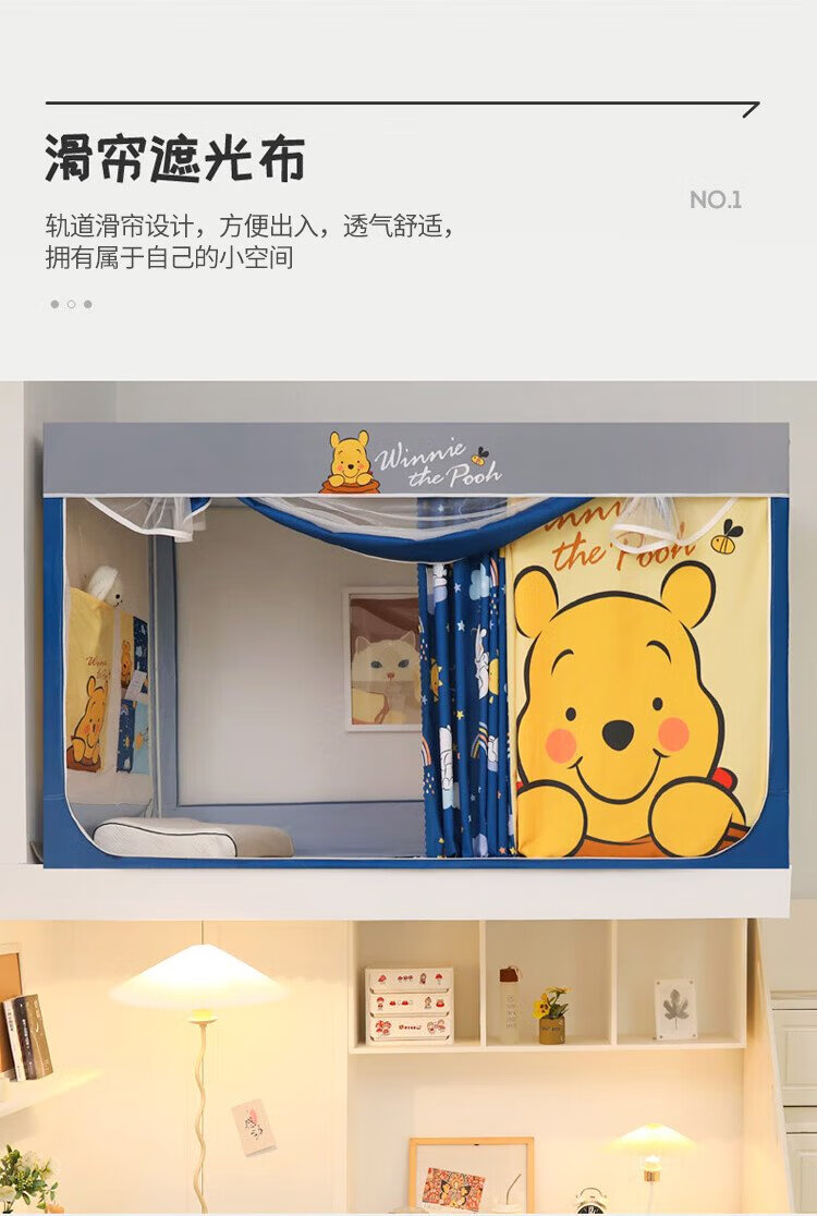 Disney Mosquito Net Dormitory Student Lower Bunk Bed Curtain Strong Blackout Privacy All-In-One 0.9 Meter Single Bunk College Student Dormitory Bed Curtain Dustproof Bear