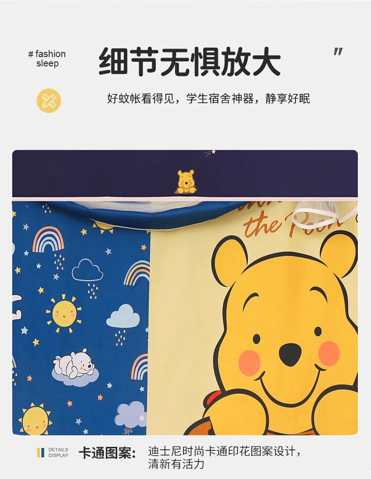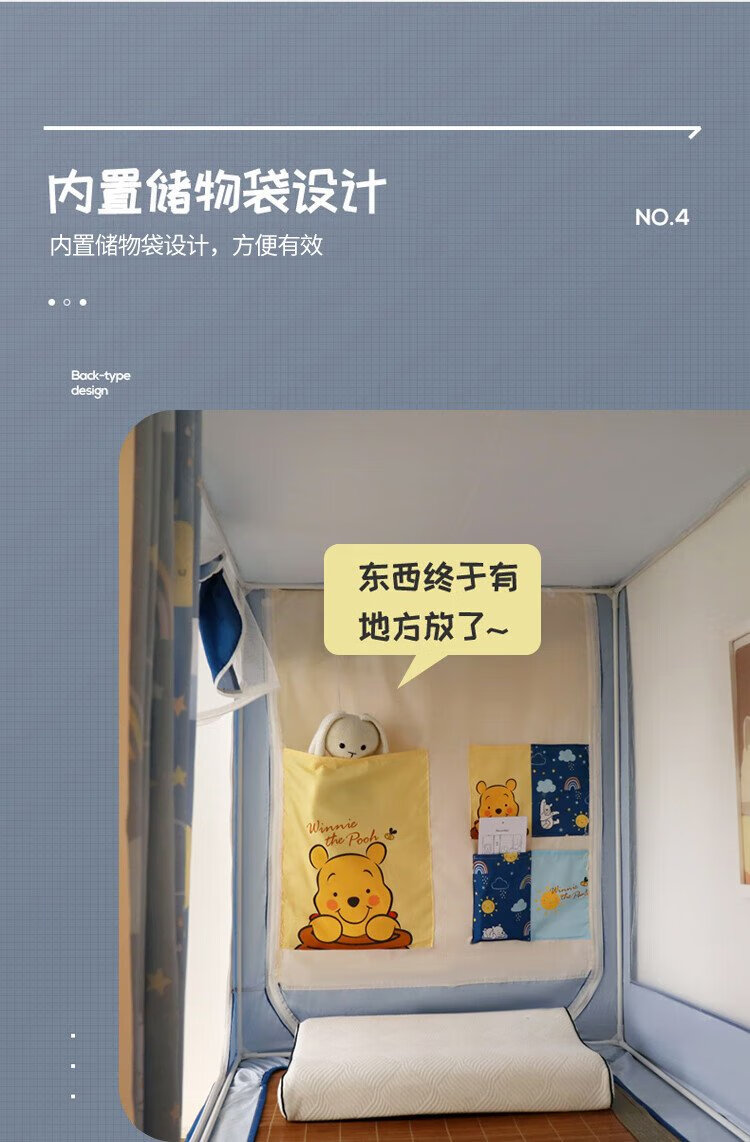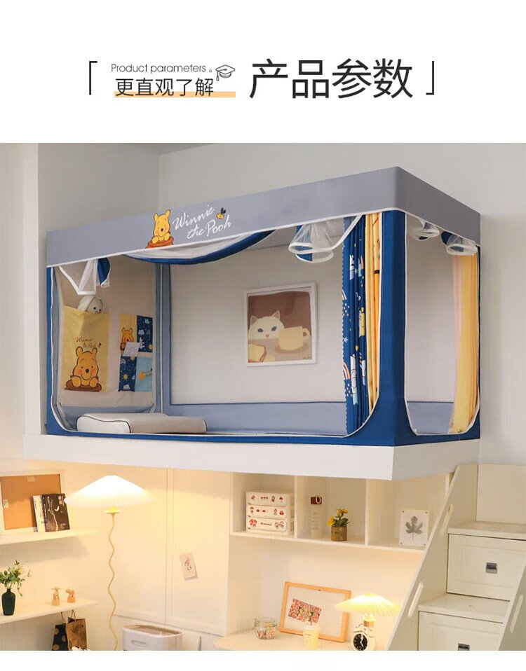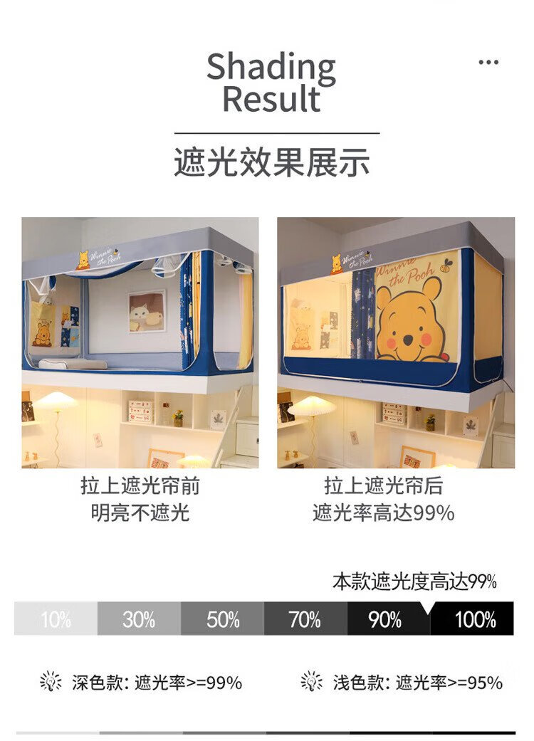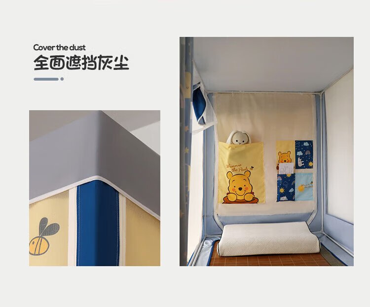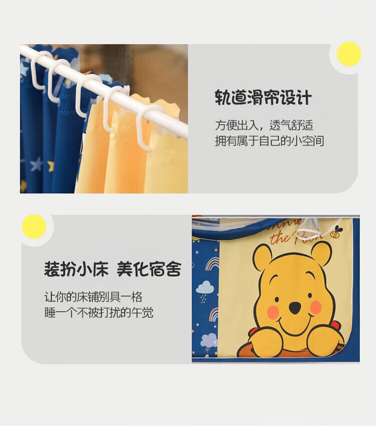 Disney Mosquito Net Dormitory Student Lower Bunk Bed Curtain Strong Blackout Privacy All-In-One 0.9 Meter Single Bunk College Student Dormitory Bed Curtain Dustproof Bear