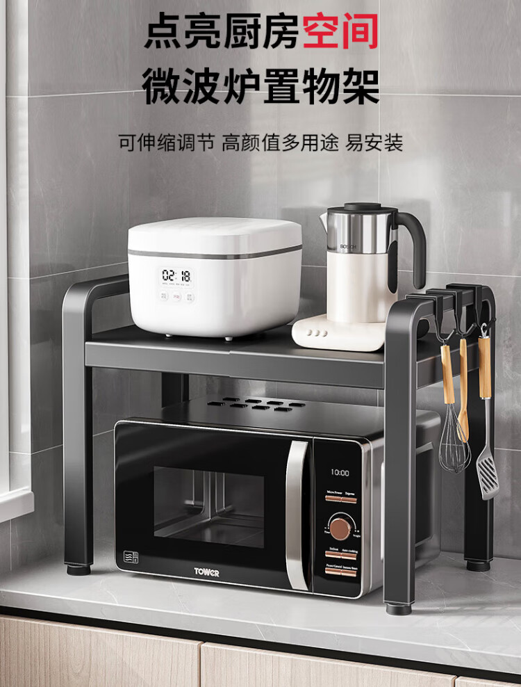 Kitchen Story Kitchen Storage Rack Countertop Microwave Oven Rack Retractable Oven Rack Home Multi-Layer Kitchen Storage Rack