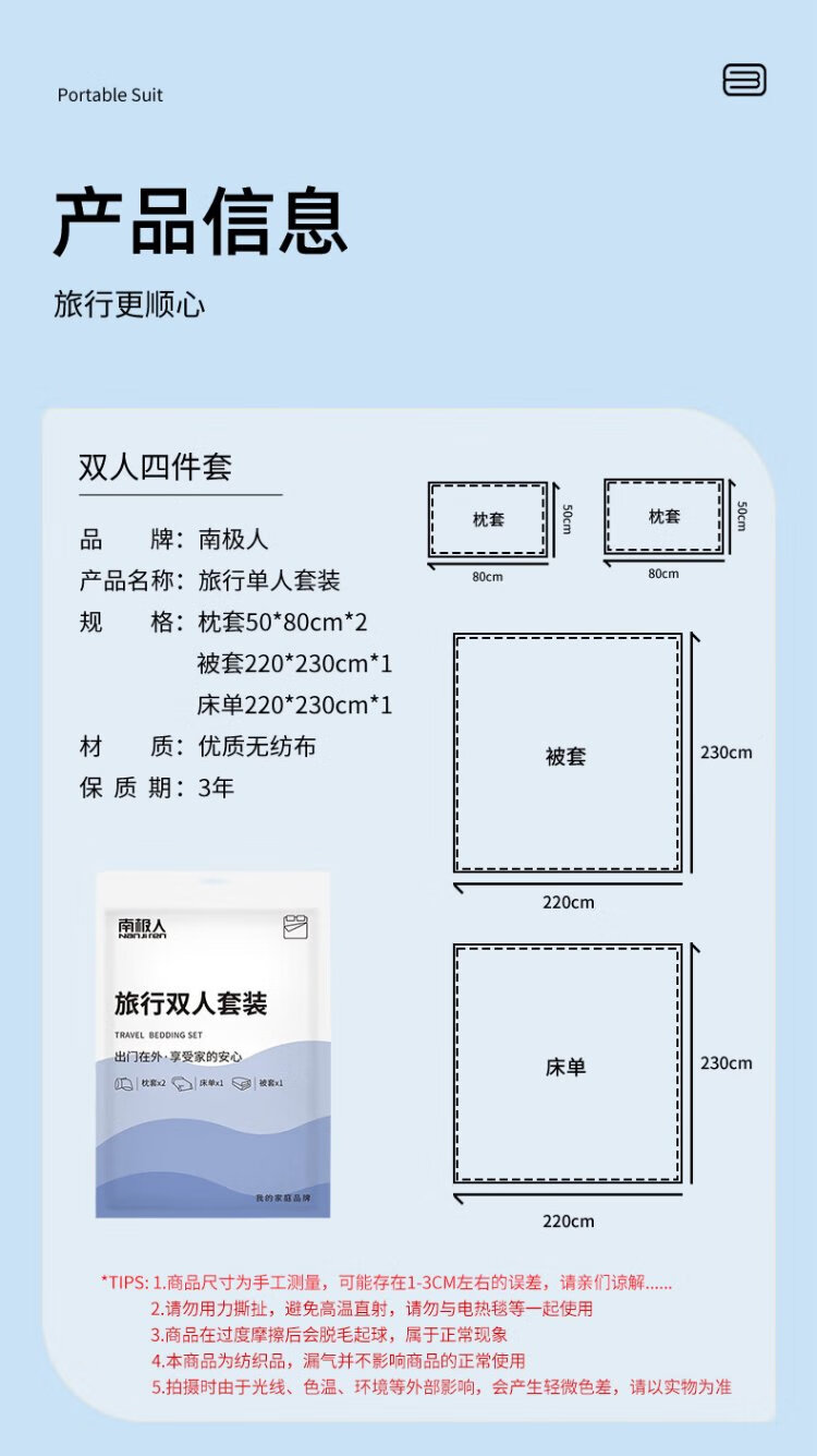 Nanjiren travel disposable quilt cover, sheet cover, pillowcase thickening set, hotel bedding double set, four-piece set