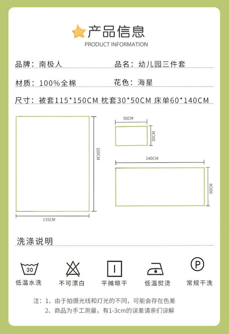 Nanjiren (Nanjiren) Kindergarten Quilt Three-piece Infant Child Kit Pillowcase Quilt Cover Mattress Cover Back to School Bedding