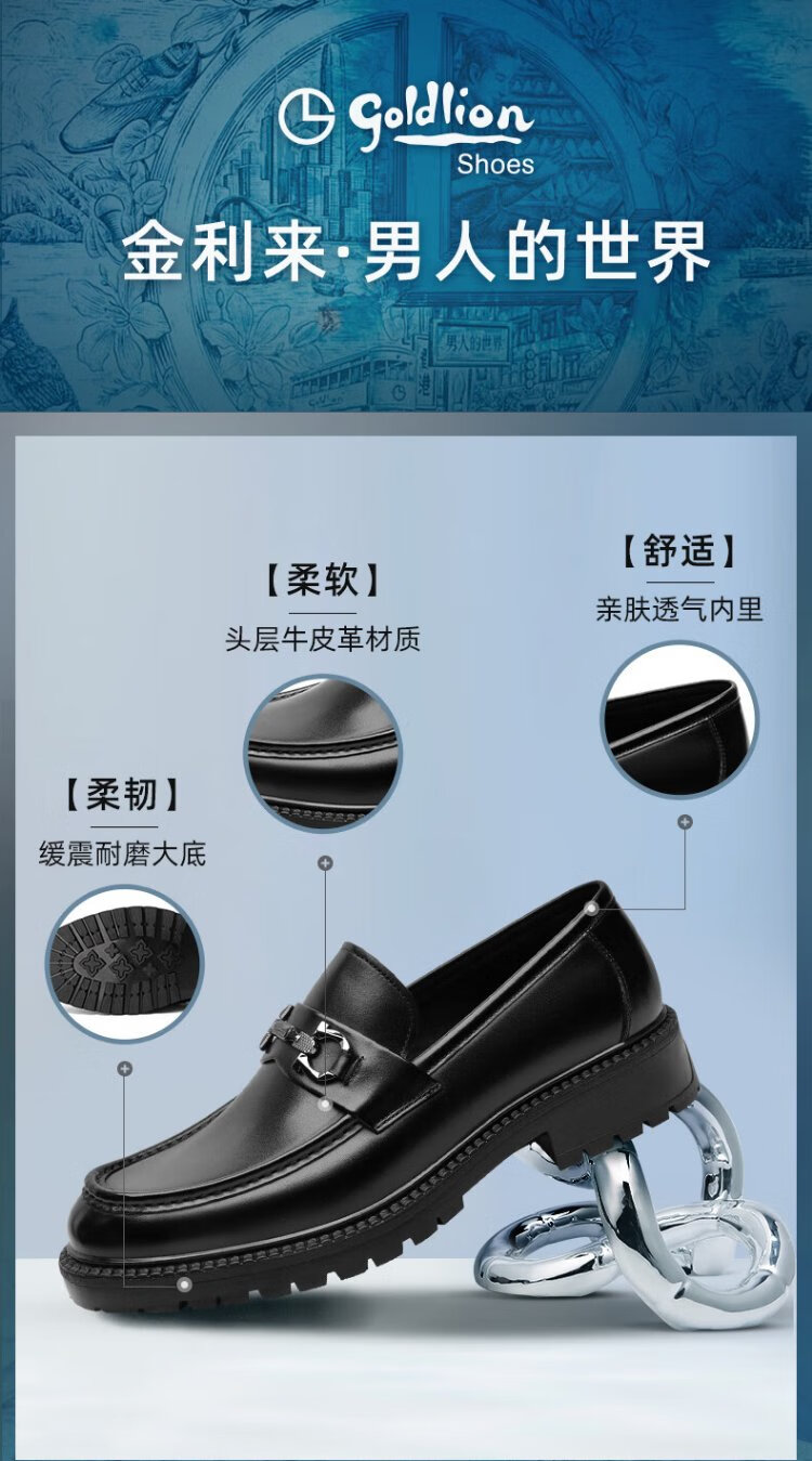 Goldlion Men's Shoes Loafers Fashion Personalized Leather Shoes Comfortable Set-Toe Business Casual Shoes G550330512AAA Black 40