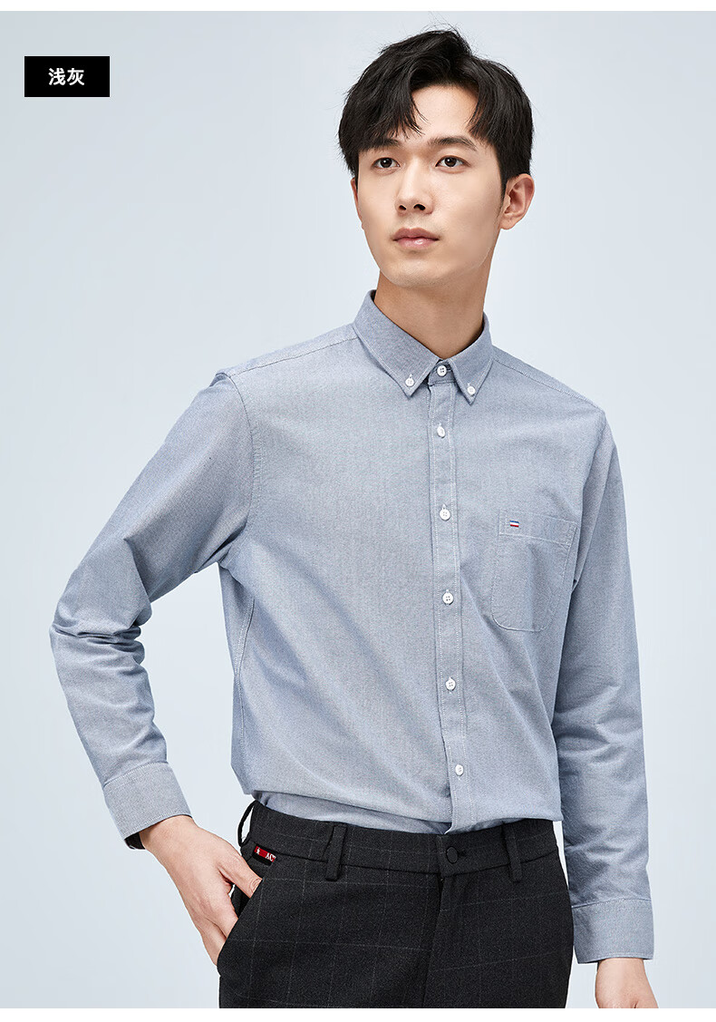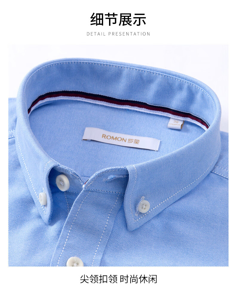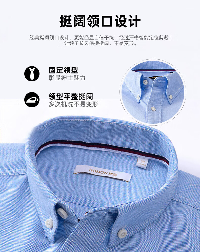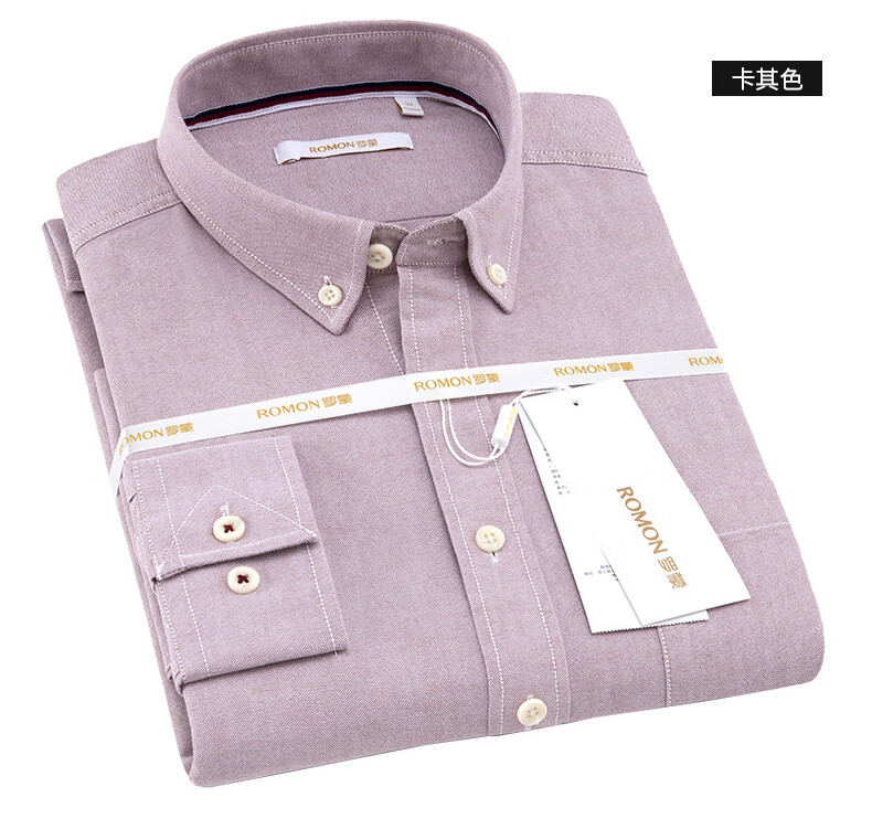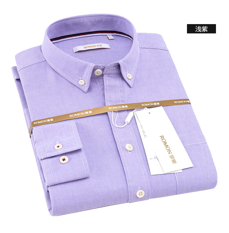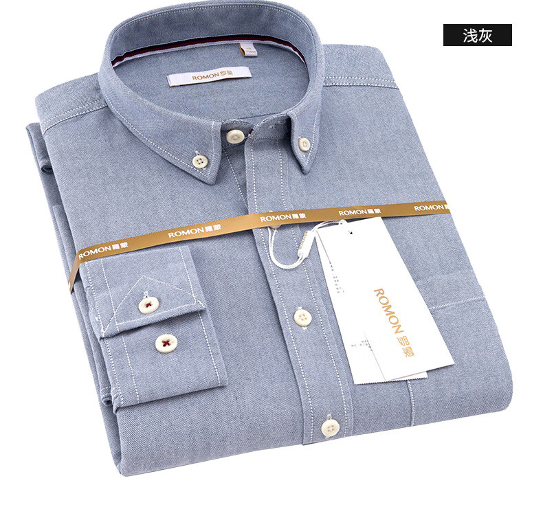 罗蒙(ROMON)纯棉牛津纺长袖衬衫男春秋中青年时尚职业工装衬衣1085灰色42