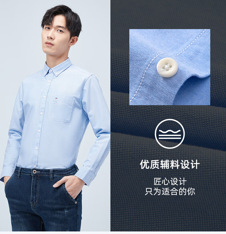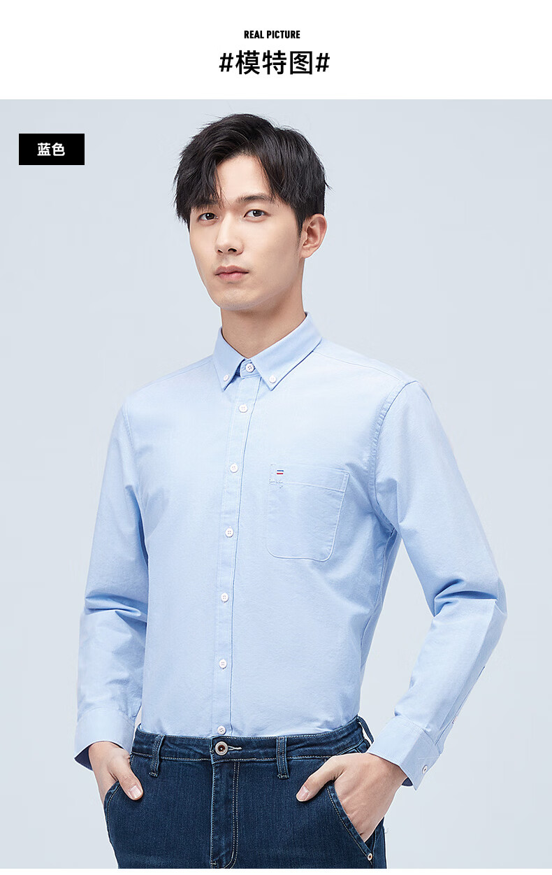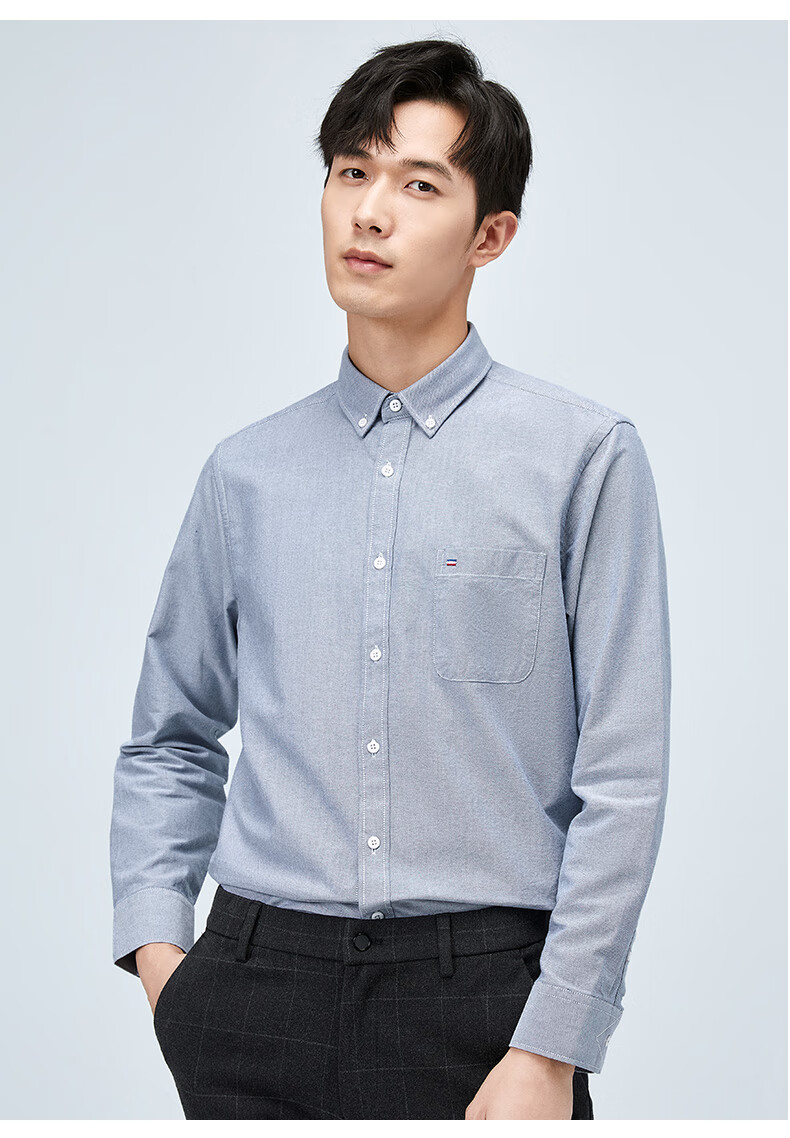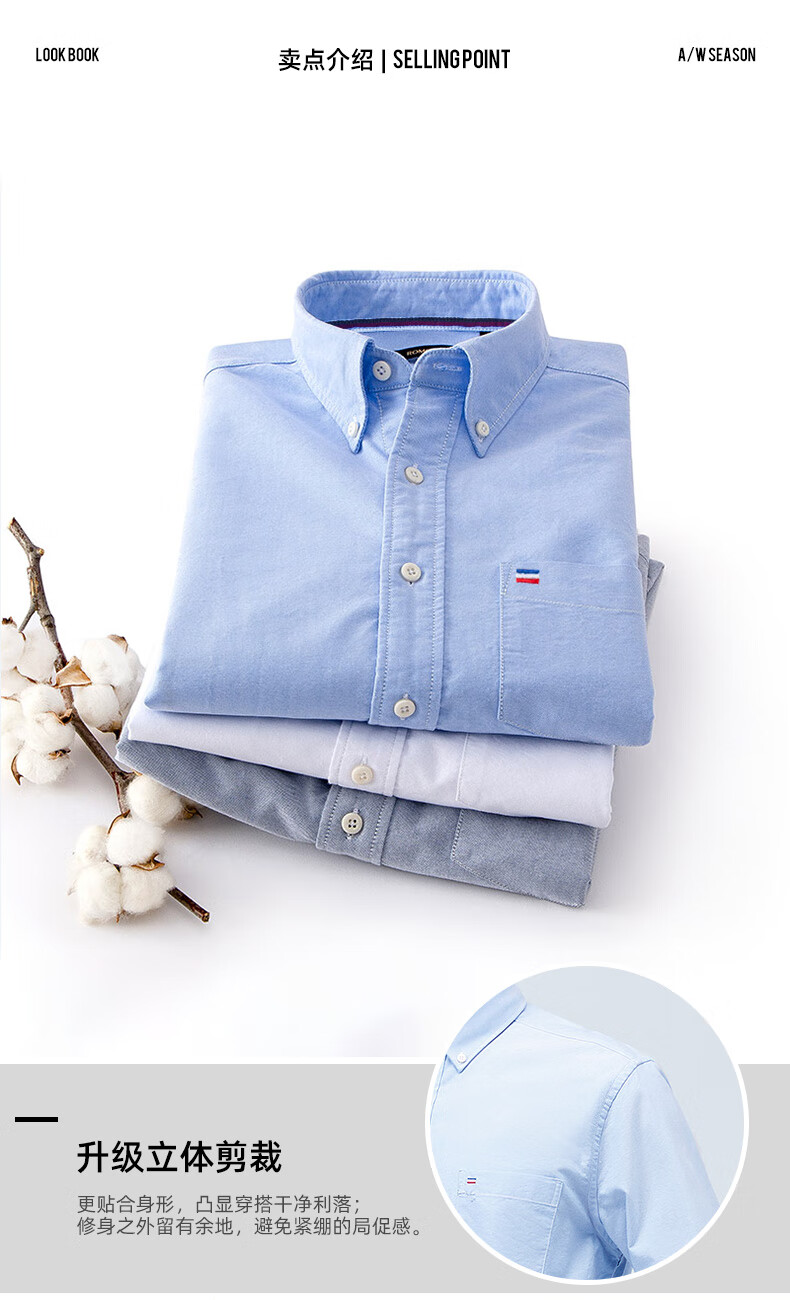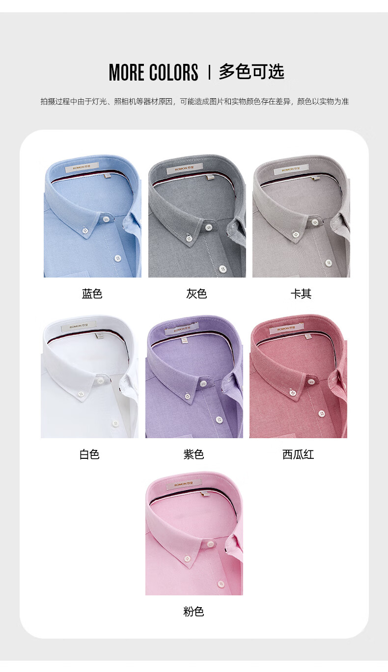 罗蒙(ROMON)纯棉牛津纺长袖衬衫男春秋中青年时尚职业工装衬衣1085灰色42
