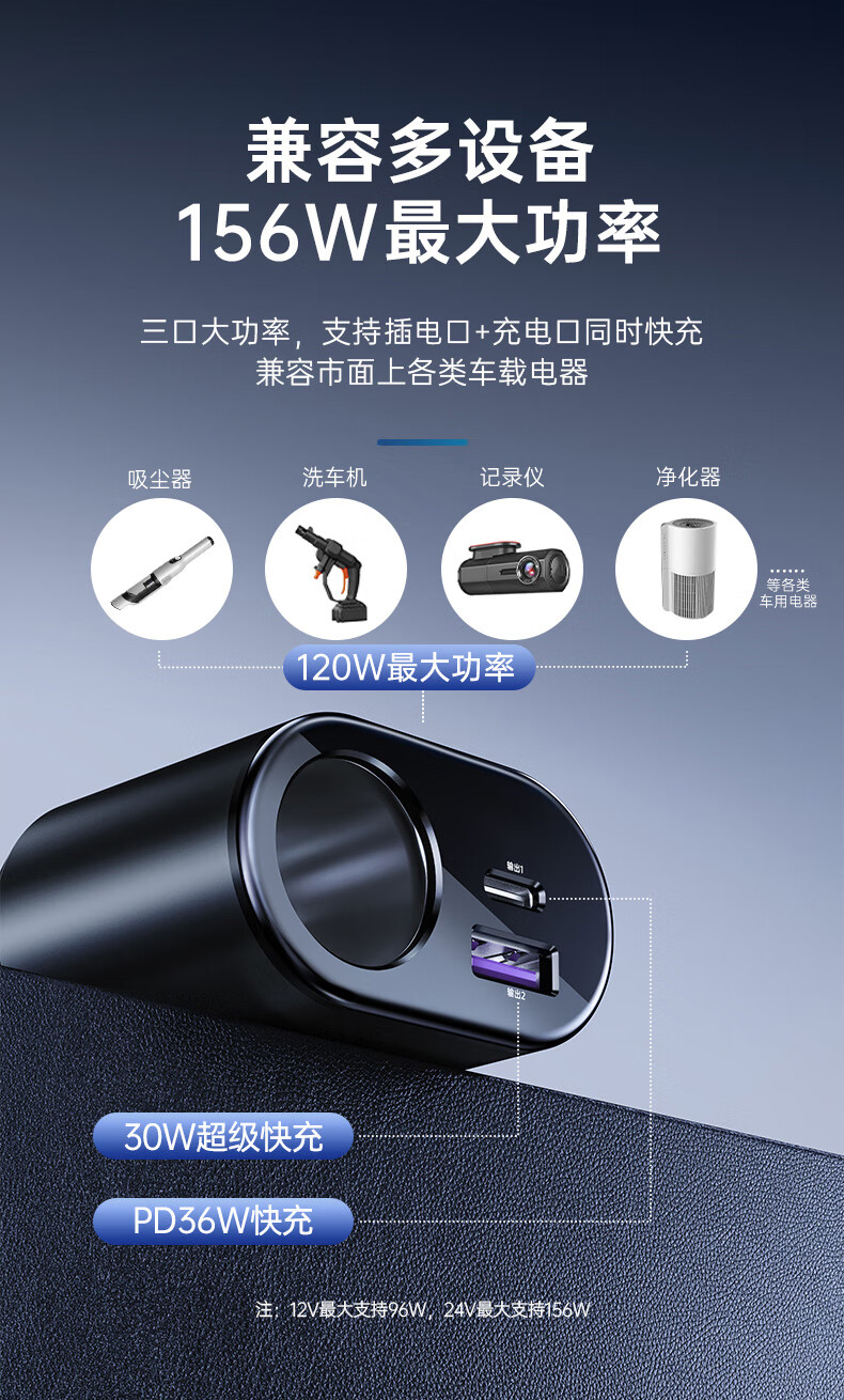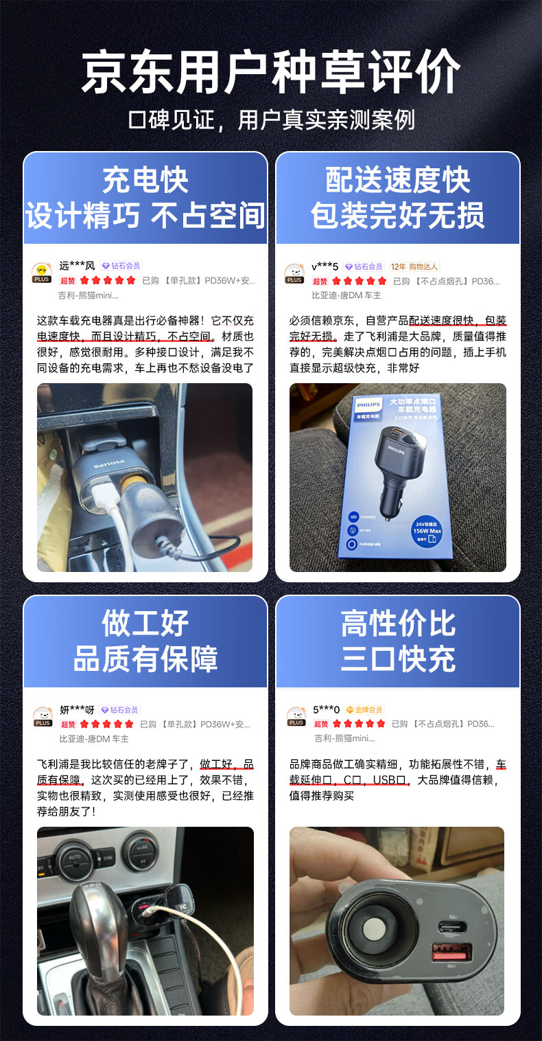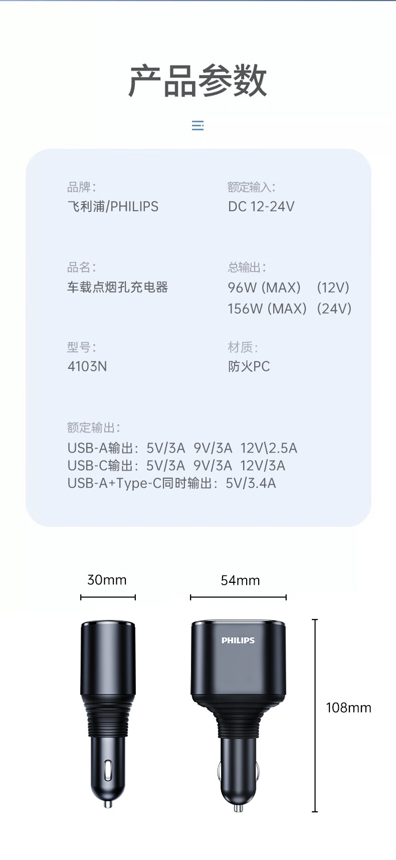 Philips car charger cigarette lighter car charger super fast charge one to two/three multi-function fast charging head suitable for Huawei Apple 17/16 car extended cigarette lighter port converter 4103