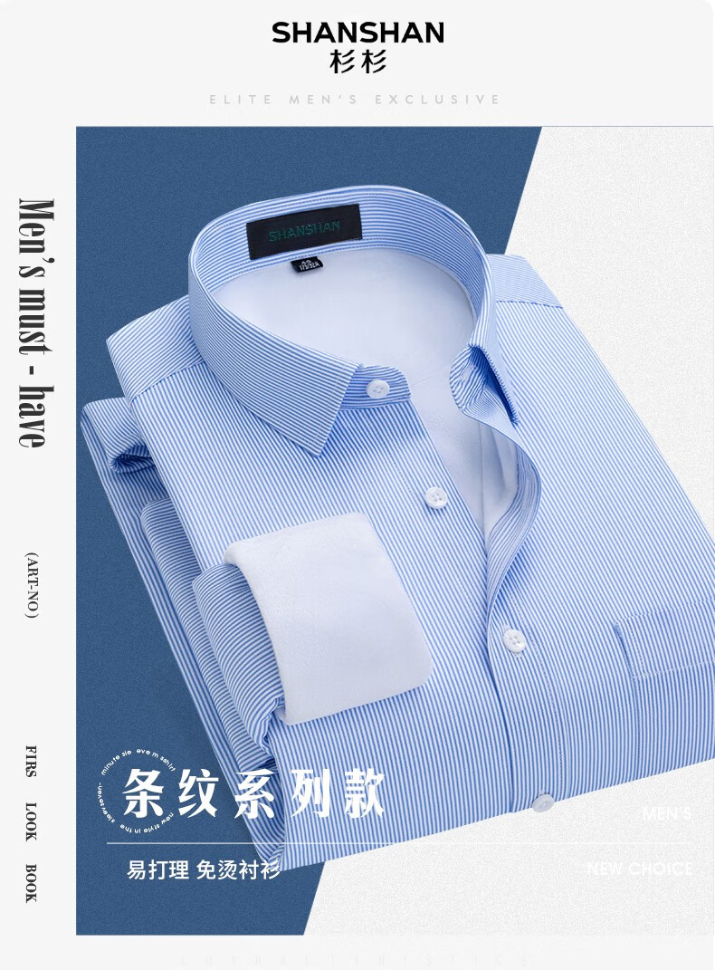 SHANSHAN Shanshan 50-count long-sleeved shirt men's autumn and winter velvet thickened shirt men's business casual dad wear
