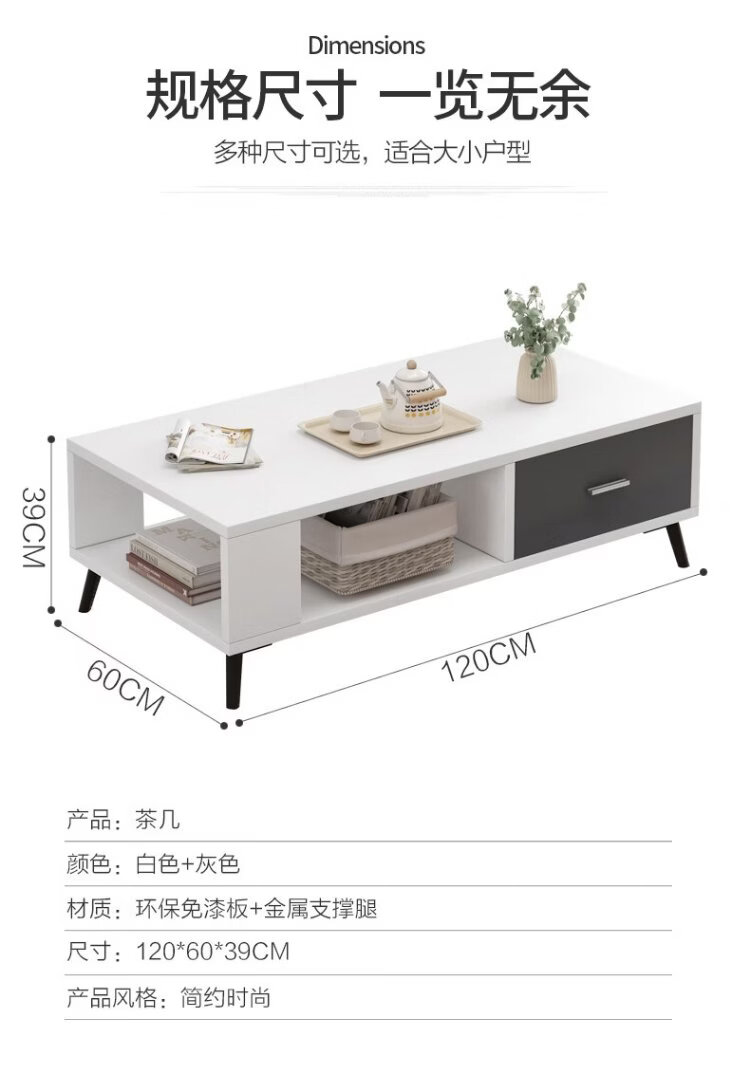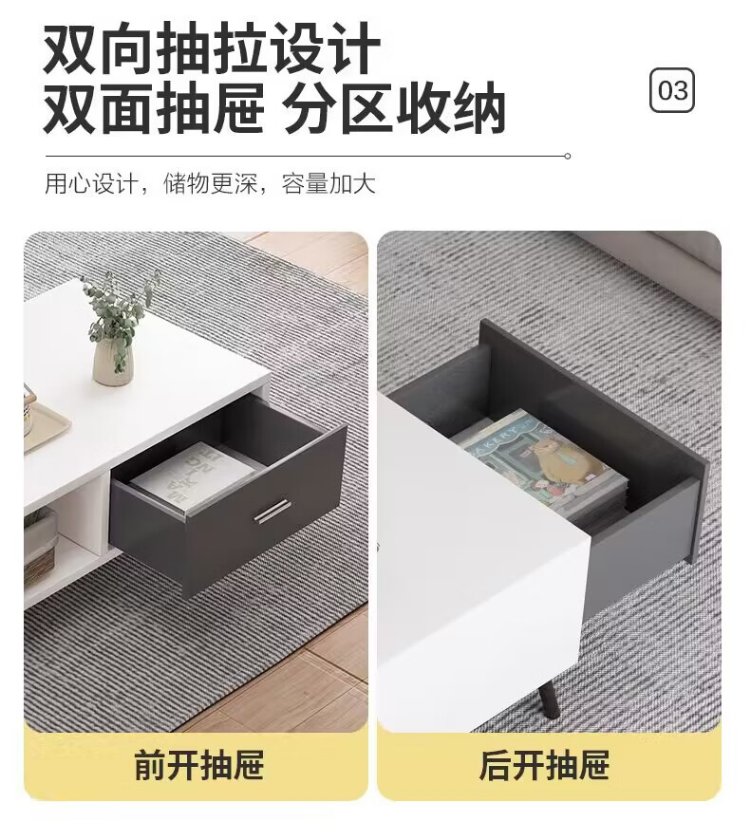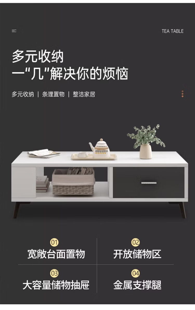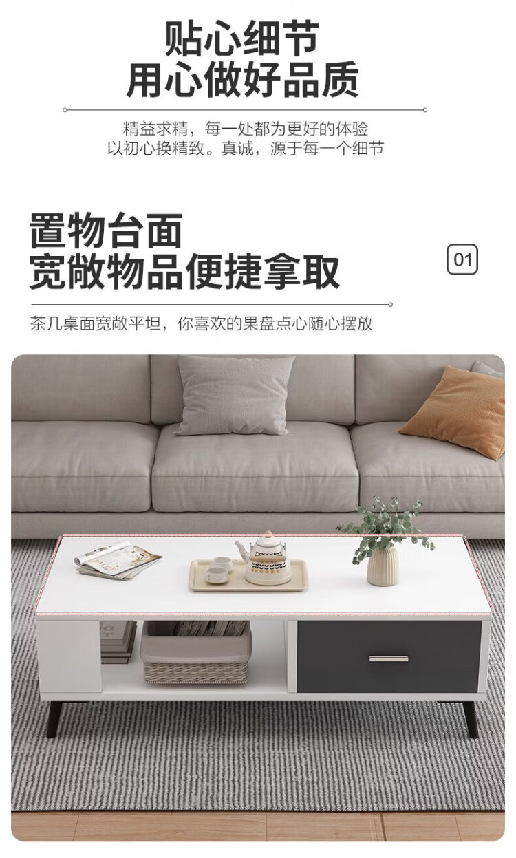 Yameile coffee table for living room, modern and simple, small household double-layer storage with drawer coffee table table
