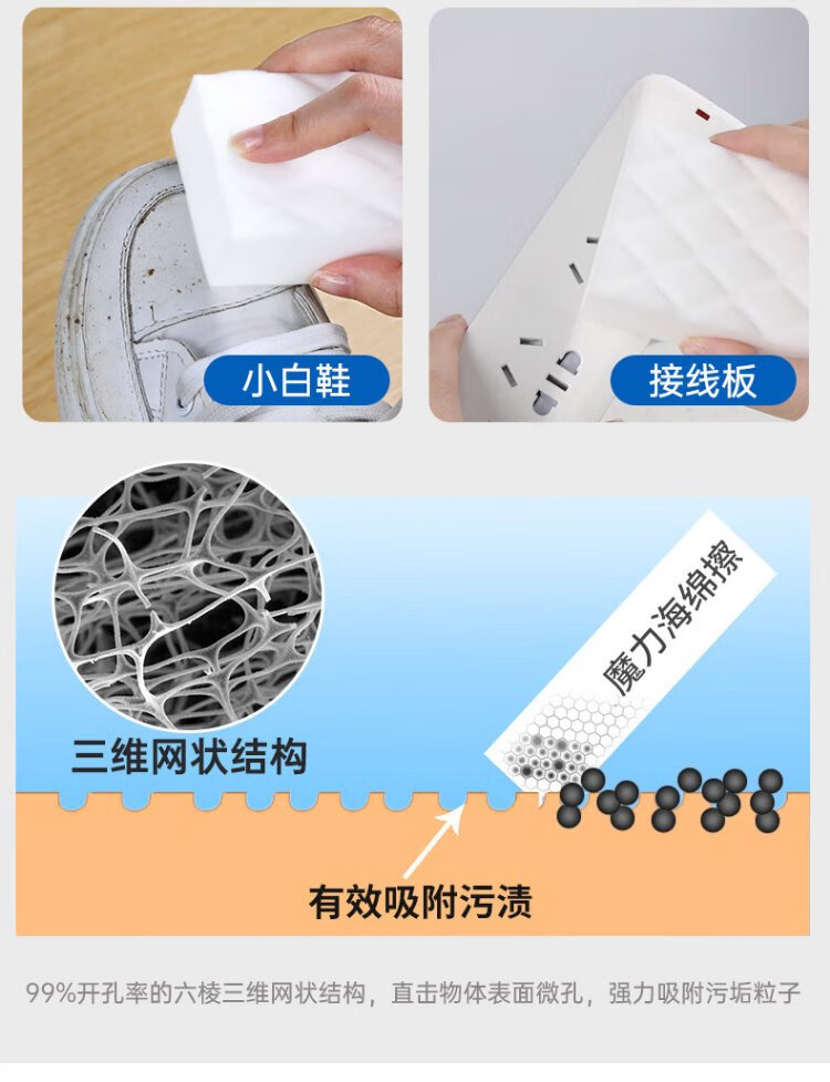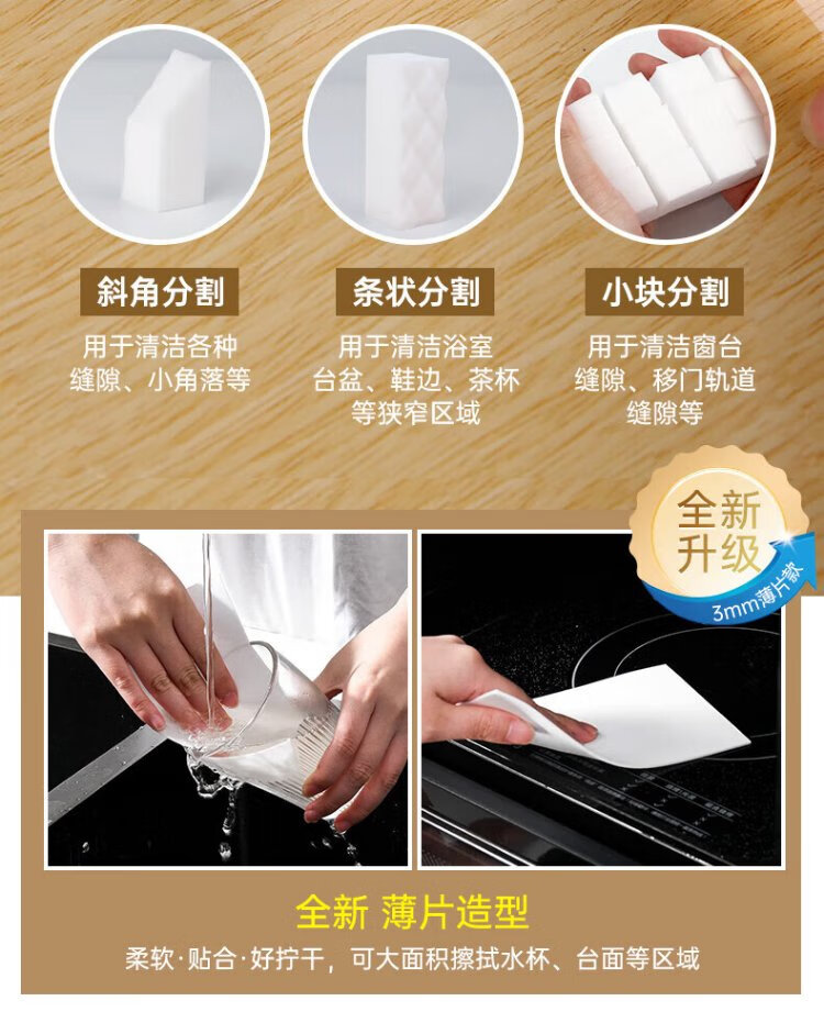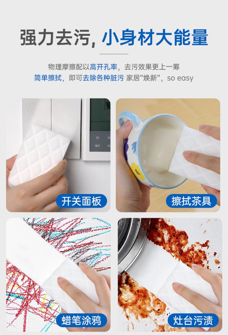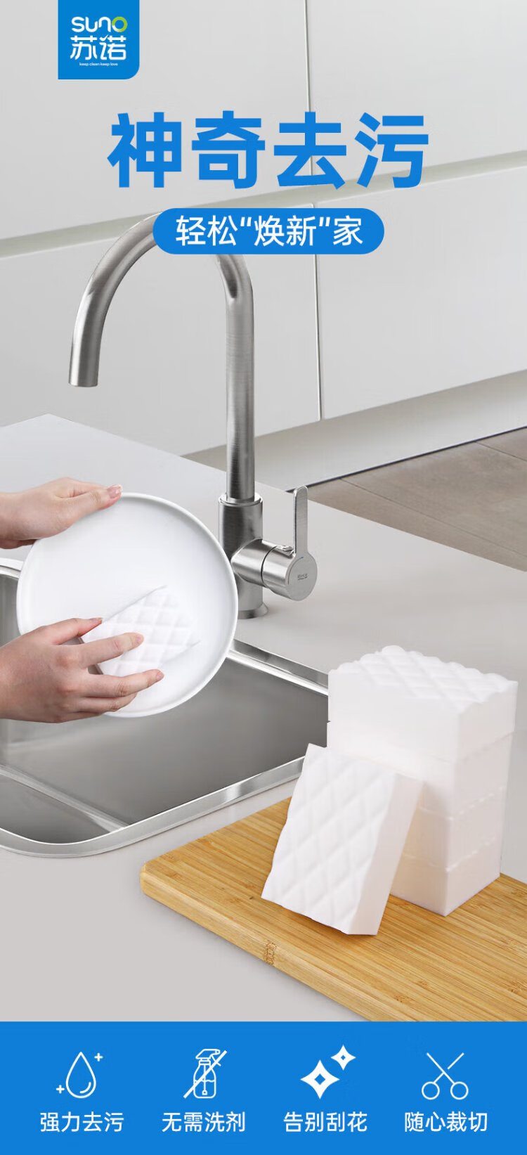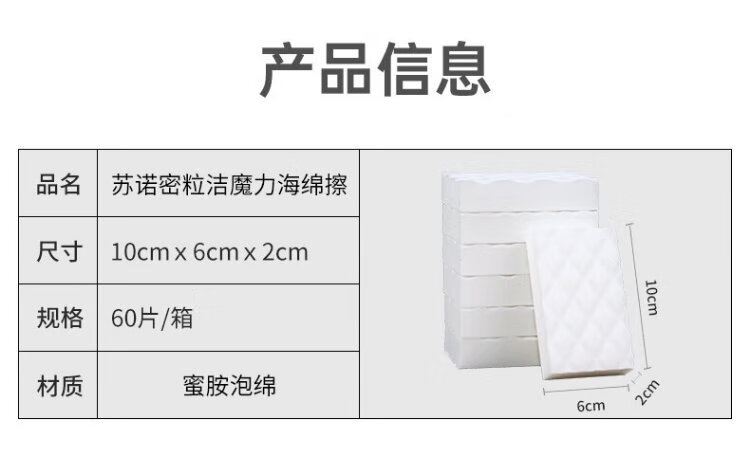 Sunuo high-density nano-sponge box with 60 magic wipes to remove oil stains and tea stains with scouring pads and magic wipes